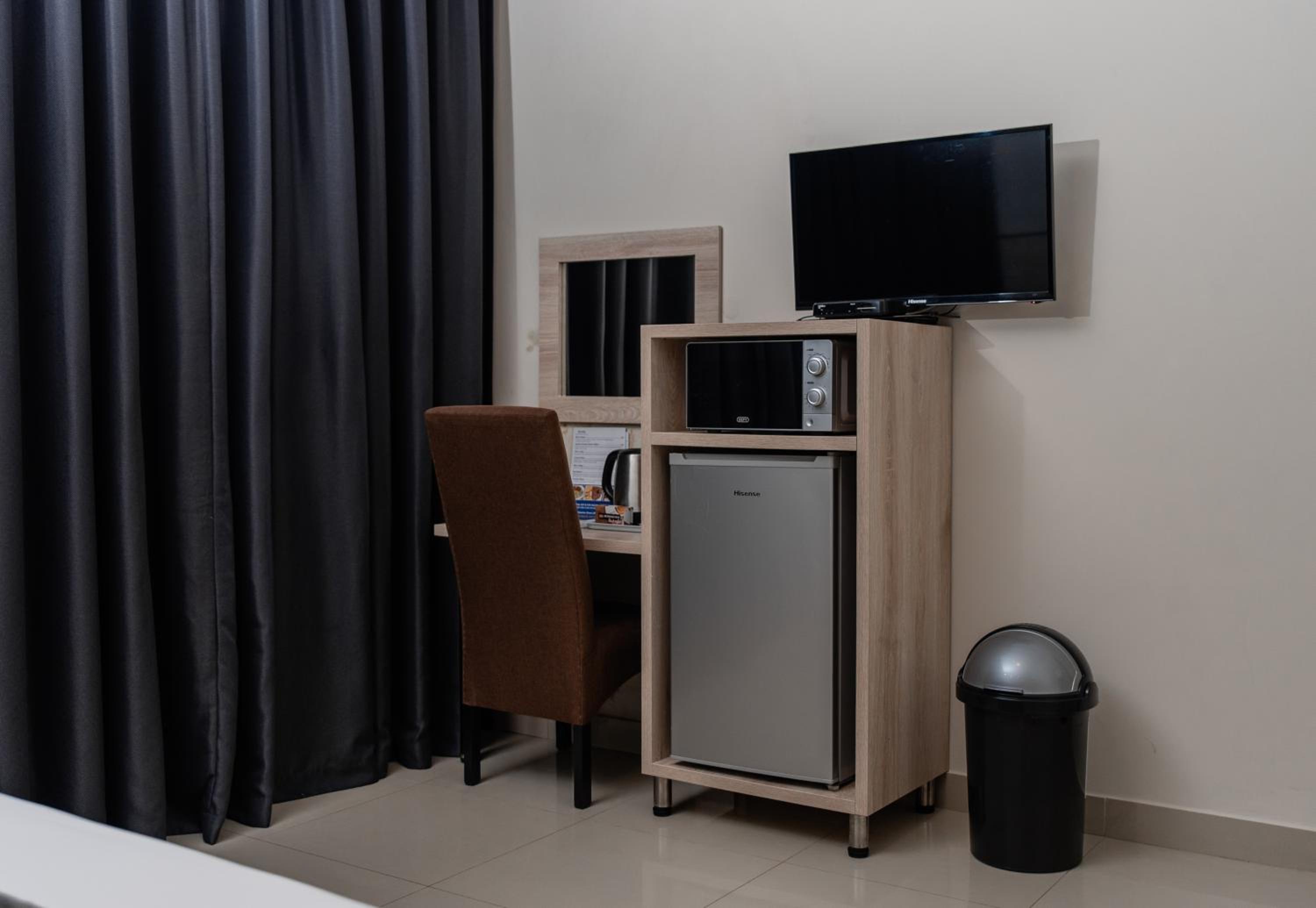 Each room is equipped with a flat-screen TV, satellite channels, fridge, and a kettle. Guests can also enjoy the convenience of room service, free toiletries, and a cozy desk area.