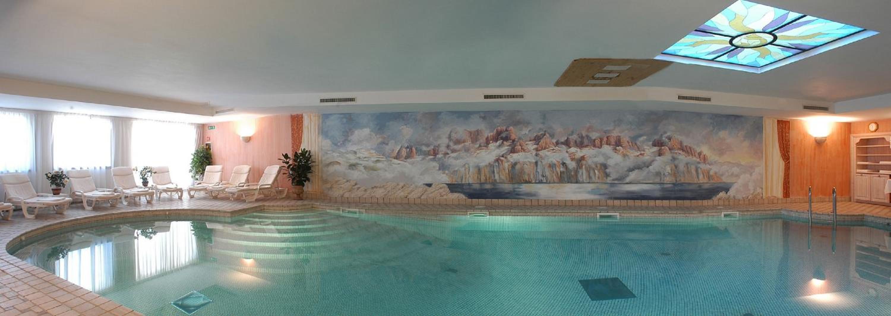 We had a very nice stay overall and we are likely to return. The hotel is nice and old-fashioned in a positive way. The dinners and the food overall is a highlight. Also great attention and care from Antonio as the chief waiter. The bar is also very comfy and neat. The excellent shuttle service to the lifts exceeded our expectations and was very prompt and comfortable. The room was very spacious, also great to have 2 bathrooms. It was a five star touch that the beds were made upon again in the evening, with some sweets added. The skiboxes were also very good and spacious. A nice pool, although a bit dated.