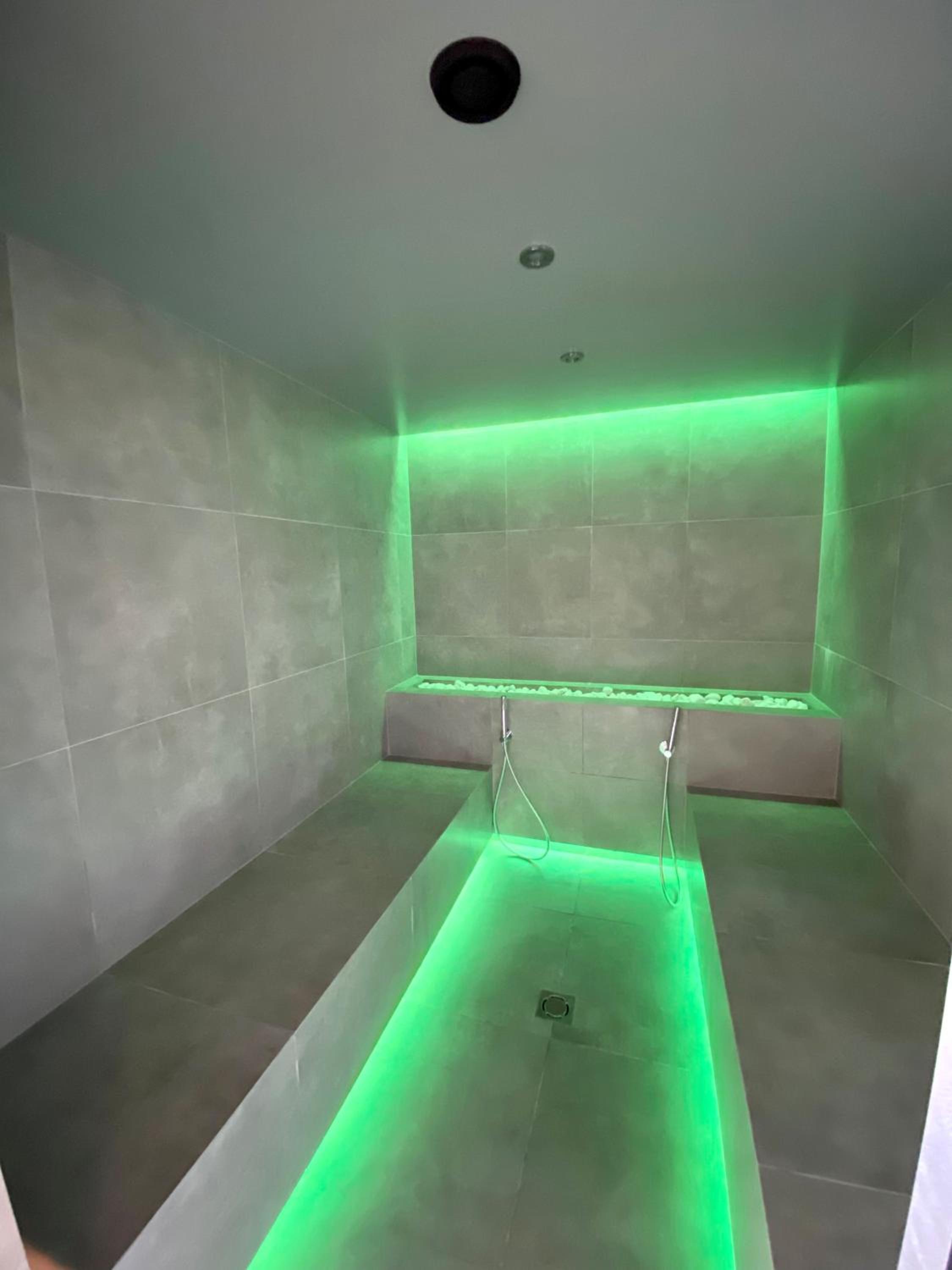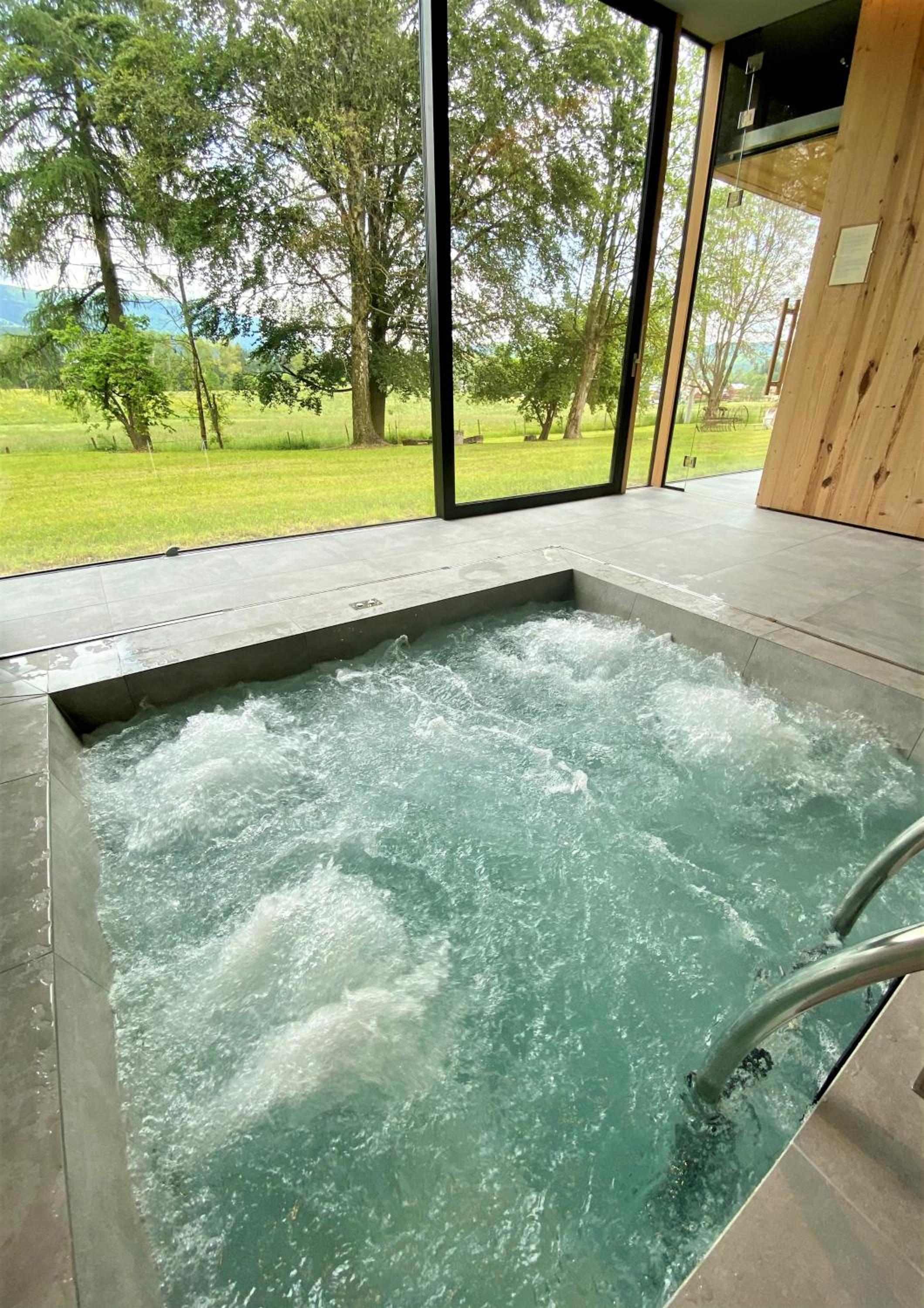 Zona spa intima con dimensioni contenute ma nuovissima, pulita e ben curata.