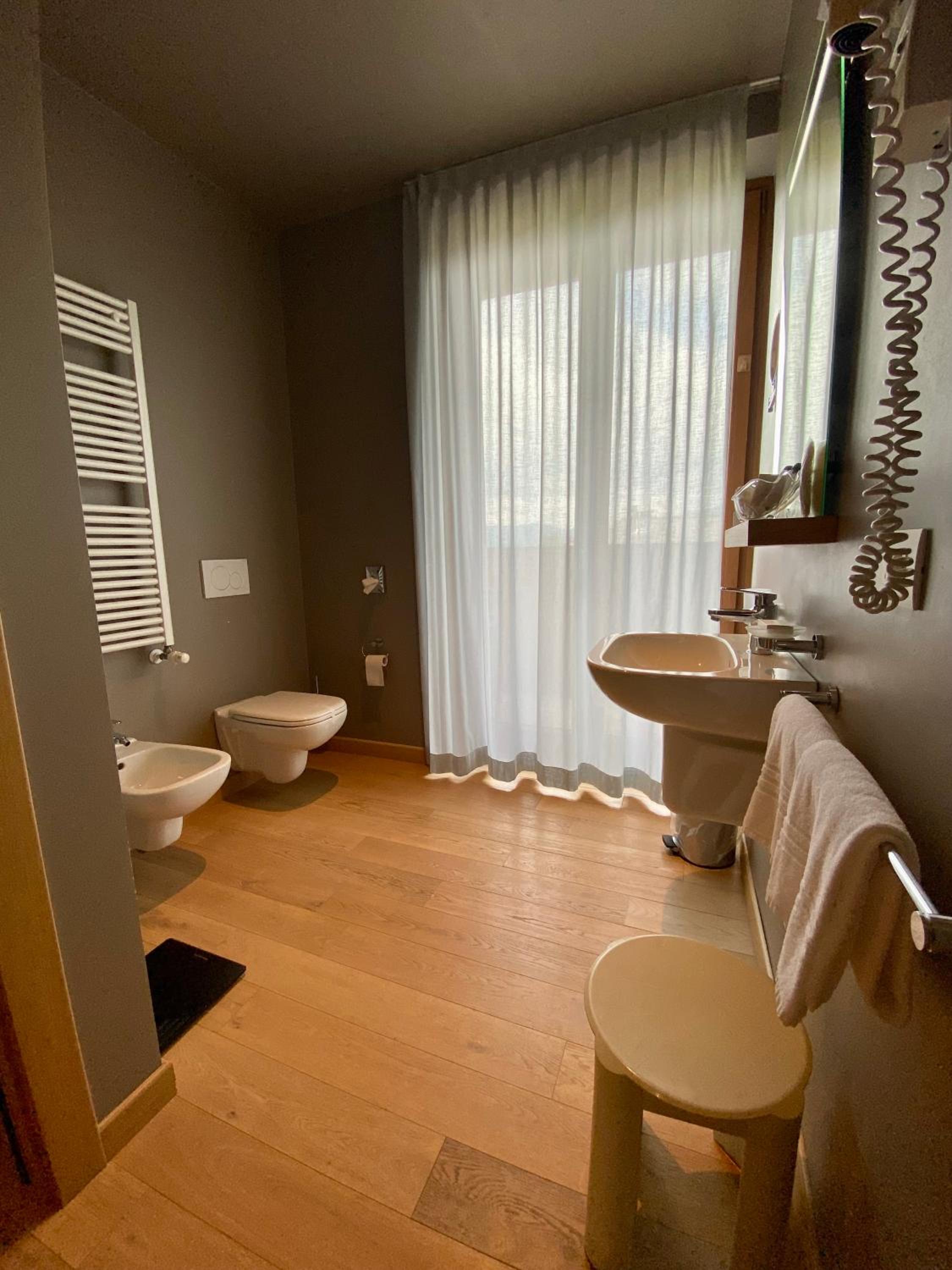 The rooms at Albergo Rutzer are designed in a rustic style, allowing guests to immerse themselves in a cozy and comfortable atmosphere. Large windows flood the rooms with natural light, offering a serene ambiance. Each room is equipped with modern amenities such as a minibar, TV, and picturesque views of the surrounding landscape. Additionally, many rooms feature a private balcony for guests to unwind and soak in the beauty of Asiago.