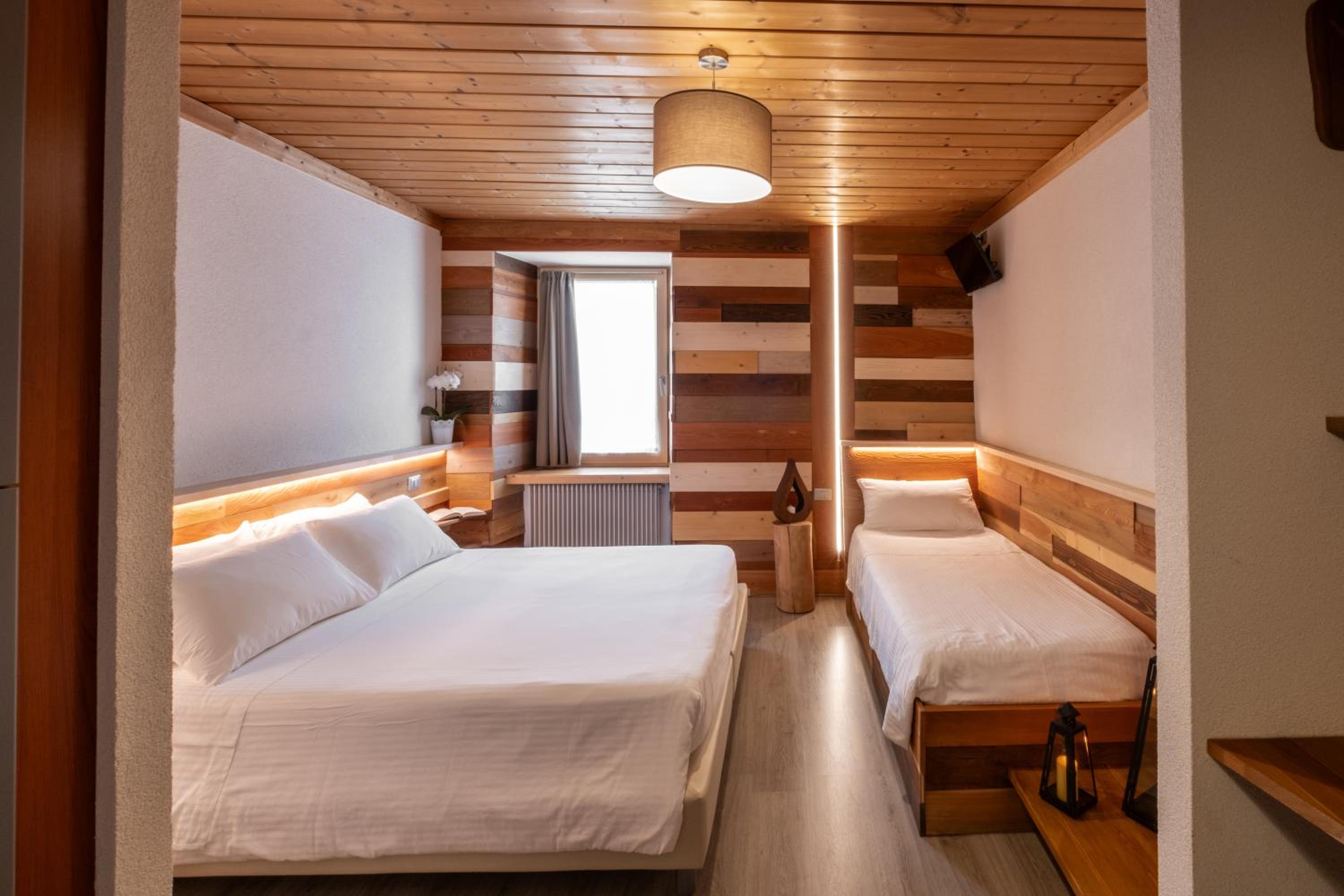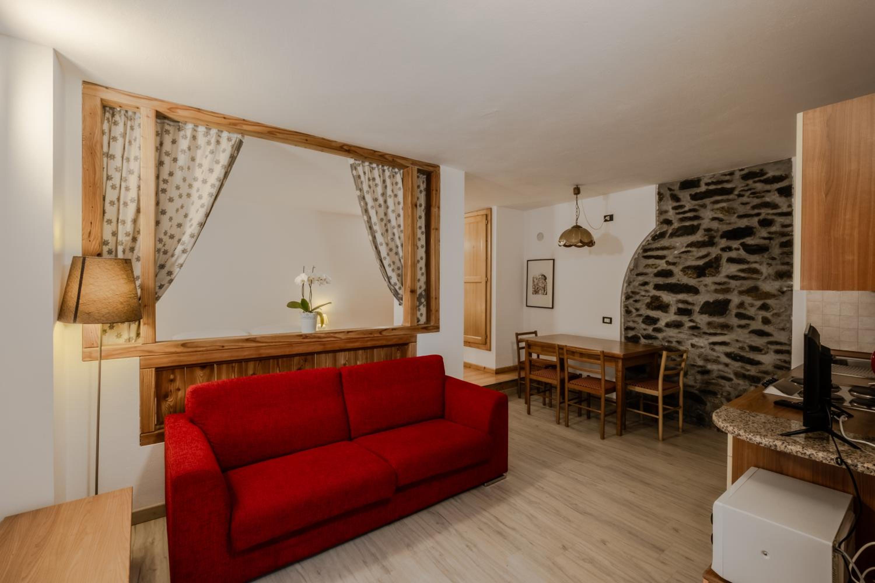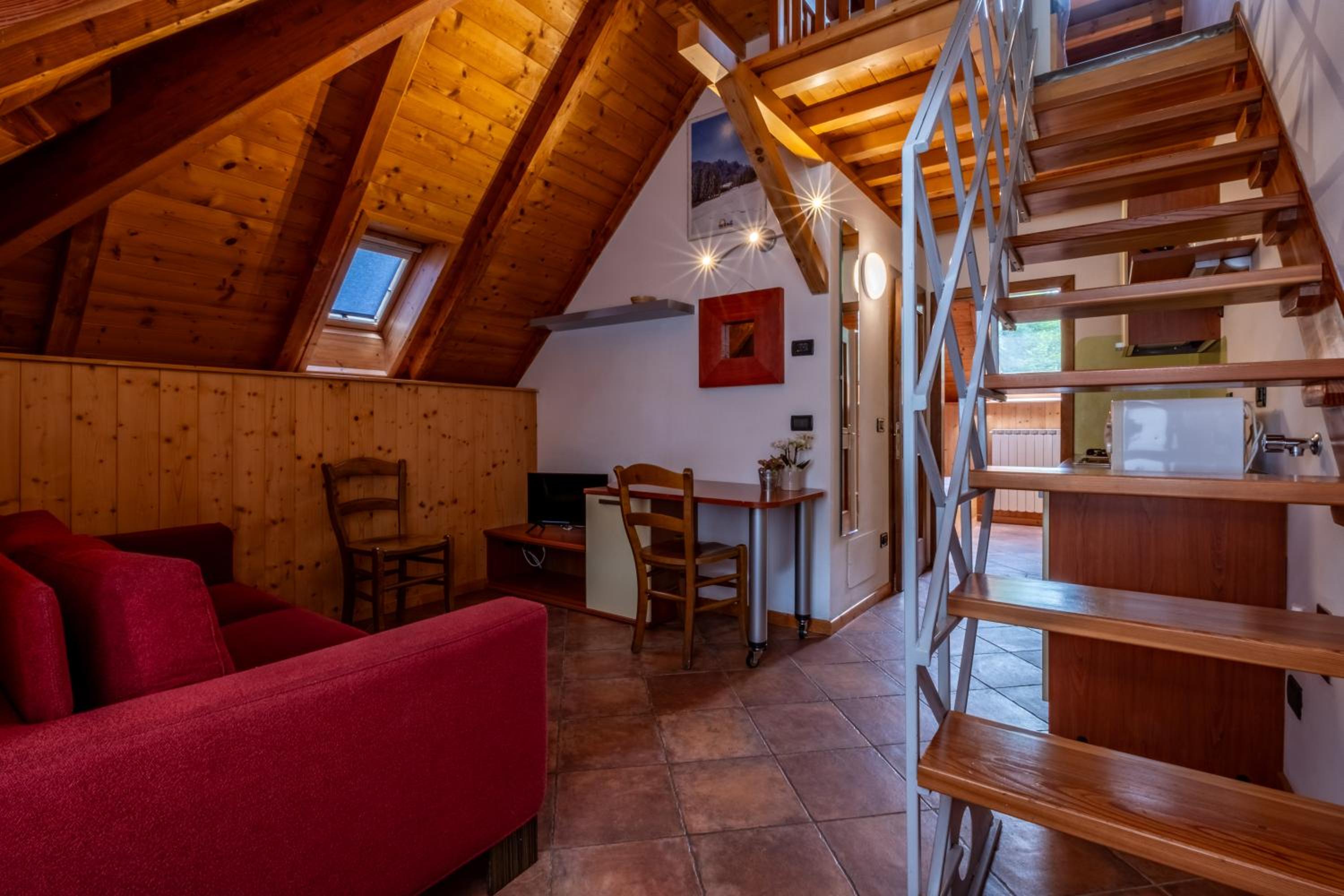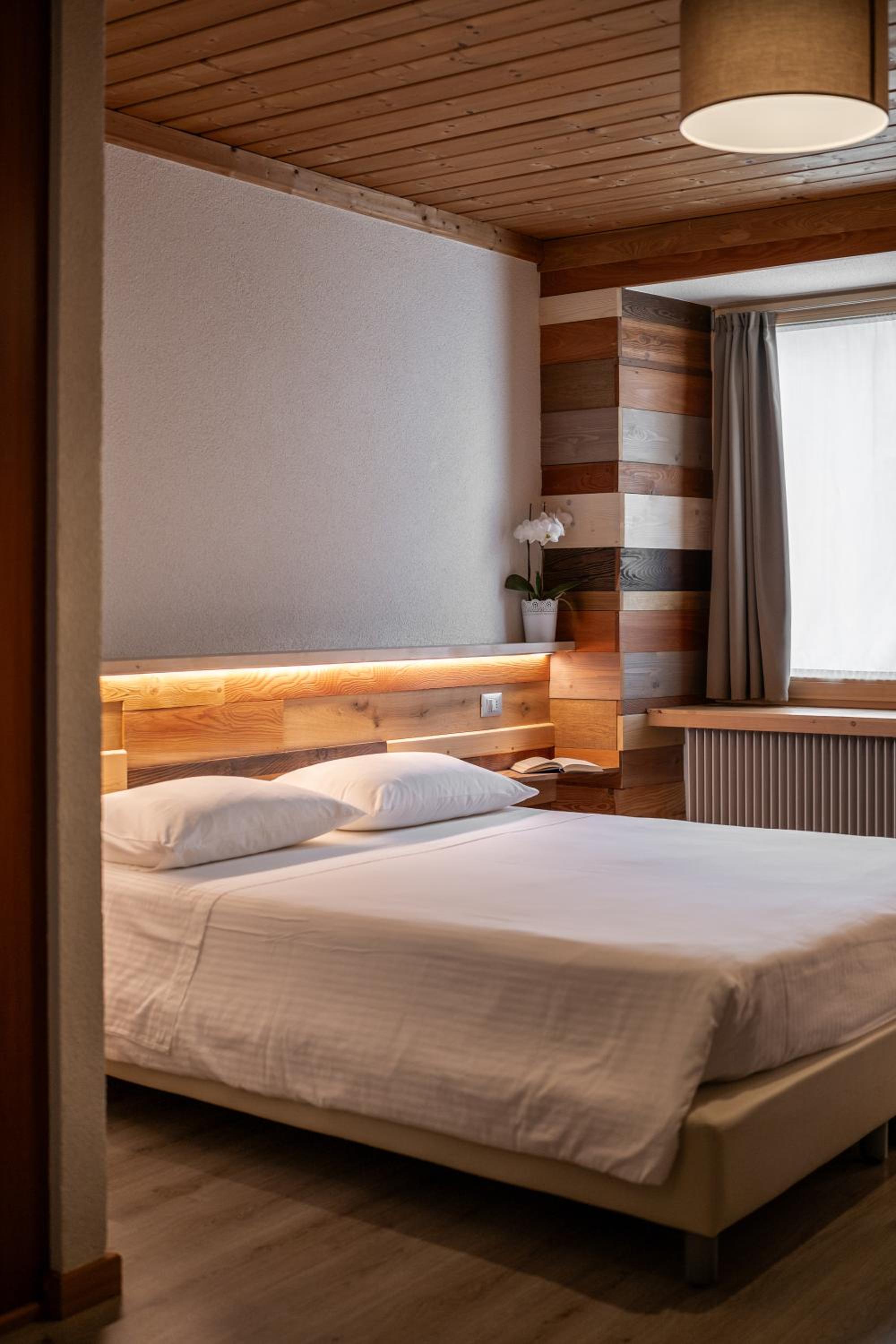 Molto apprezzato e confortevole l’angolo del the in ogni piano della struttura. Camera piccolina ma giusta per due persone, molto accogliente, con asciugamani e sapone, piccole attenzioni molto gradite. Molto gradito il parcheggio gratuito, la sala deposito per gli sci e la navetta gratuita.