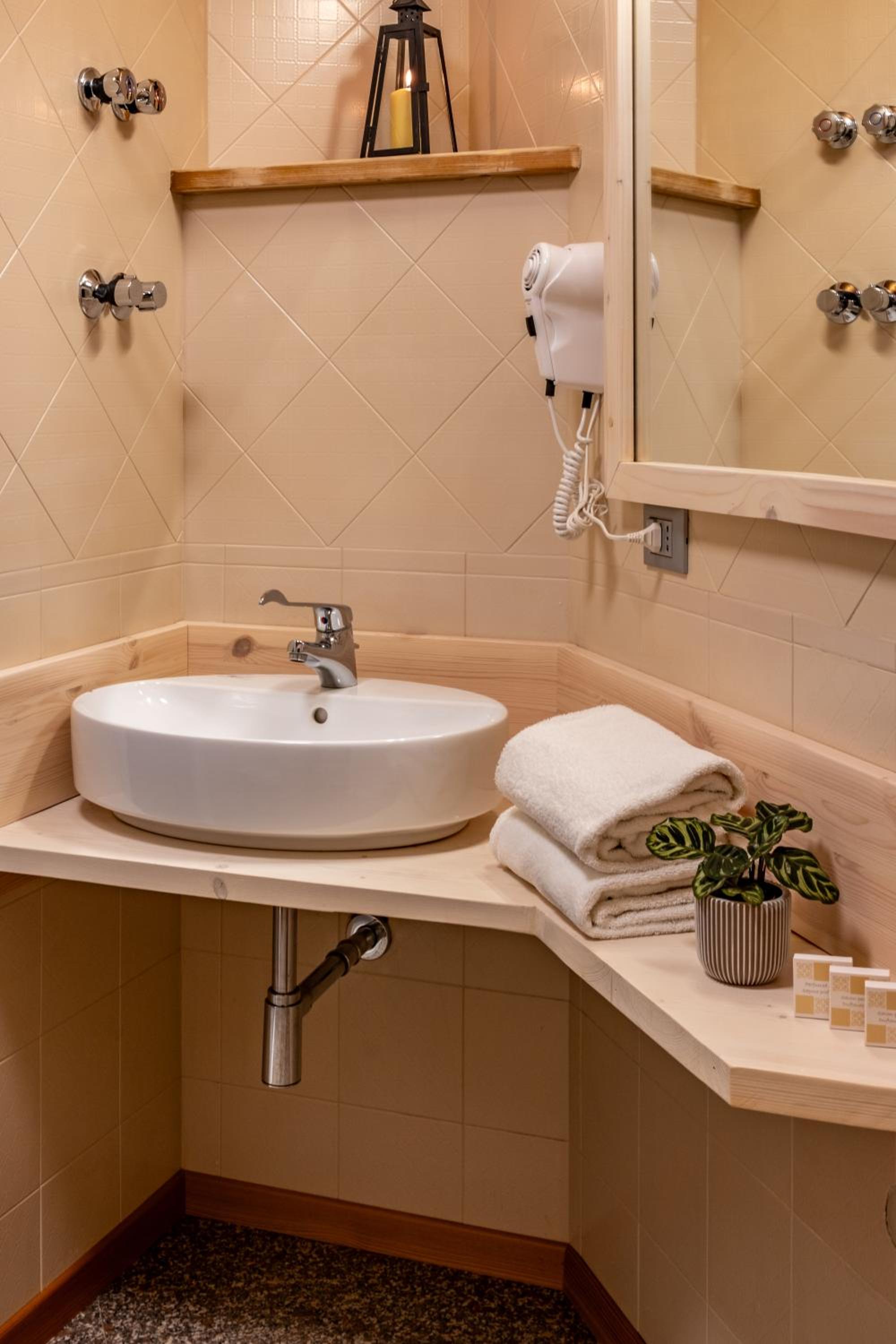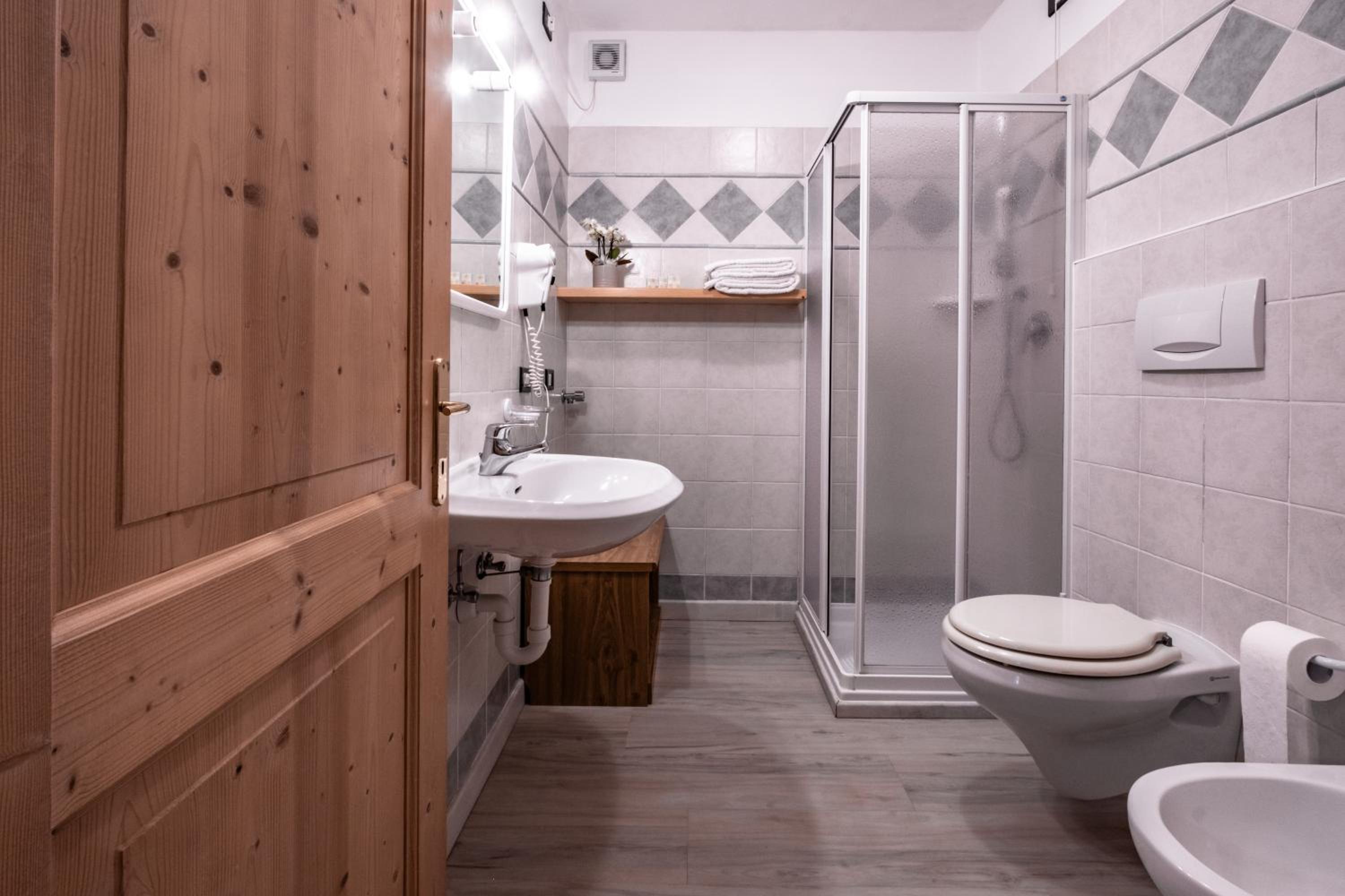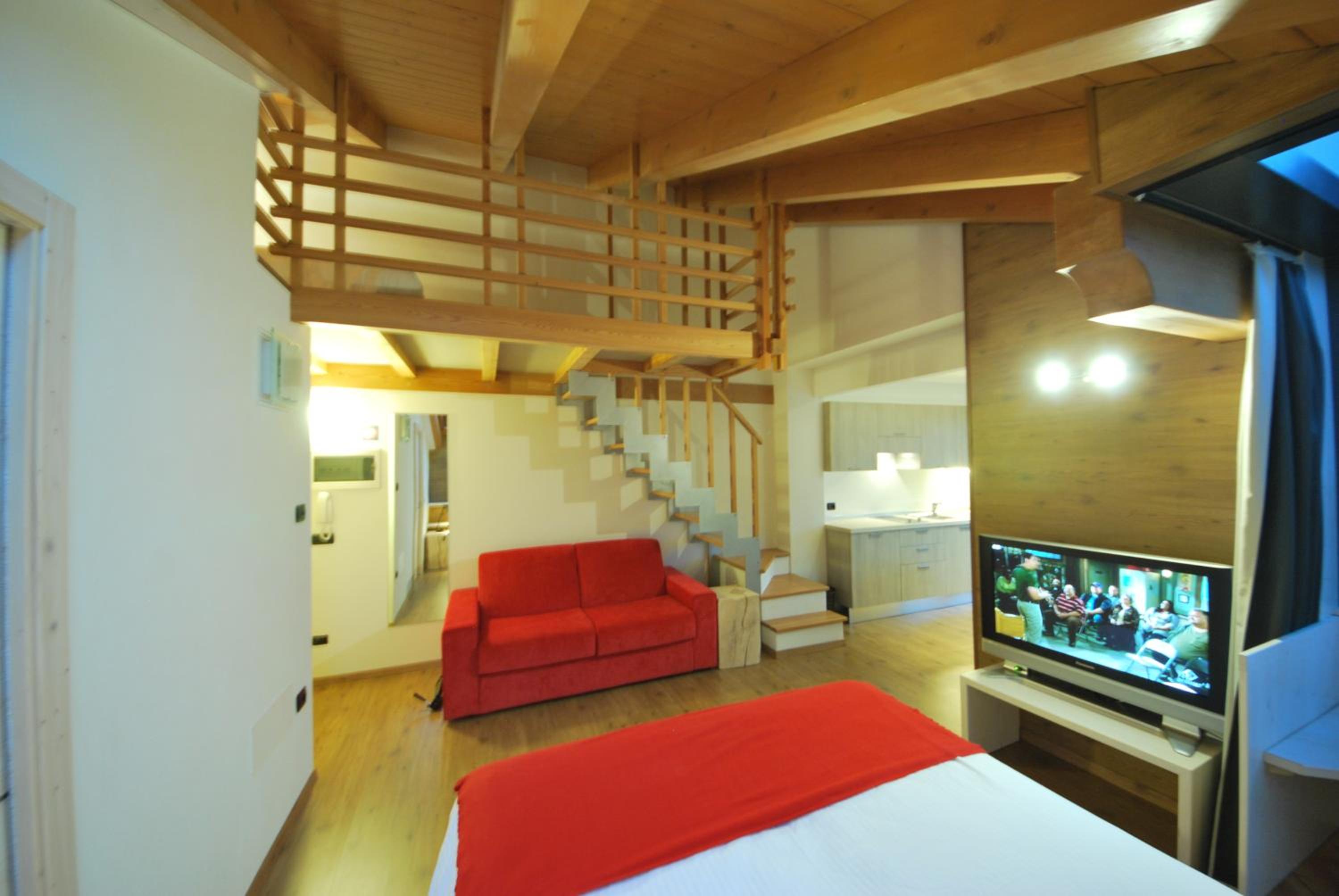 Molto apprezzato e confortevole l’angolo del the in ogni piano della struttura. Camera piccolina ma giusta per due persone, molto accogliente, con asciugamani e sapone, piccole attenzioni molto gradite. Molto gradito il parcheggio gratuito, la sala deposito per gli sci e la navetta gratuita.