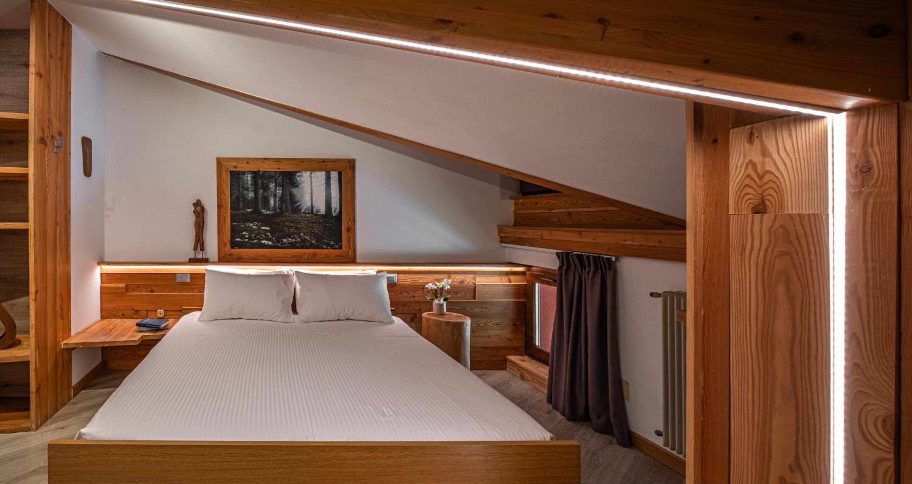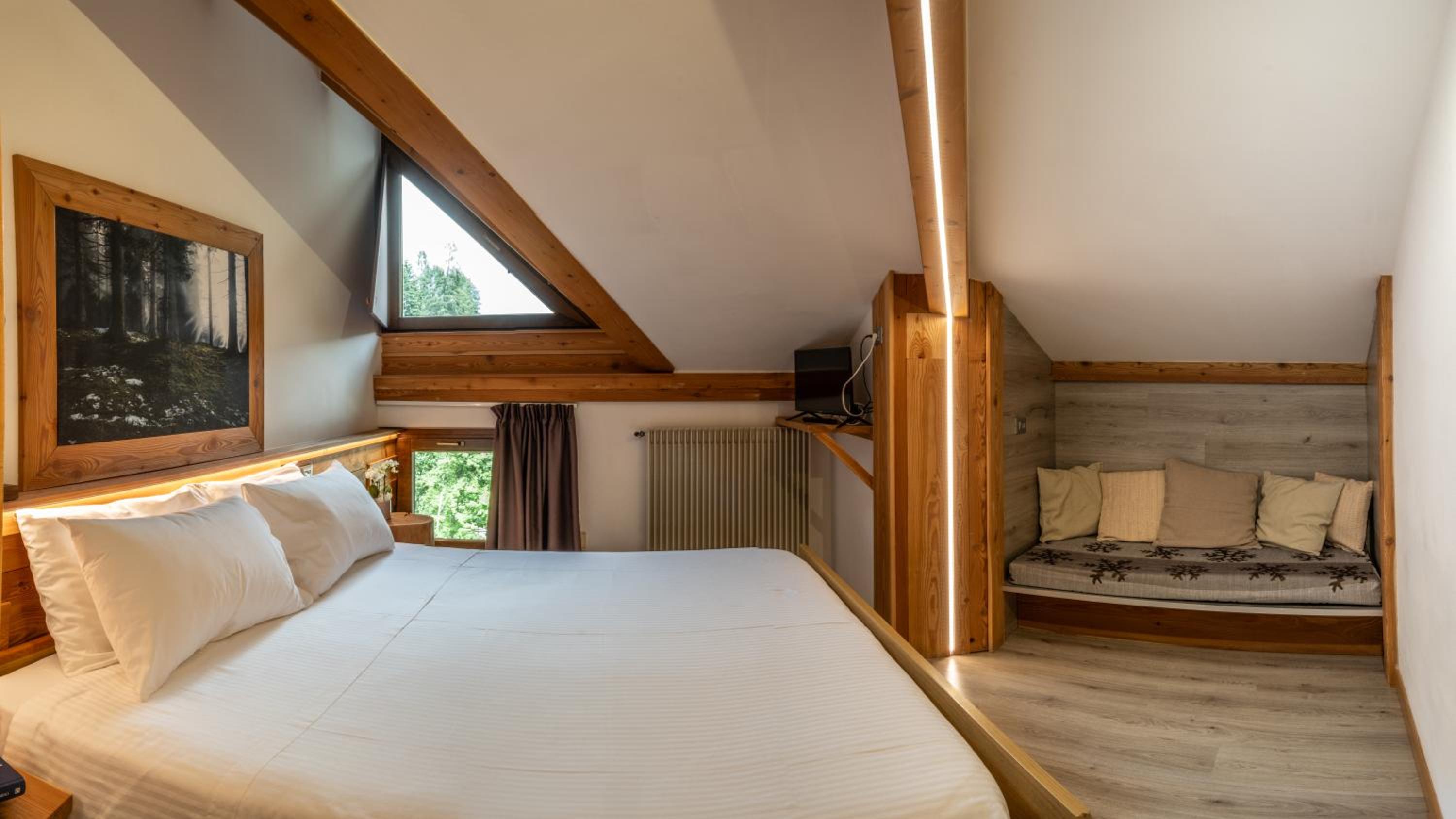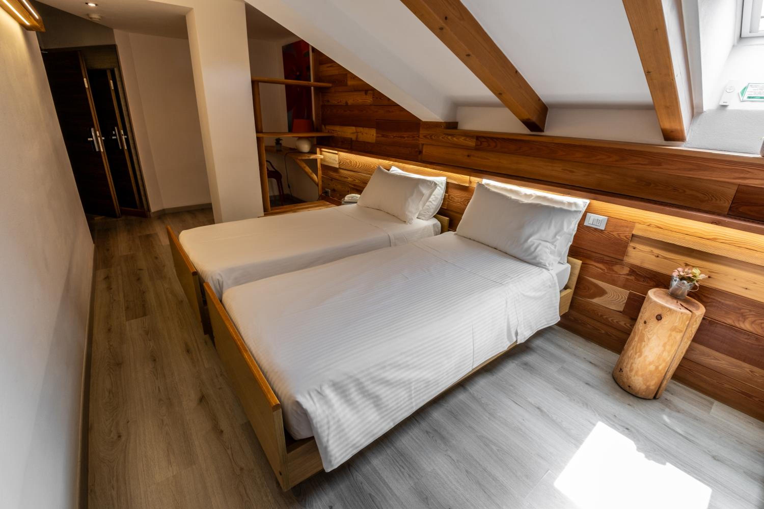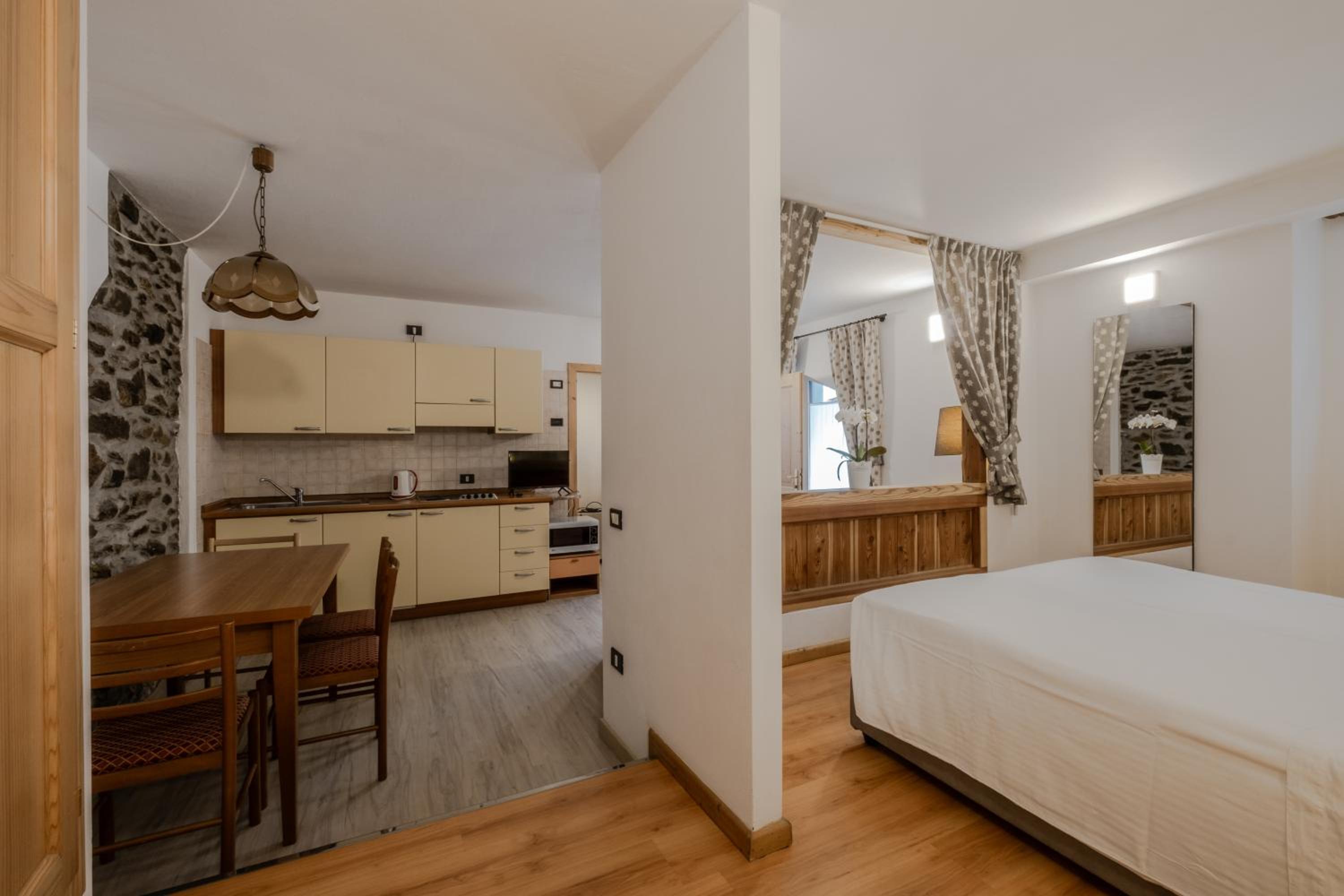 Molto apprezzato e confortevole l’angolo del the in ogni piano della struttura. Camera piccolina ma giusta per due persone, molto accogliente, con asciugamani e sapone, piccole attenzioni molto gradite. Molto gradito il parcheggio gratuito, la sala deposito per gli sci e la navetta gratuita.