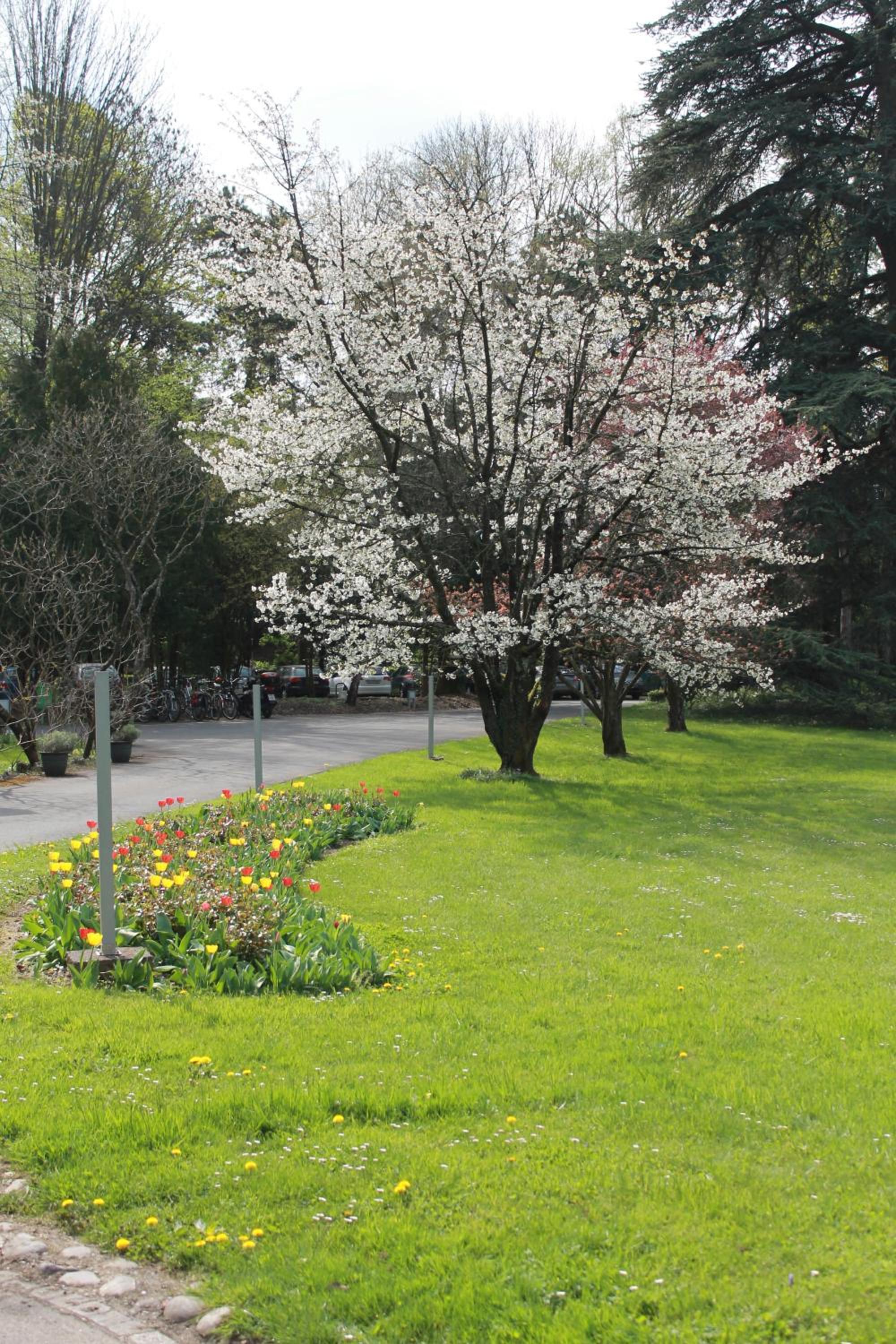 Die ruhige Lage im großen Park. Ein schattige Parkplatz.