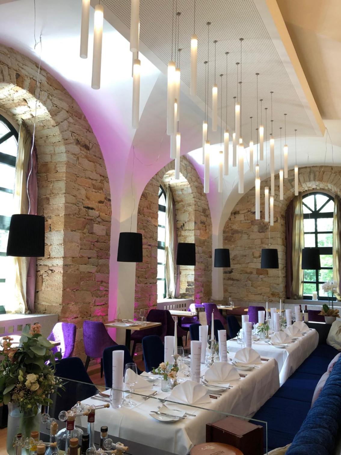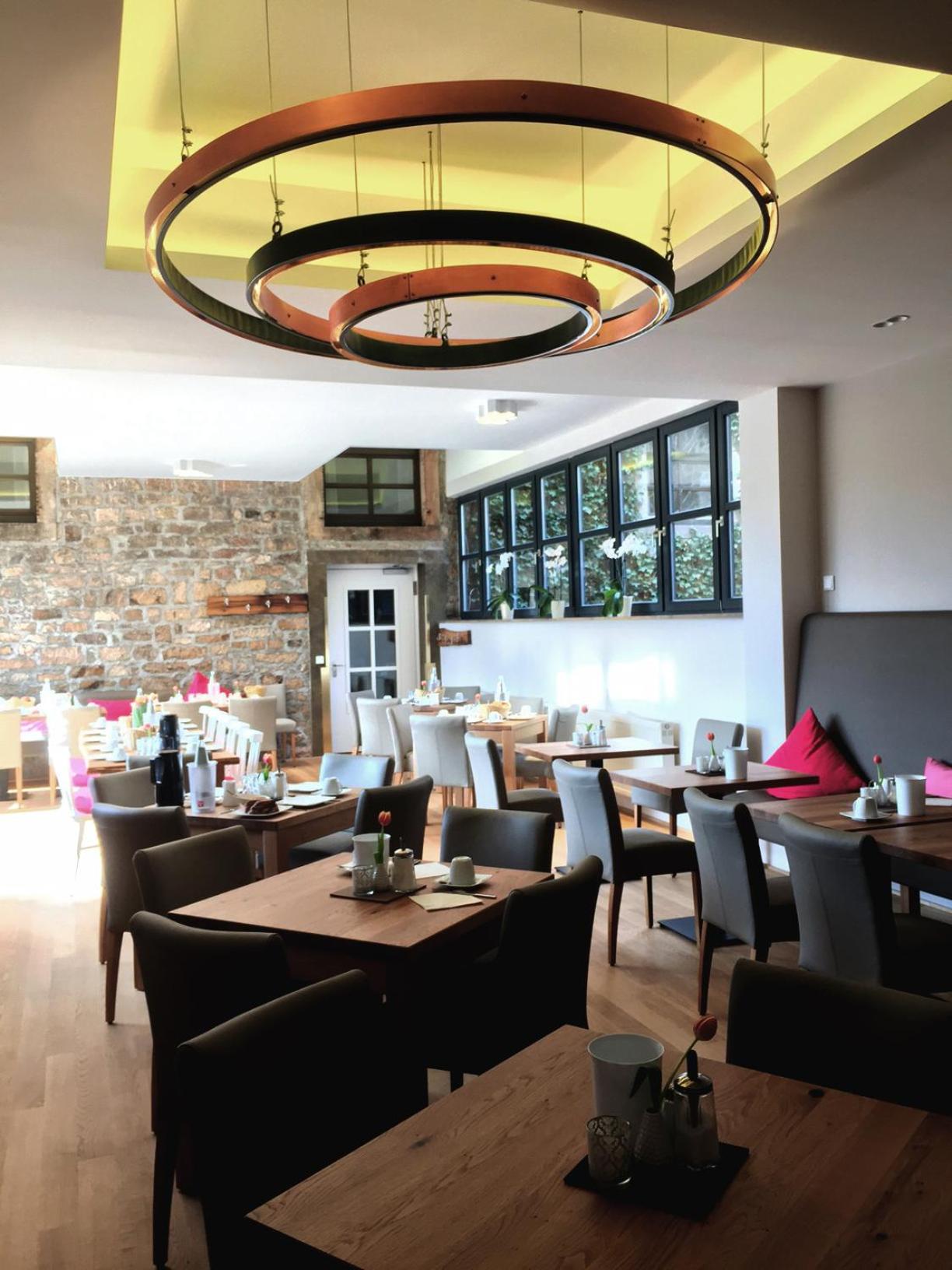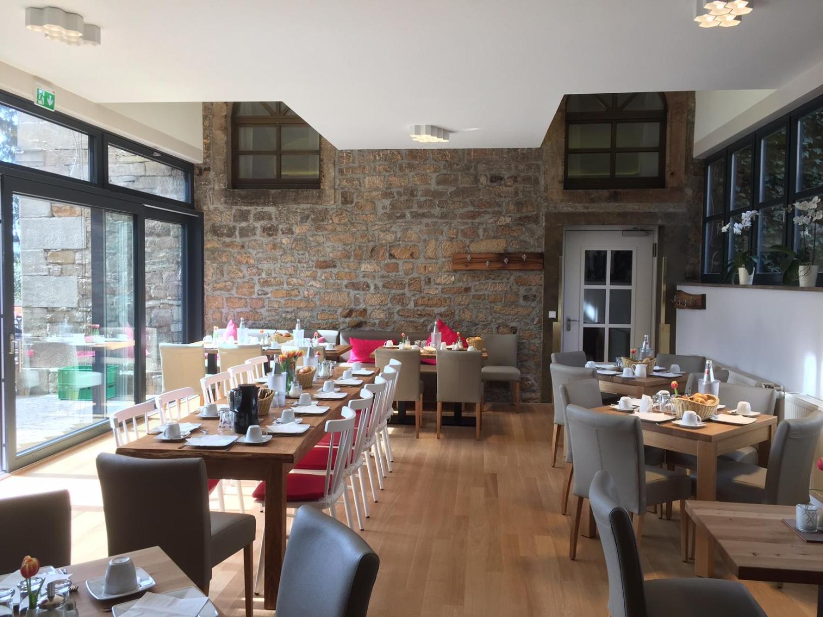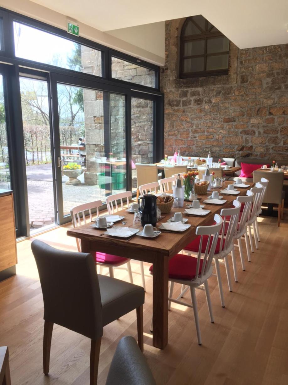 Wunderbarer Frühstücksraum, der das alte Mühlengebäude mit dem Neuen vereint.