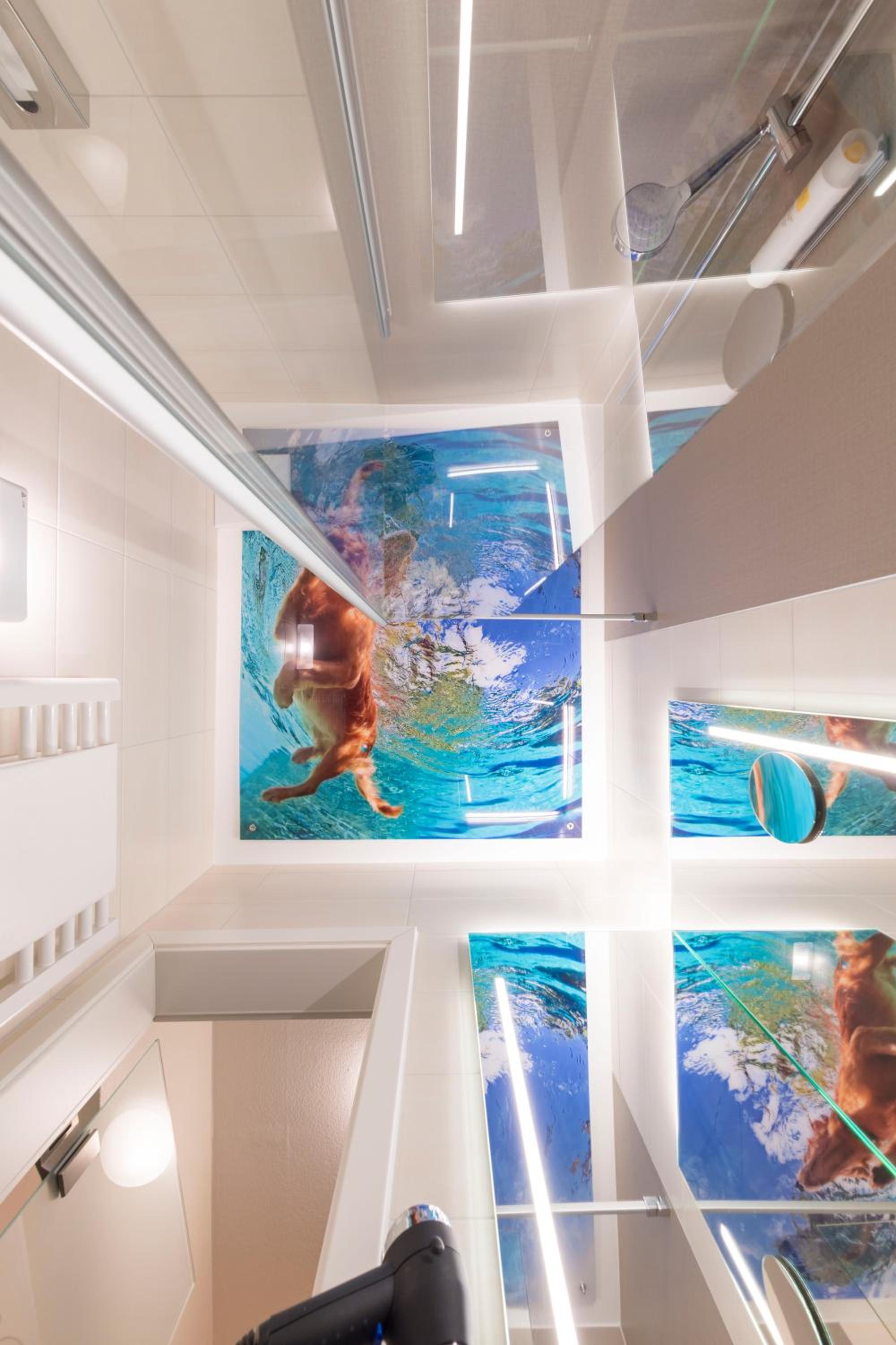 Die Duschabtrennung in der Badewanne war eine Katastrophe. Geschlossen ist sie so eng, dass man sich nicht rundum bewegen kann. Und der Verschluss war nicht deckend.