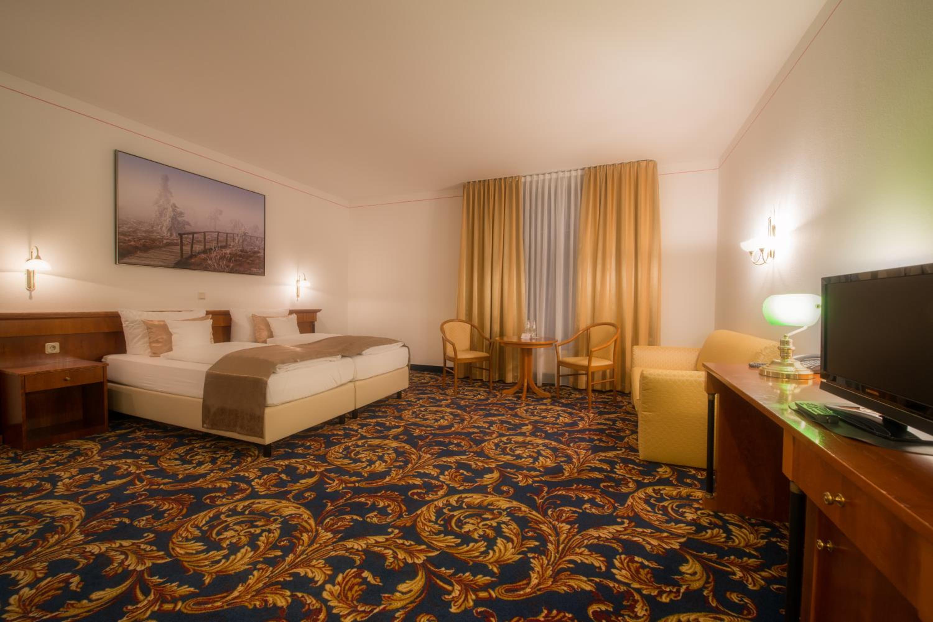 Guests can indulge in a German-style breakfast each morning and savor a variety of cuisines including German, Mediterranean, and Asian dishes during the evenings at the hotel's traditional restaurant.
