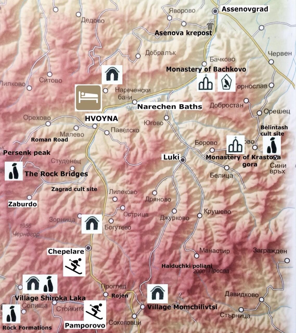 Hotel Hinovi Hvoyna offers a modern stay near Bachkovo Monastery, featuring a shared lounge, free private parking, and a restaurant. The property, built in 2015, provides a comfortable retreat with a terrace and proximity to The Wonderful Bridges. Enjoy complimentary WiFi and access to a shared kitchen during your stay.