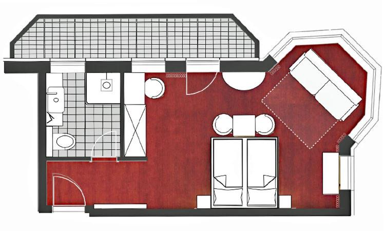 Kamers zijn engszins gedateerd en had een kamer met 2 bedden geboekt en kreeg er 1 met 1 bed. Niet over geklaagd want we wilden skiën.