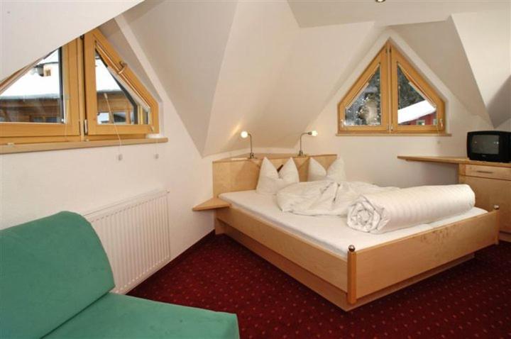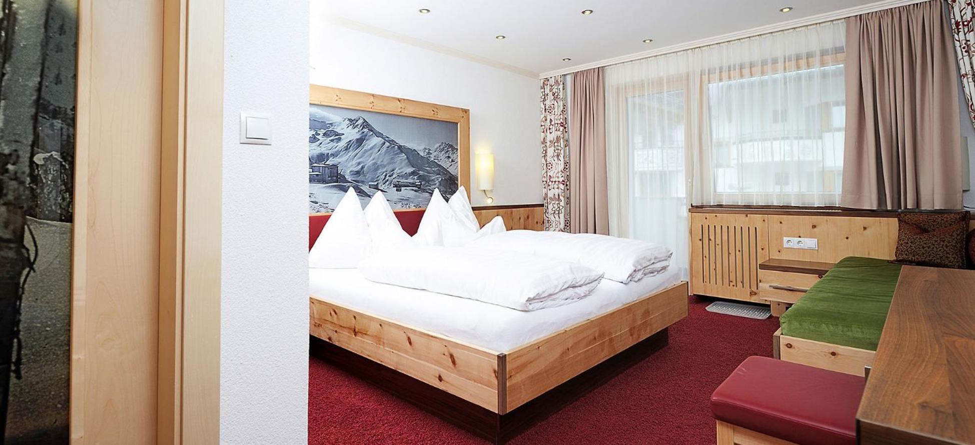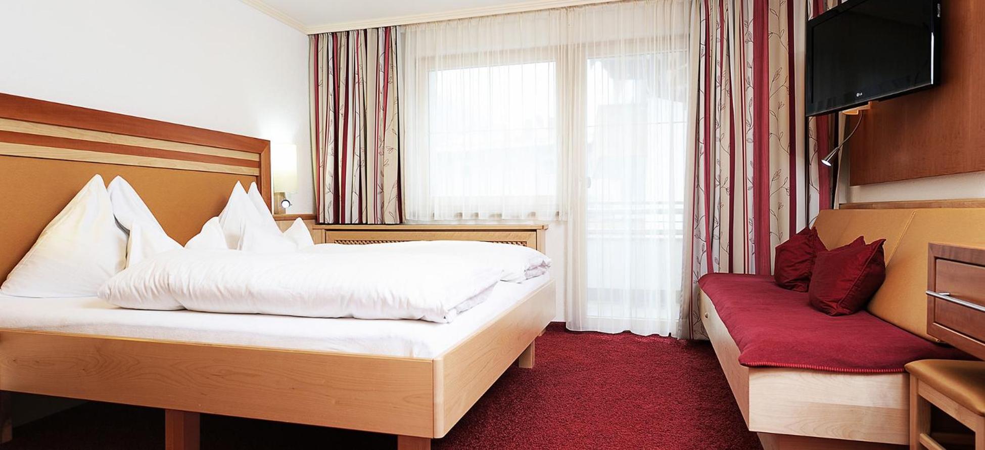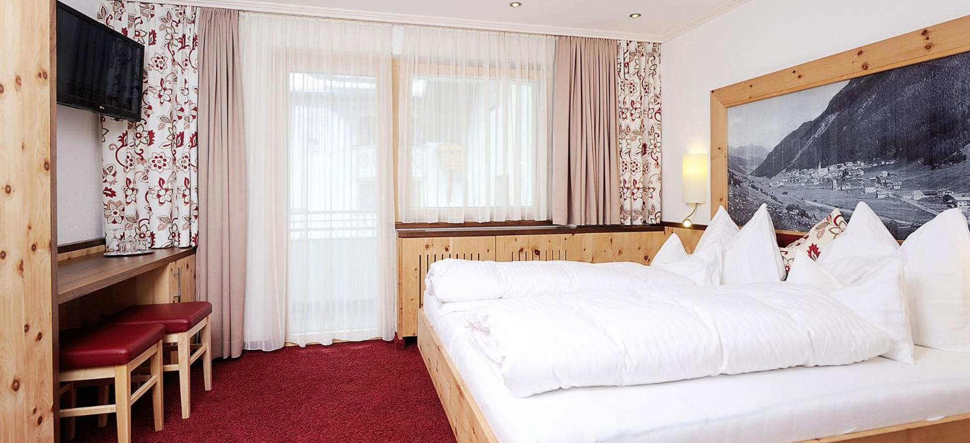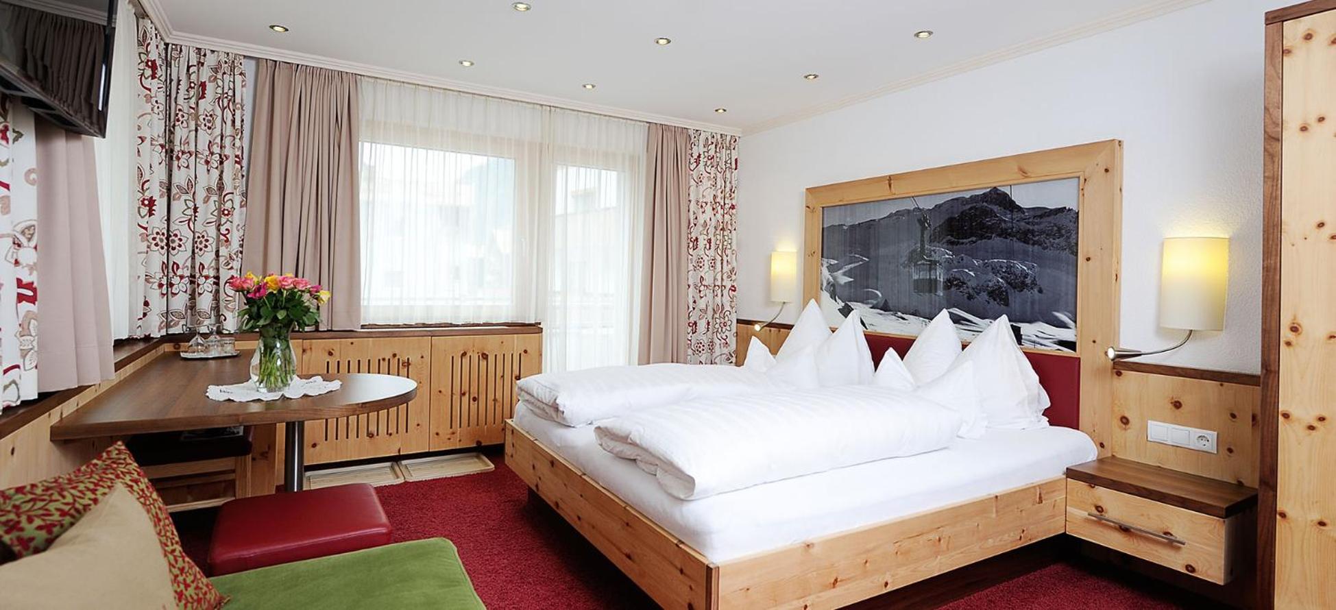 Hotel Kristall B&B in Ischgl offers spacious rooms with modern amenities, including flat-screen cable TV and comfortable seating areas. Some rooms even come with a convenient kitchen or kitchenette for added comfort during your stay.
