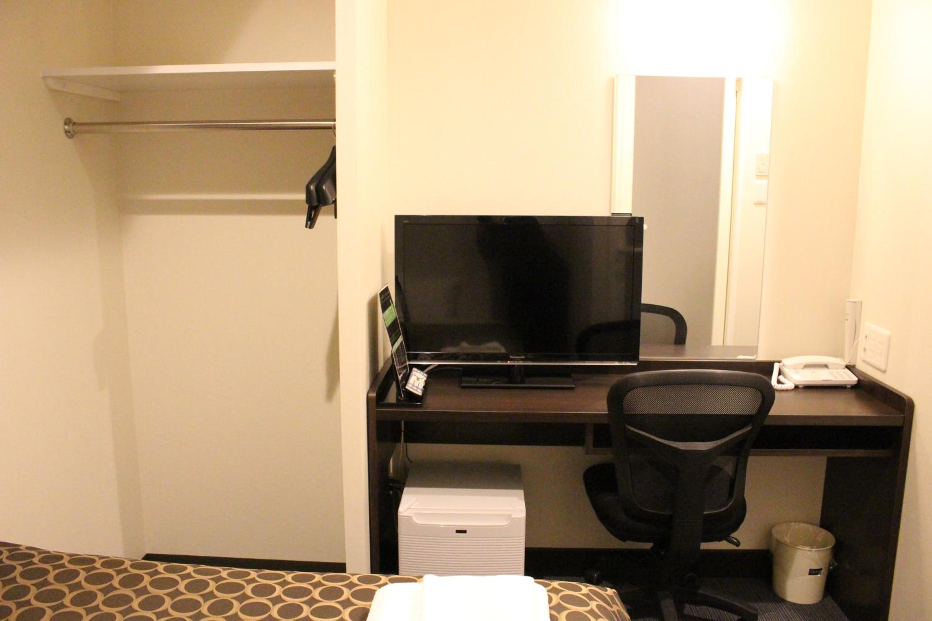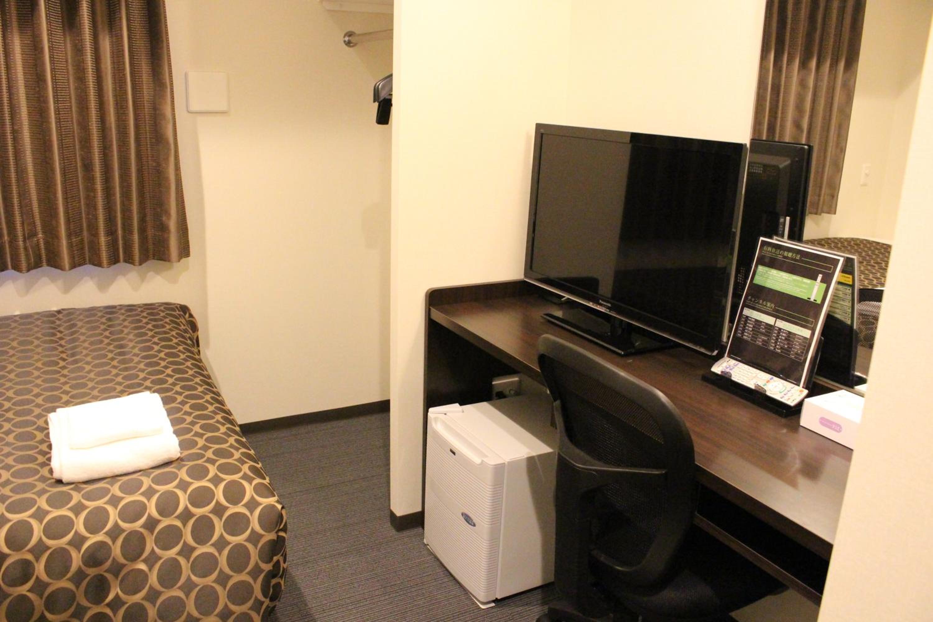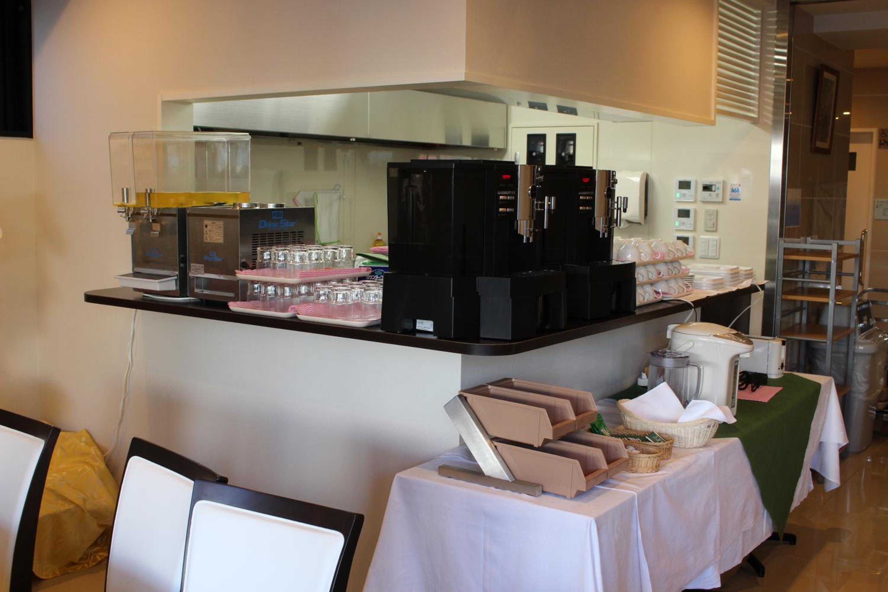 早餐是AM7:00~AM9:00,簡單的西式麵包和飲料,適合對於早餐需求不在意的人。車站後站往八條通方向,走路約莫五分鐘的路程,旁邊就是AEON購物中心,購物中心內也有大型超市,適合帶外食回飯店食用。大廳外有可抽菸區,癮君子適合。退房是自助式退房,拿房卡到機器辦理退房即可。