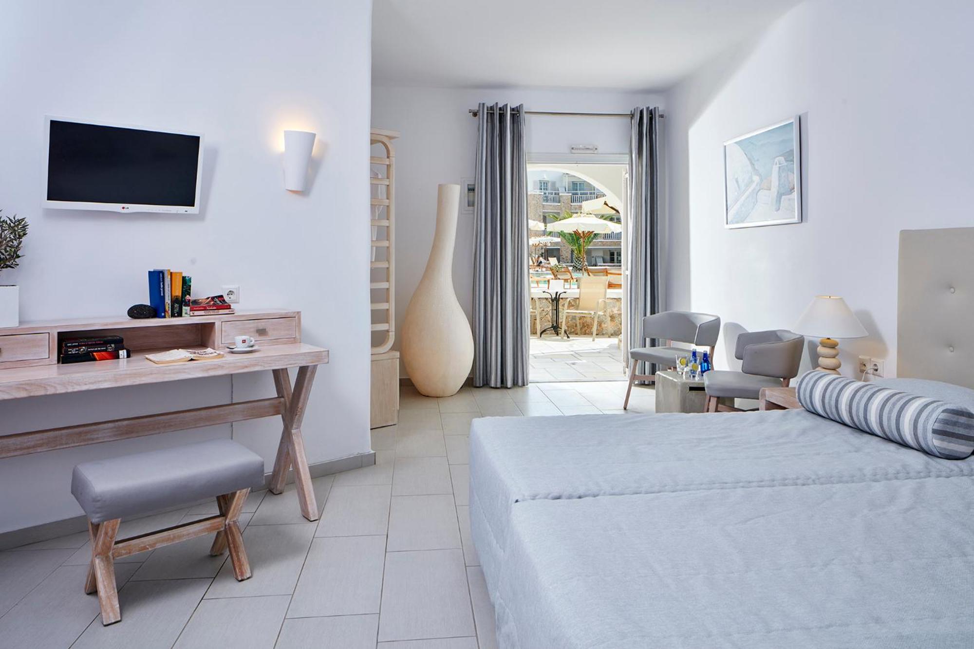 The fully renovated Aegean Plaza Hotel in Santorini offers elegantly styled rooms with traditional interiors and modern elements. The luxurious accommodation ensures a comfortable stay for every guest, satisfying even the most demanding preferences.