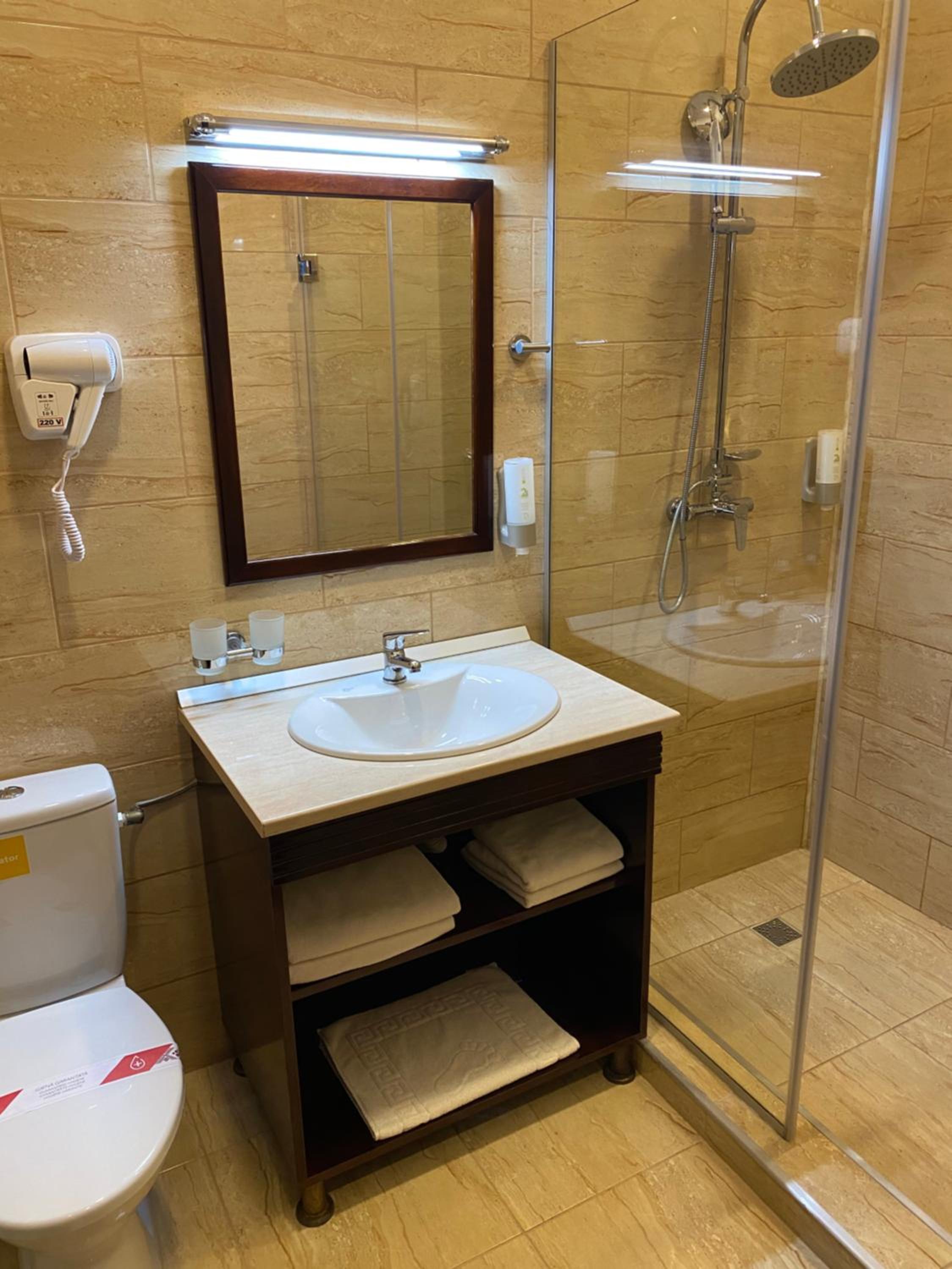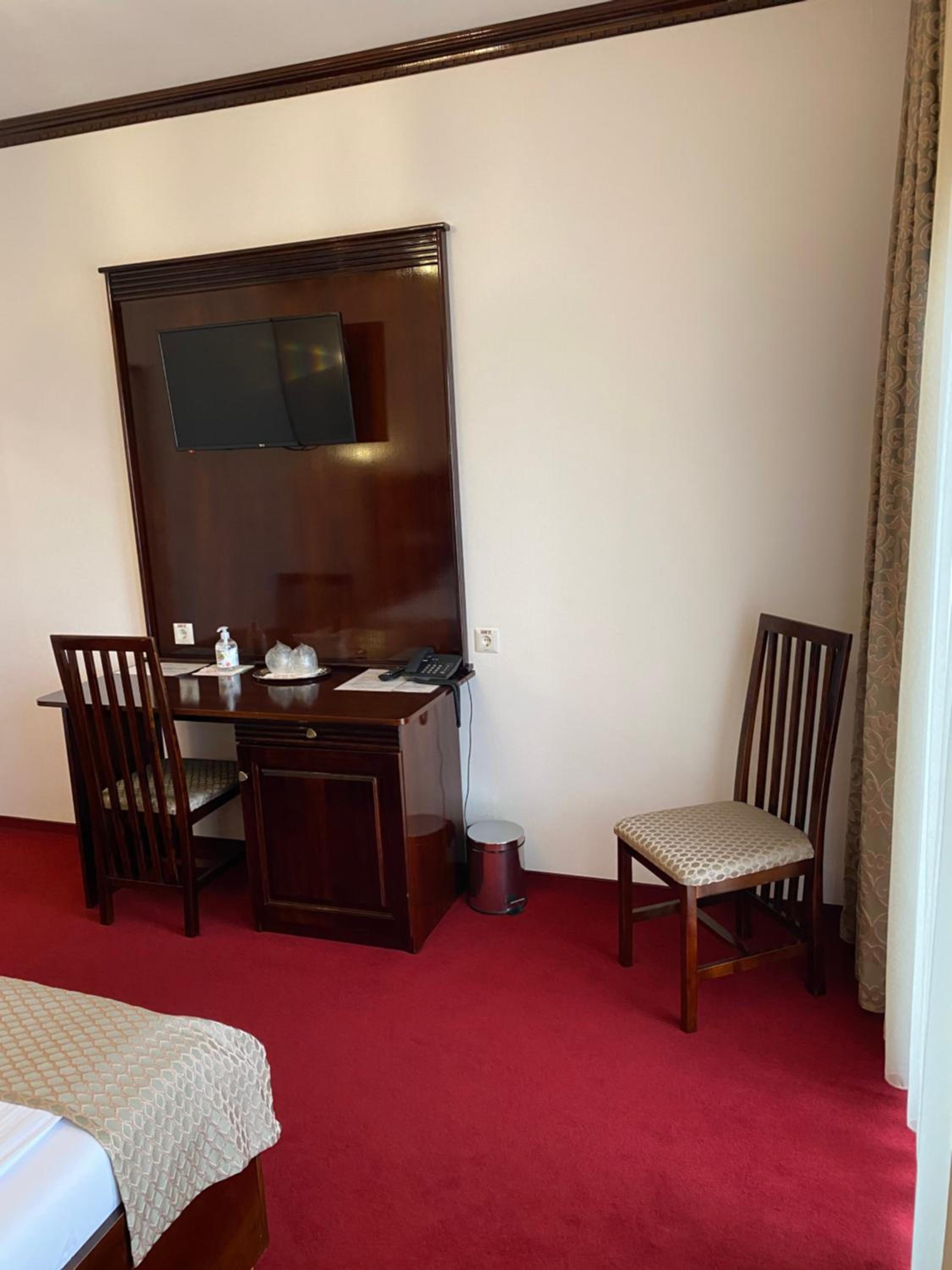 Un hotel elegant, cu mobila de lemn autentica, inclusiv la baie, impecabil de curat.Camera a avut balcon.