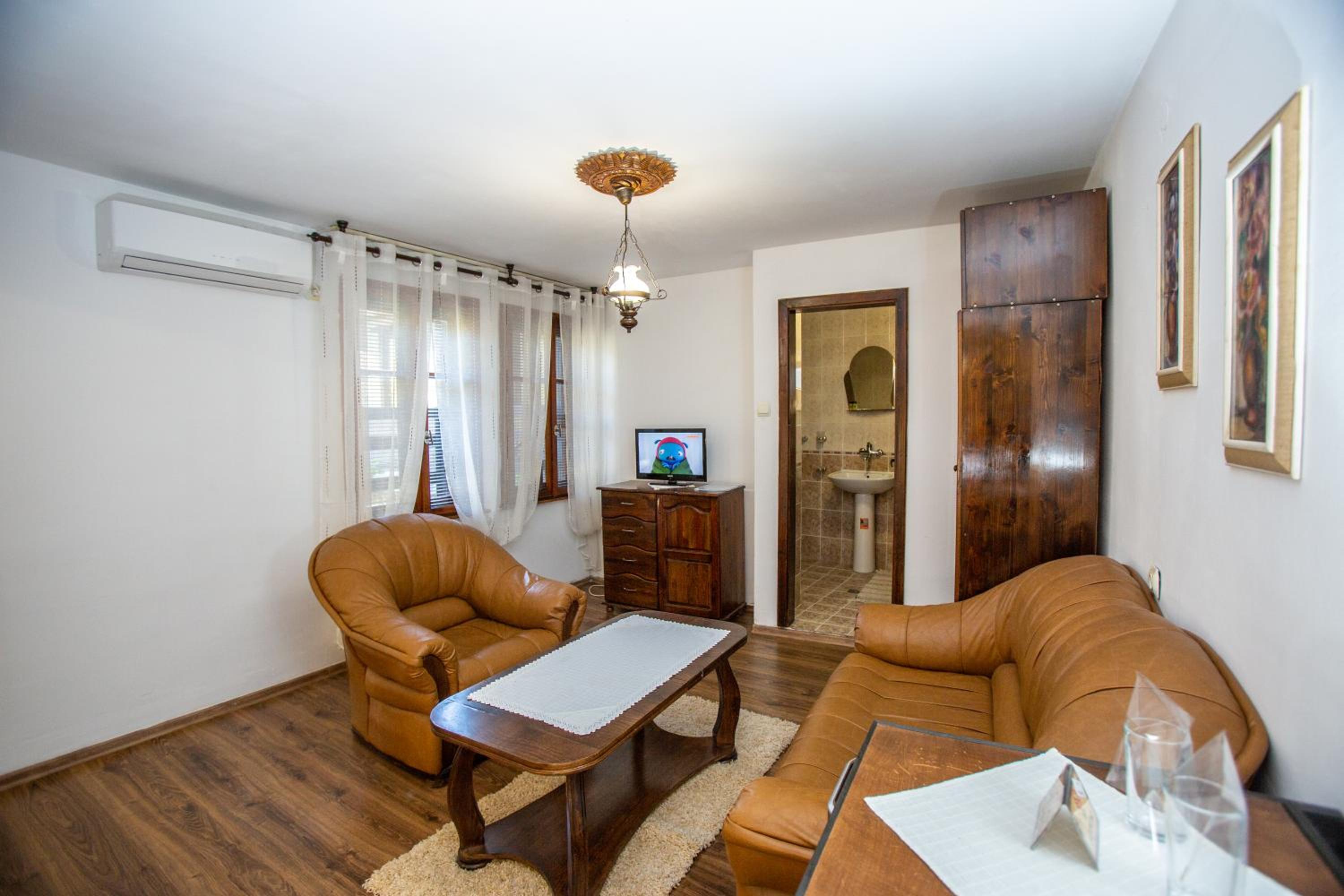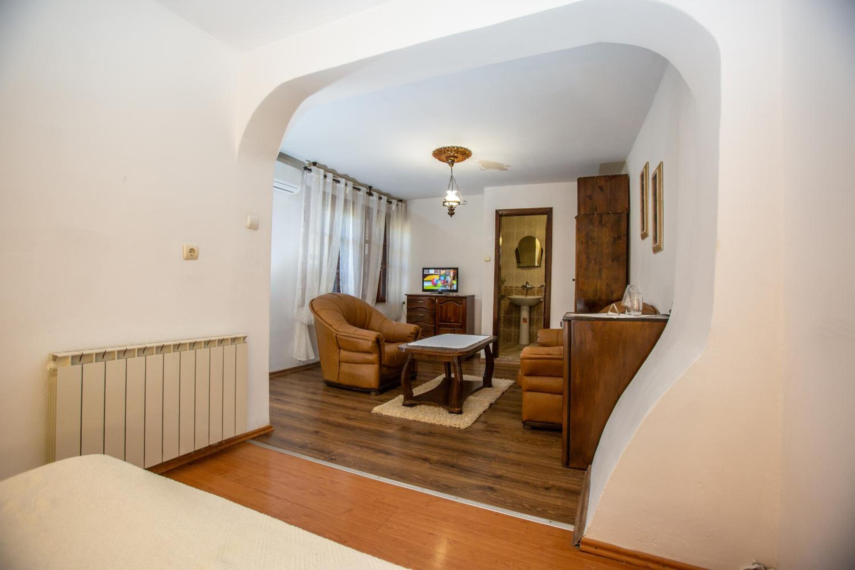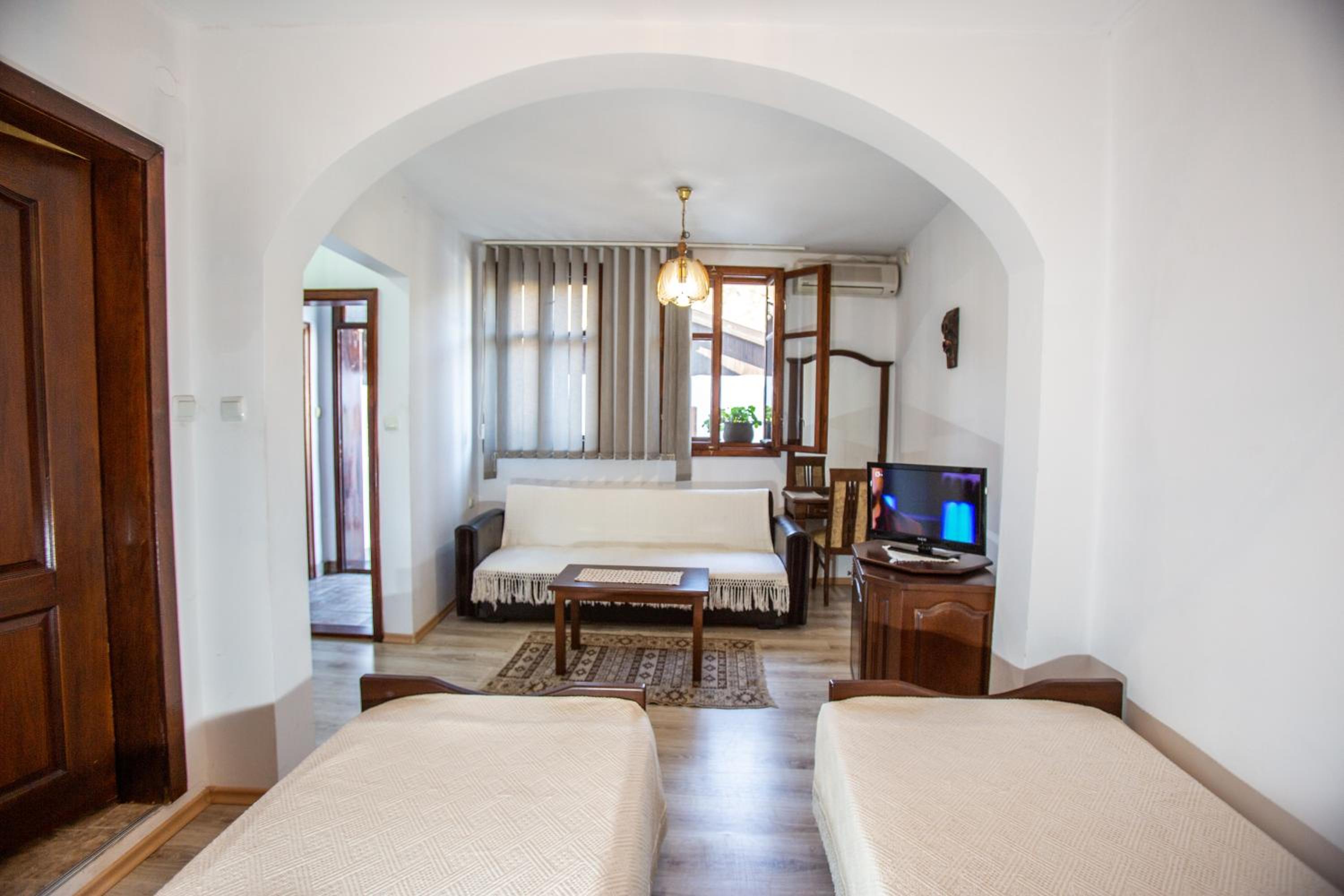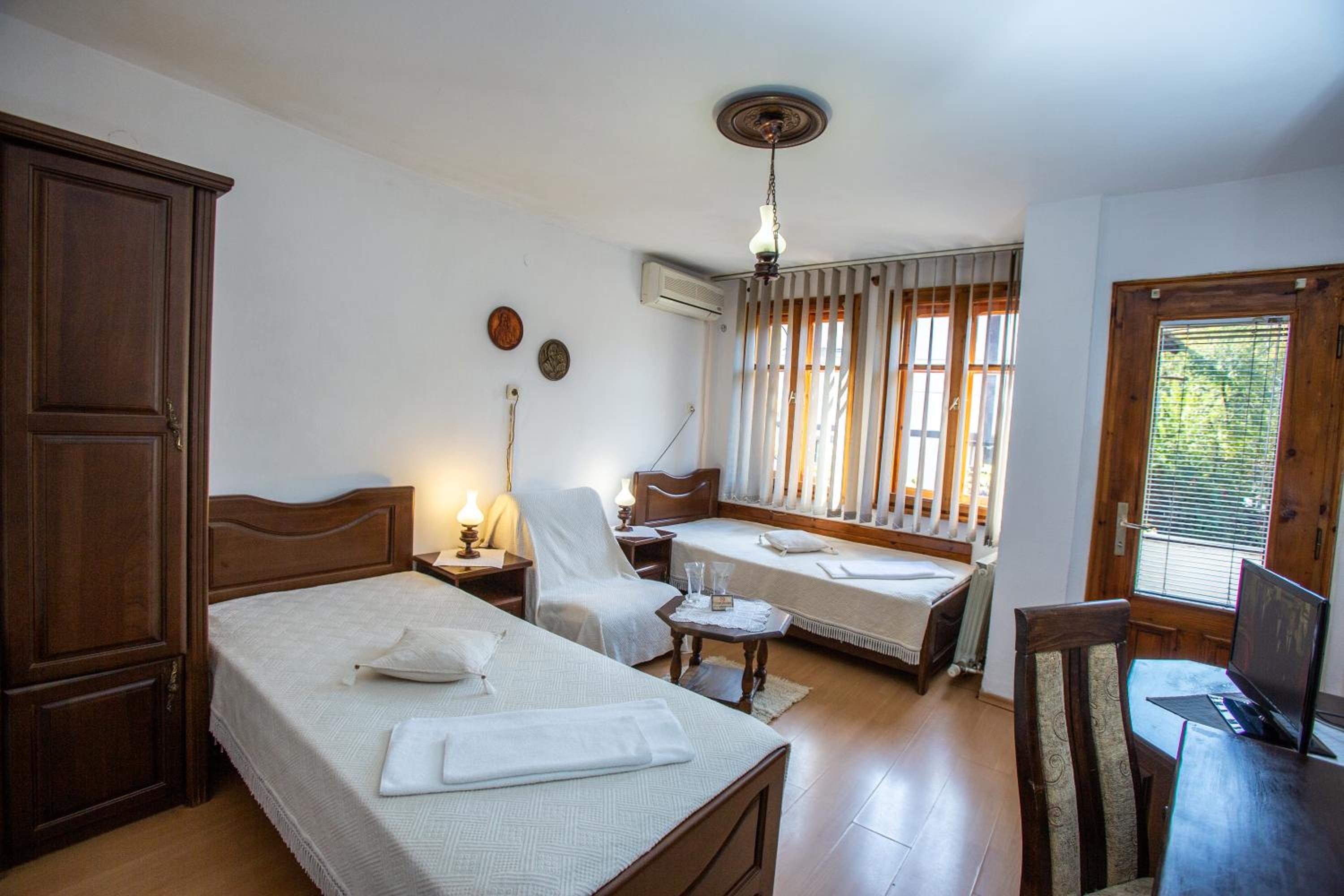 Indulge in comfort with rooms featuring modern amenities such as free WiFi, cable TV, and minibars. Unwind in style with the option of a spa bath or cozy up by the fireplace. The balcony in most rooms offers a stunning vista of the historic Hissarya Fortress.