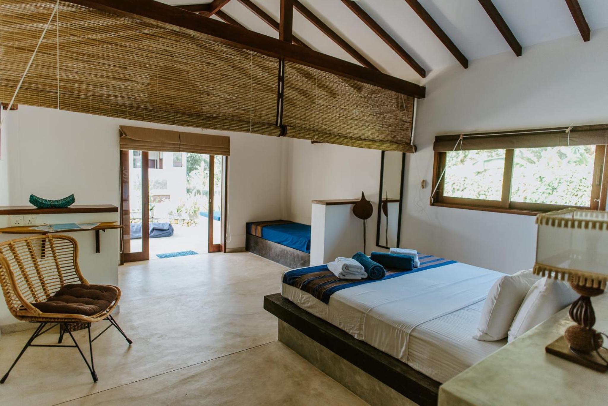 The villa was exactly what we needed on our last few days in Sri Lanka!m. The villa is run by a wonderful couple that has been in the hospital business for many years and it shows. It’s right in front of the beach which is pretty empty and clean. On the day we checked into our room the owner surprised us with a bday cake after our dinner which shows the level of kindness and hospitality they have towards their guests. The villa is clean, has good facilities, is in front of the beach, 24hr security, surfing classes, good breakfast, small boutique shop, a hammock and most importantly an excellent staff that were always helpful and kind. The location is a bit out from the busy city life but if you’re looking for an excellent beach (great for surfing) and some quiet time then this villa is a perfect choice. You can always take a 15min toktok to the closest city. The room layout is also really nice and practical with an open shower concept and comfortable bed. We loved our stay and will definitely come back again.