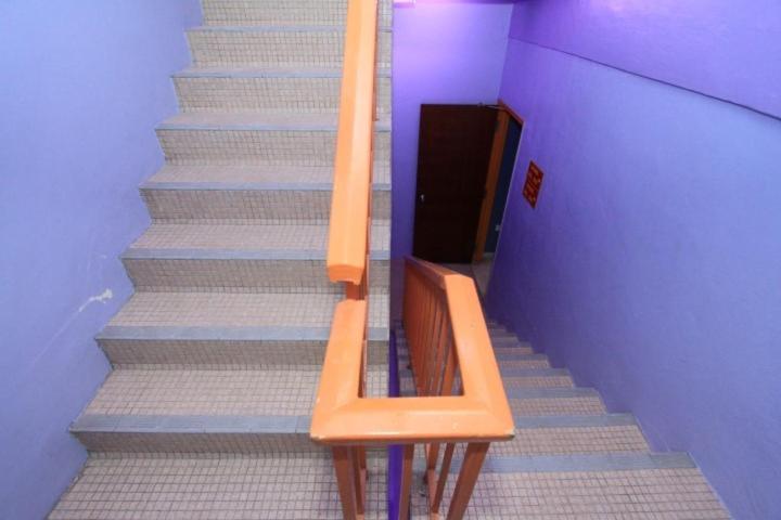 No lift. No ramp for disabled people. Also, there is no kettle in the room. Ironing facility is in the common area. Not to expect more from a budget hotel.