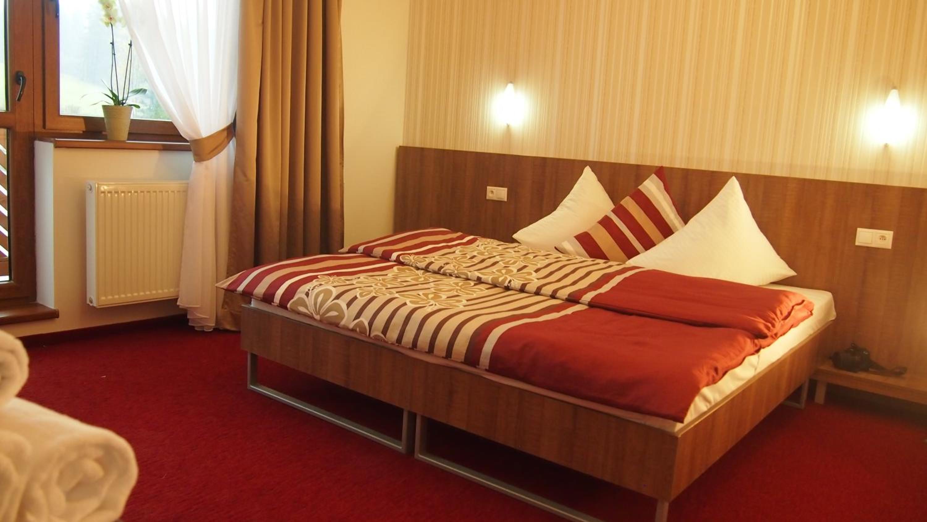 Penzión Zlatný potok splnil všetky naše očakávania, chutné raňajky, milý a ochotný personál. Aj základná izba bola dosť priestranná, plnohodnotná prístelka sa dala prisunúť k posteli a dokonca bol na izbe aj vymedzovací kus medzi posteľ a prístelku aby nevznikla medzera medzi matracmi. Taktiež reštaurácia veľmi dobrá, super jedlá za rozumné ceny.