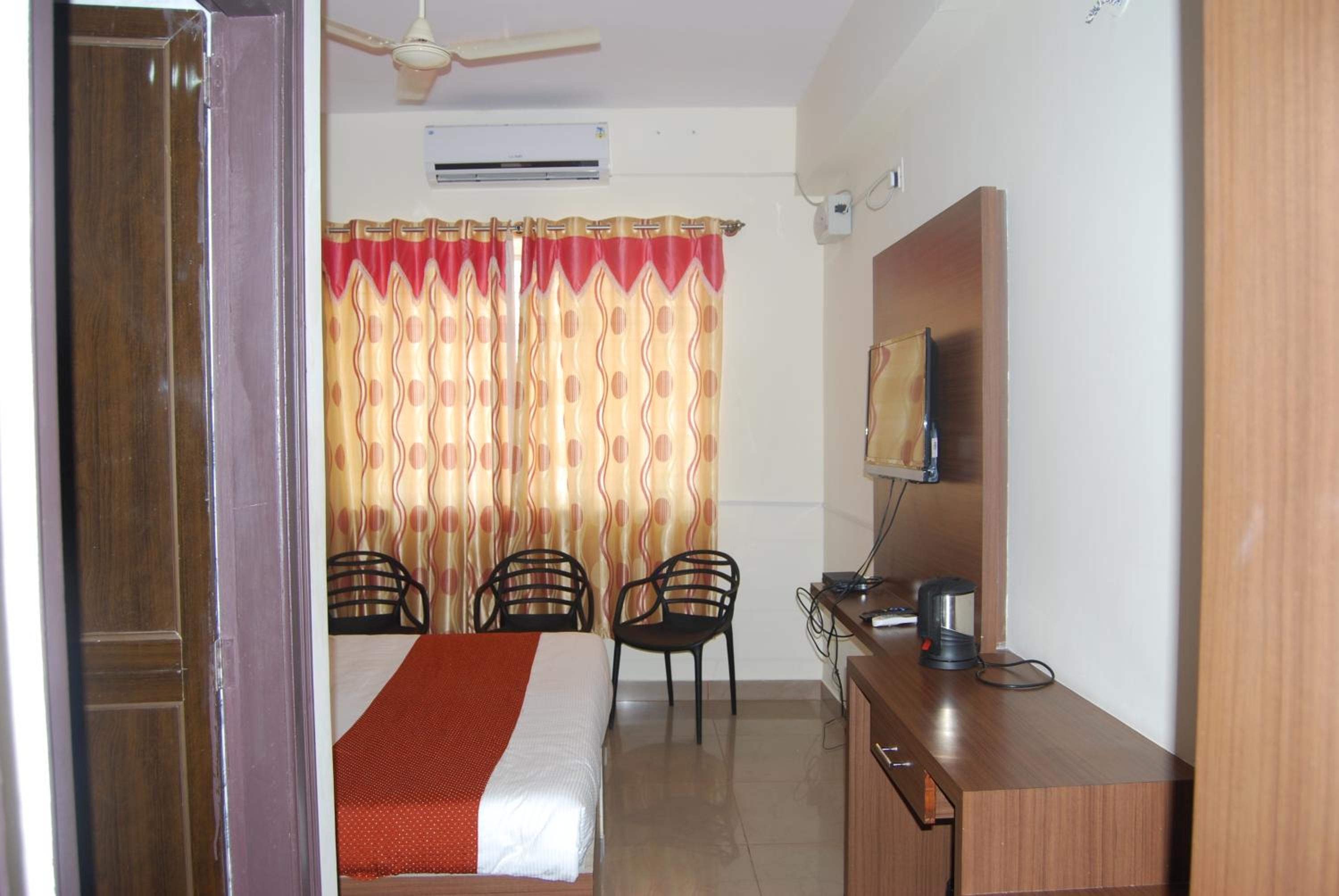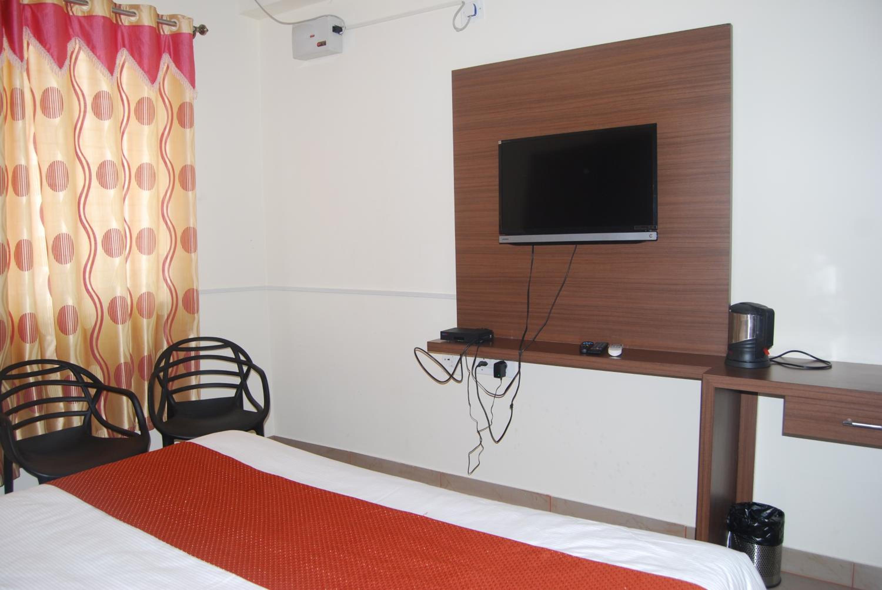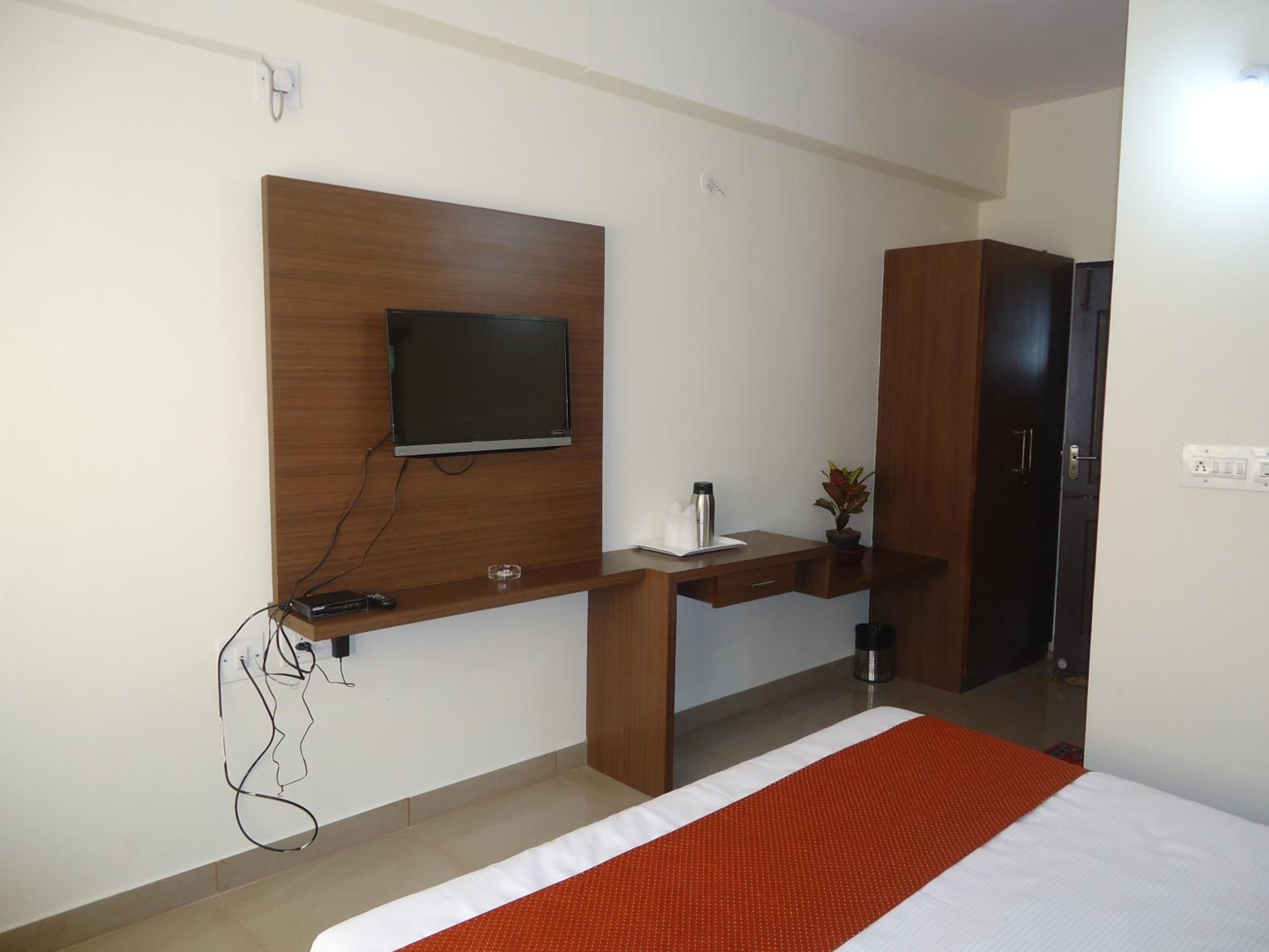 STAYMAKER SRK Paradise in Mysore offers elegant 3-star accommodation with modern amenities. Each room features a flat-screen TV, comfortable bed linen, and plush towels for a relaxing stay.