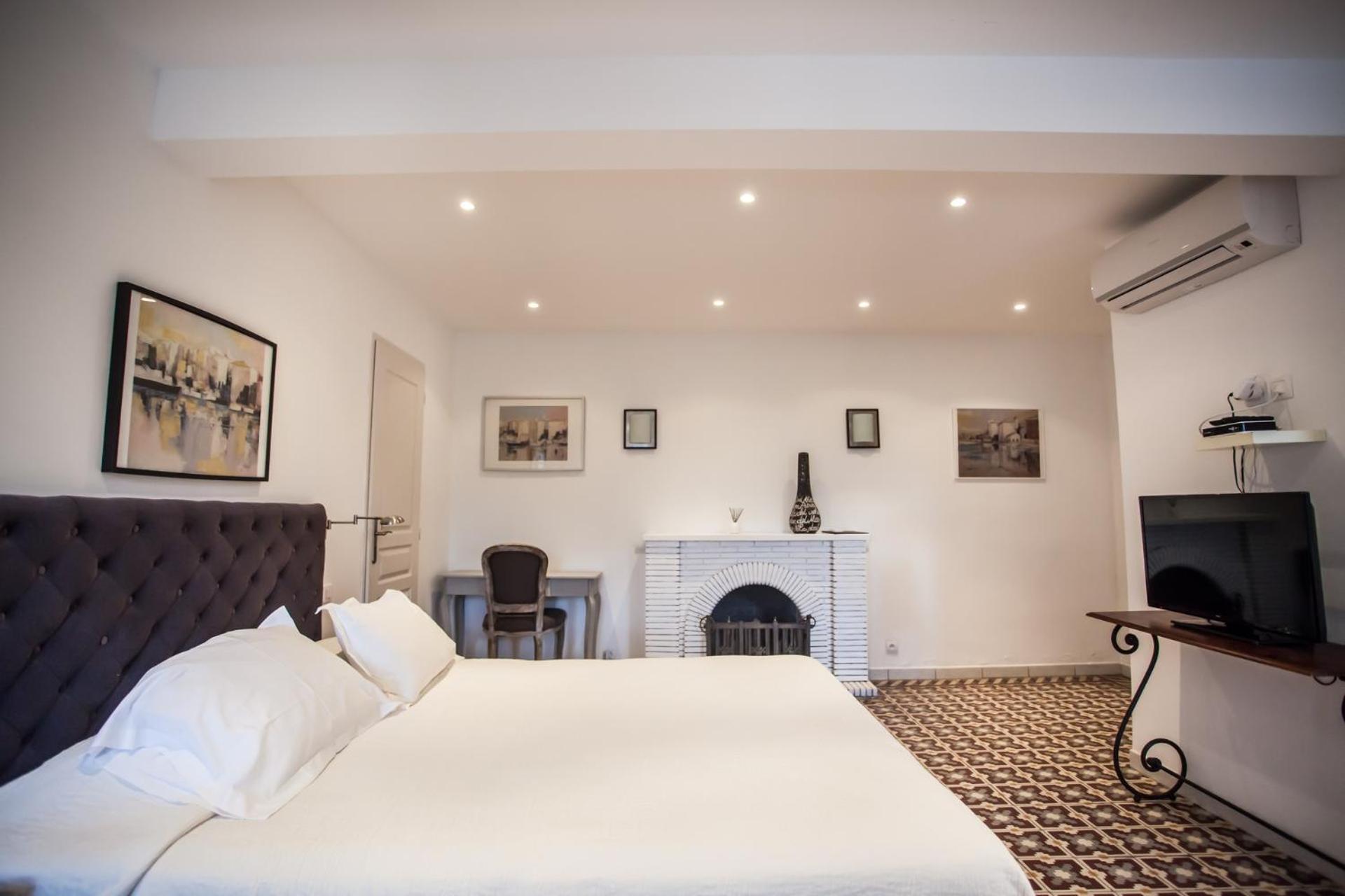Indulge in the neutral earth-toned, spacious guest rooms at Hôtel Villa Les Orangers, offering stunning views of the mountains and valley. Each room or suite is equipped with modern amenities like a flat-screen TV and free WiFi, ensuring a comfortable stay.