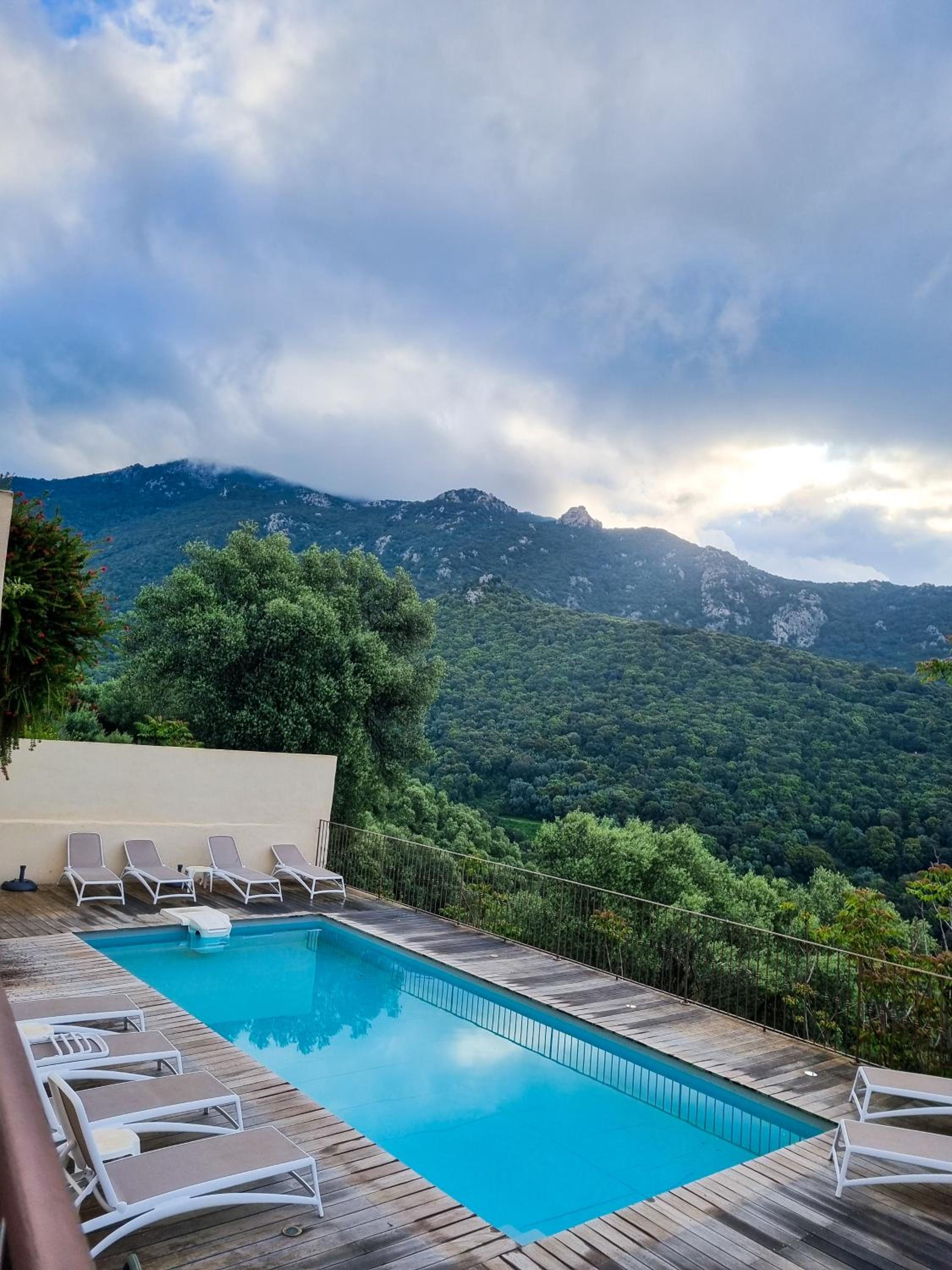 Charmant petit hôtel typique dans la montagne corse avec une vue incroyable donnant sur propriano .village typique et magnifique . Chambre faite avec goût et propre . Petit sentier sentant le maquis pour aller à la réception génial ☺️ merci à la jeune femme avec sa robe verte pour son agréable accueil et sa gentillesse .