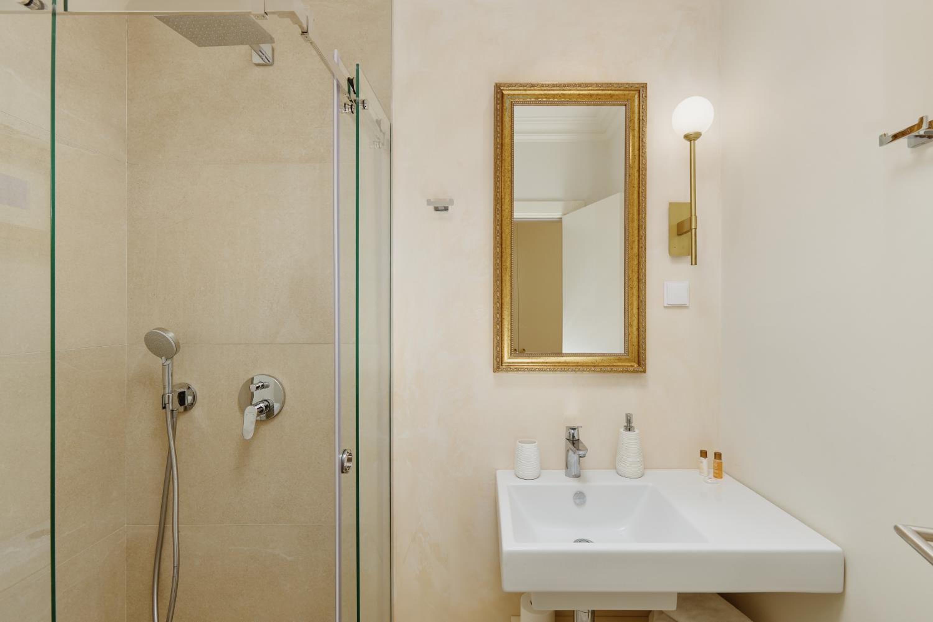 Be aware the shower opening is rather small due to the counter. Also, no elevator (luckily the bellman assisted).