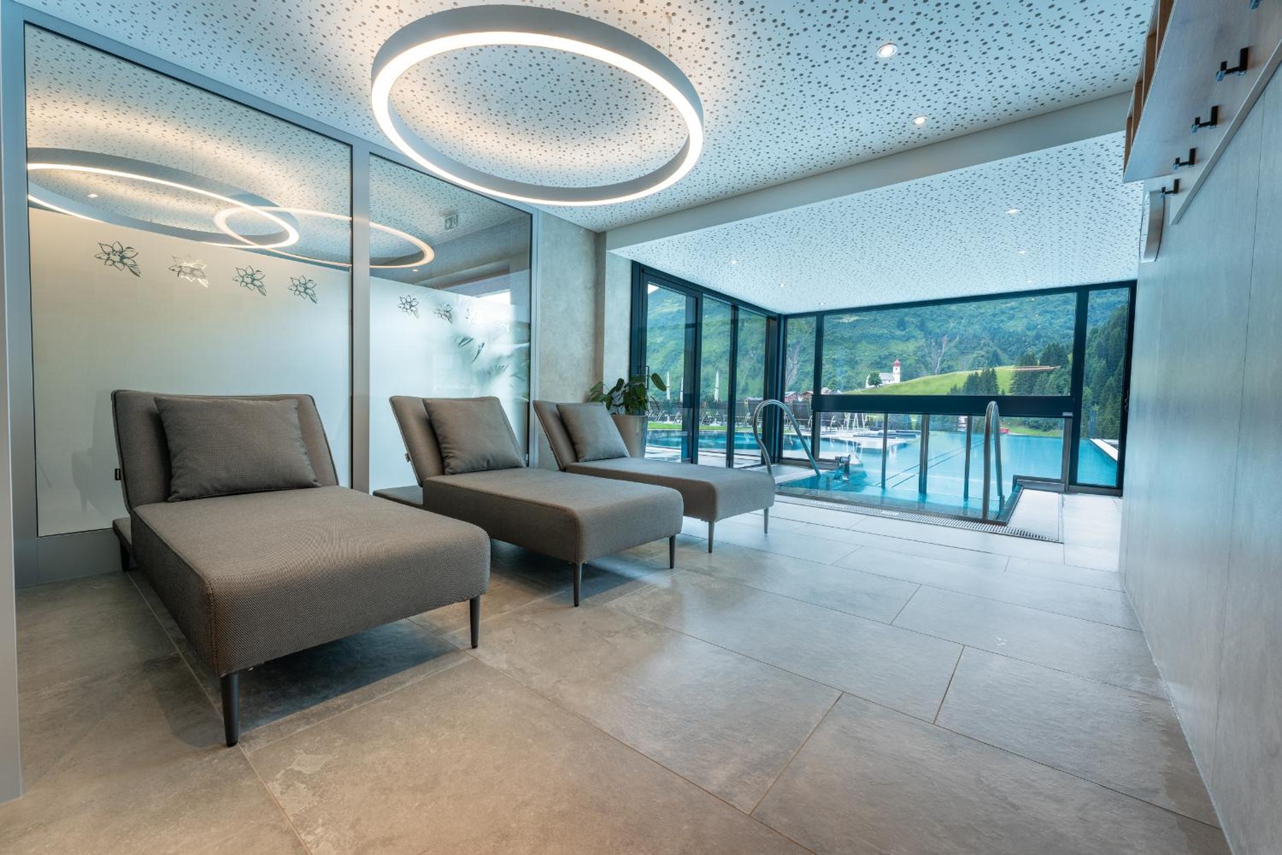 Relaxation and Dining: Unwind in the sauna, hot tub, steam bath, or Kneipp pool. Indulge in Austrian and Vorarlberg cuisine at the on-site restaurant, with the option for half-board.