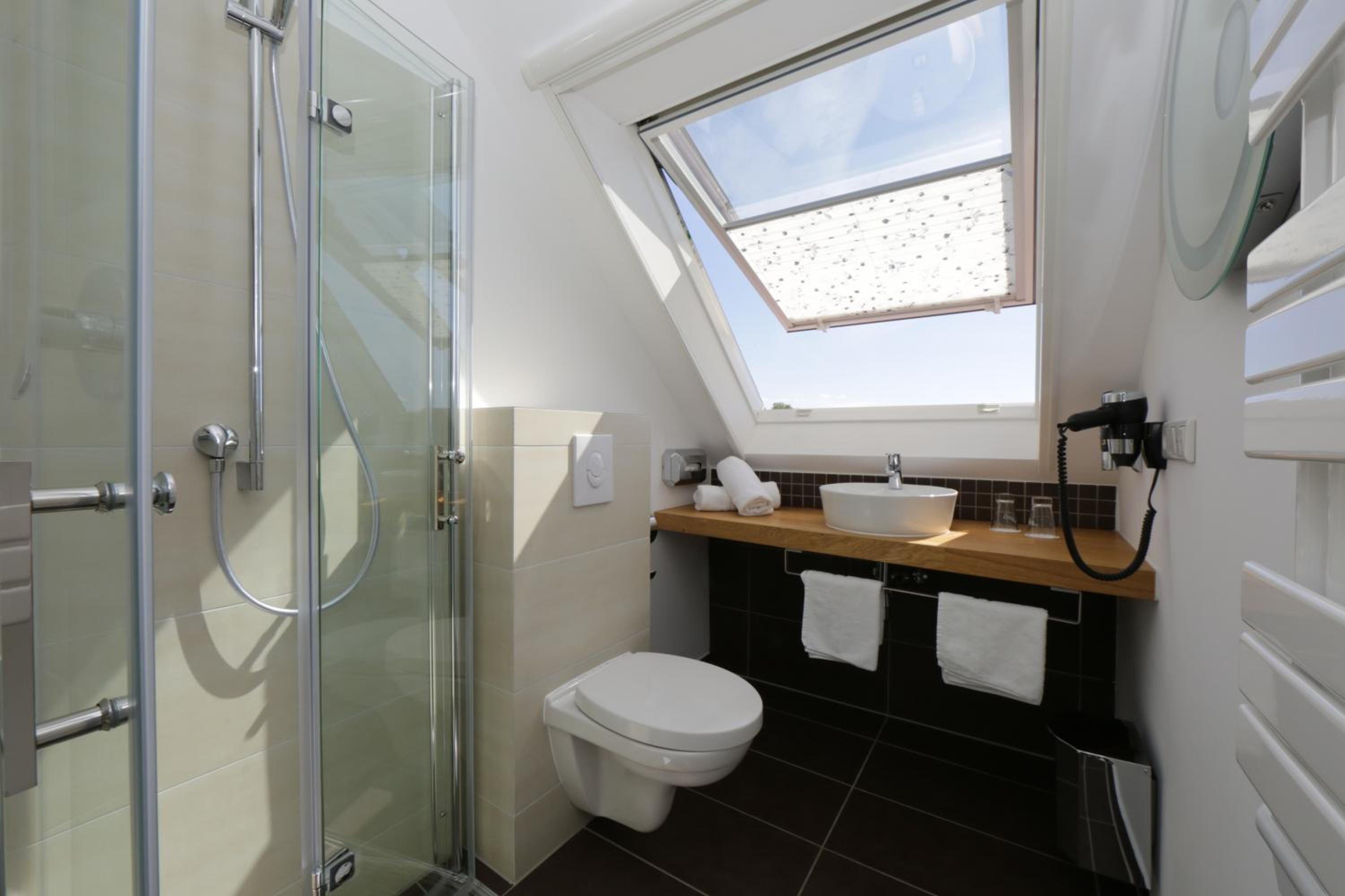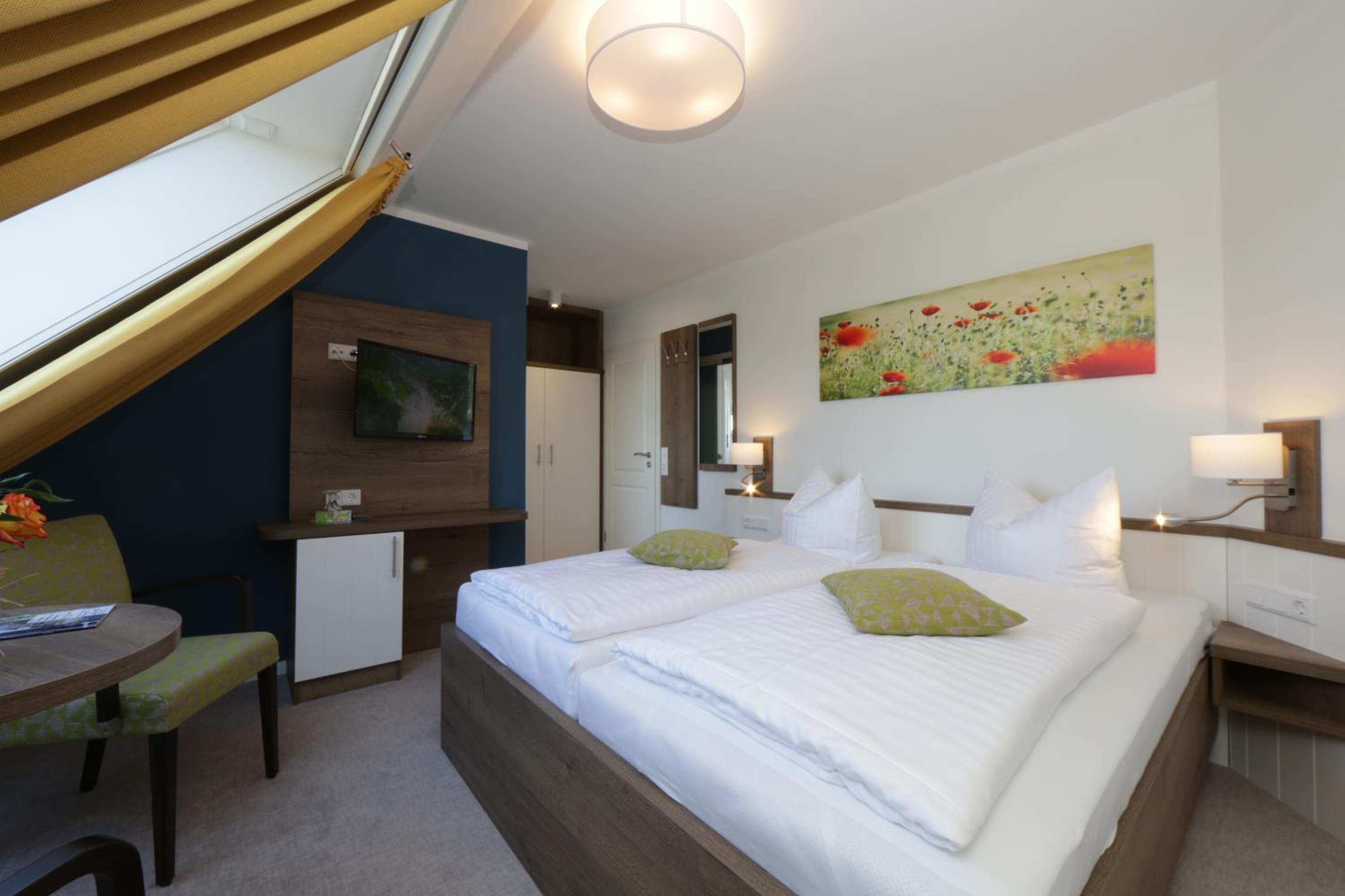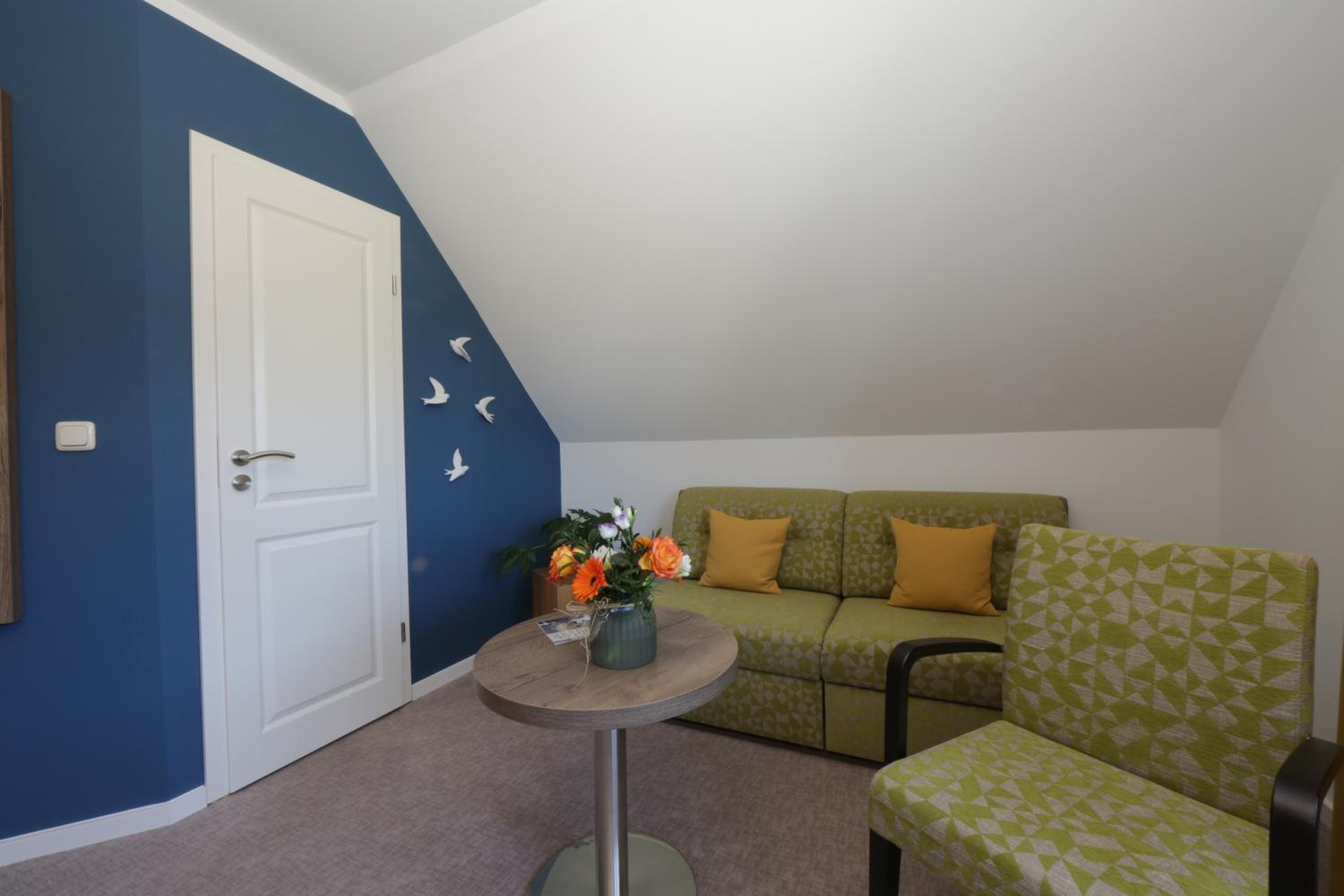 Alles war sehr zu unserer Zufriedenheit. Die Fenster waren mit Insektenschutz versehen, so dass man gut lüften konnte. Zimmer und Bad sind sehr geschmackvoll und praktisch eingerichtet. Das Frühstück war sehr liebevoll angerichtet- teilweise mit Produkten aus der Region. Alles wurde verpackungsfrei serviert und wir haben es auch als sehr angenehm empfunden, dass es kein Frühstück in Buffetform war, sondern jeder Tisch einzeln eingedeckt war. Der Herr, der das Frühstück zubereitet und serviert hat war sehr freundlich und zuvorkommend. Für die Gäste stand auf dem Flur ein großer Kühlschrank, aus dem man sich gegen Entgelt, gekühlte Getränken entnehmen konnte.