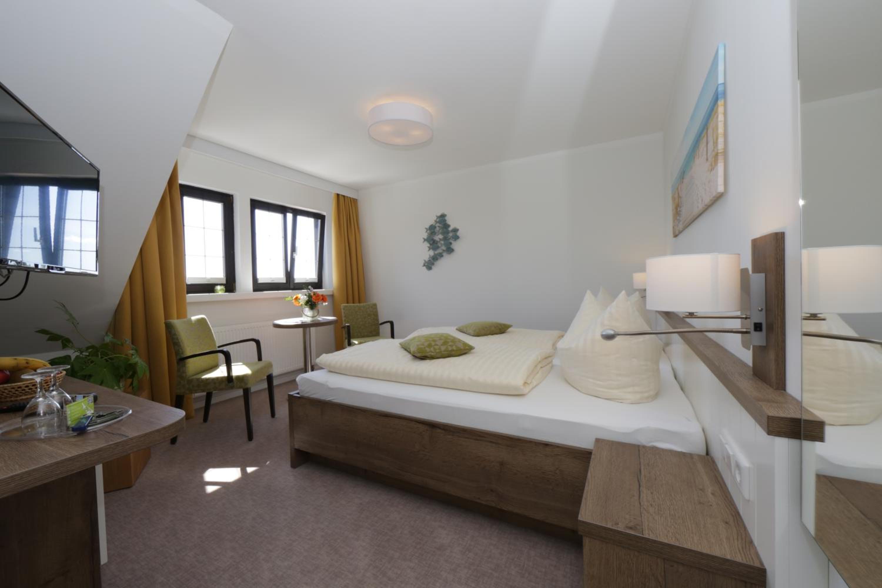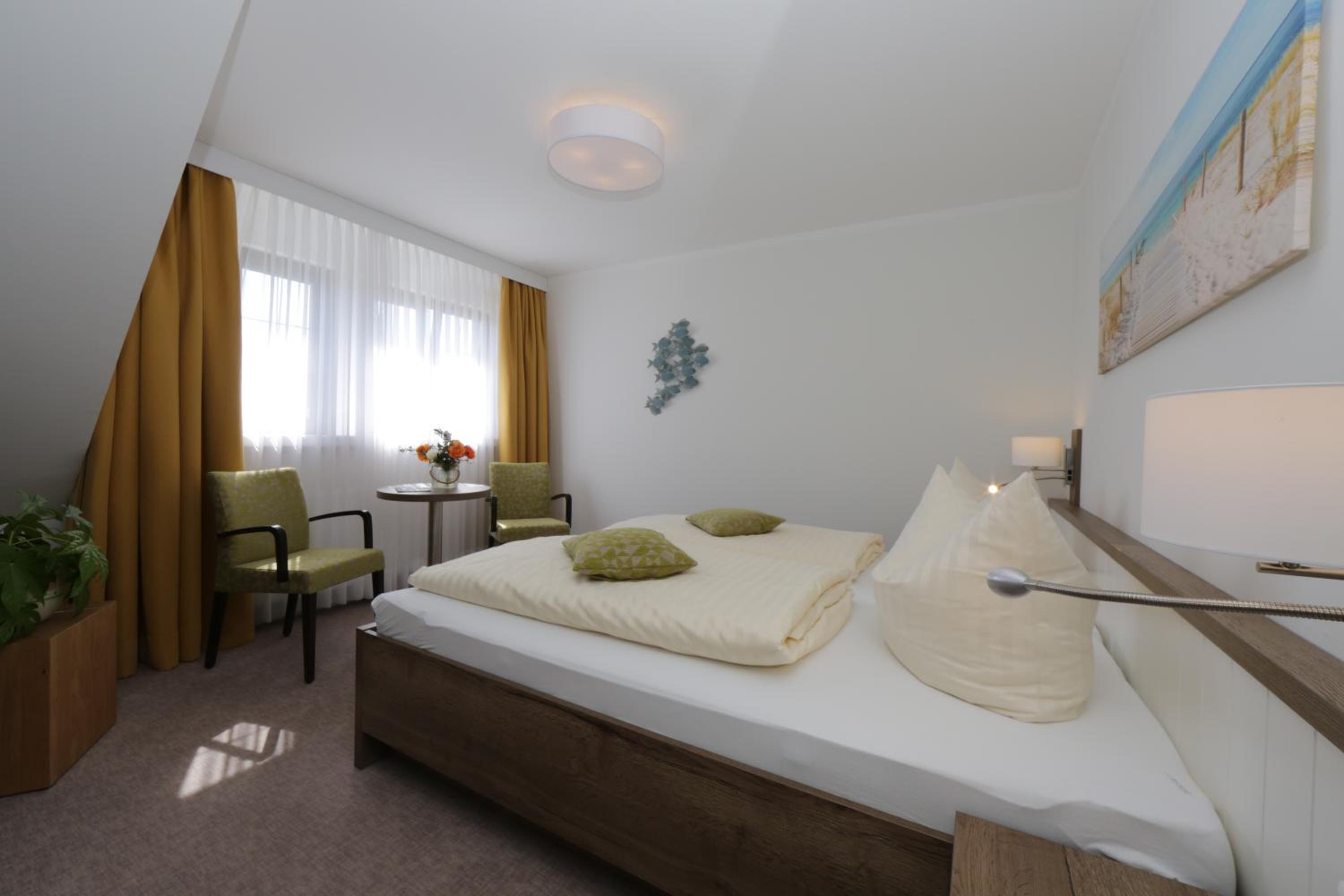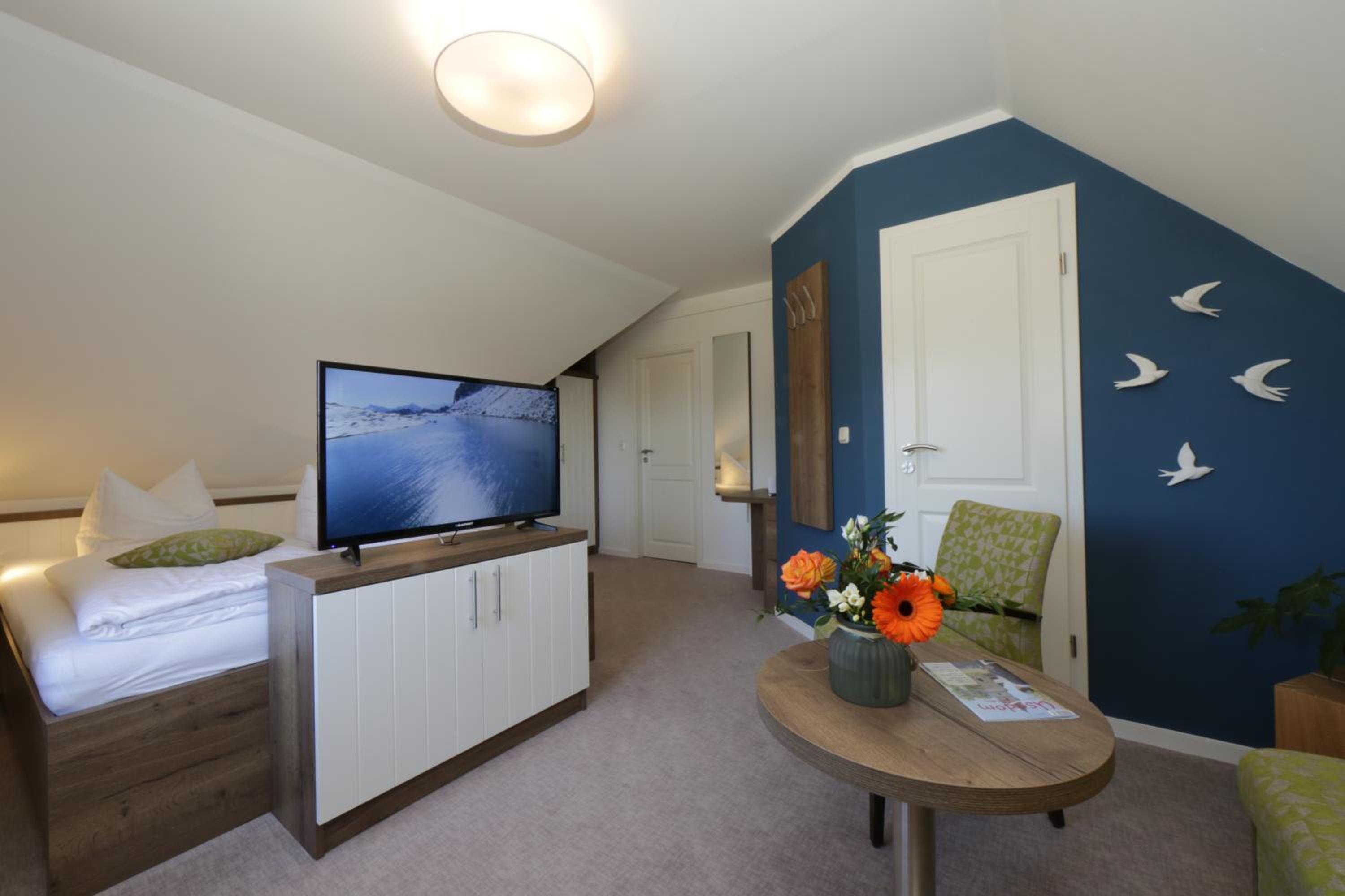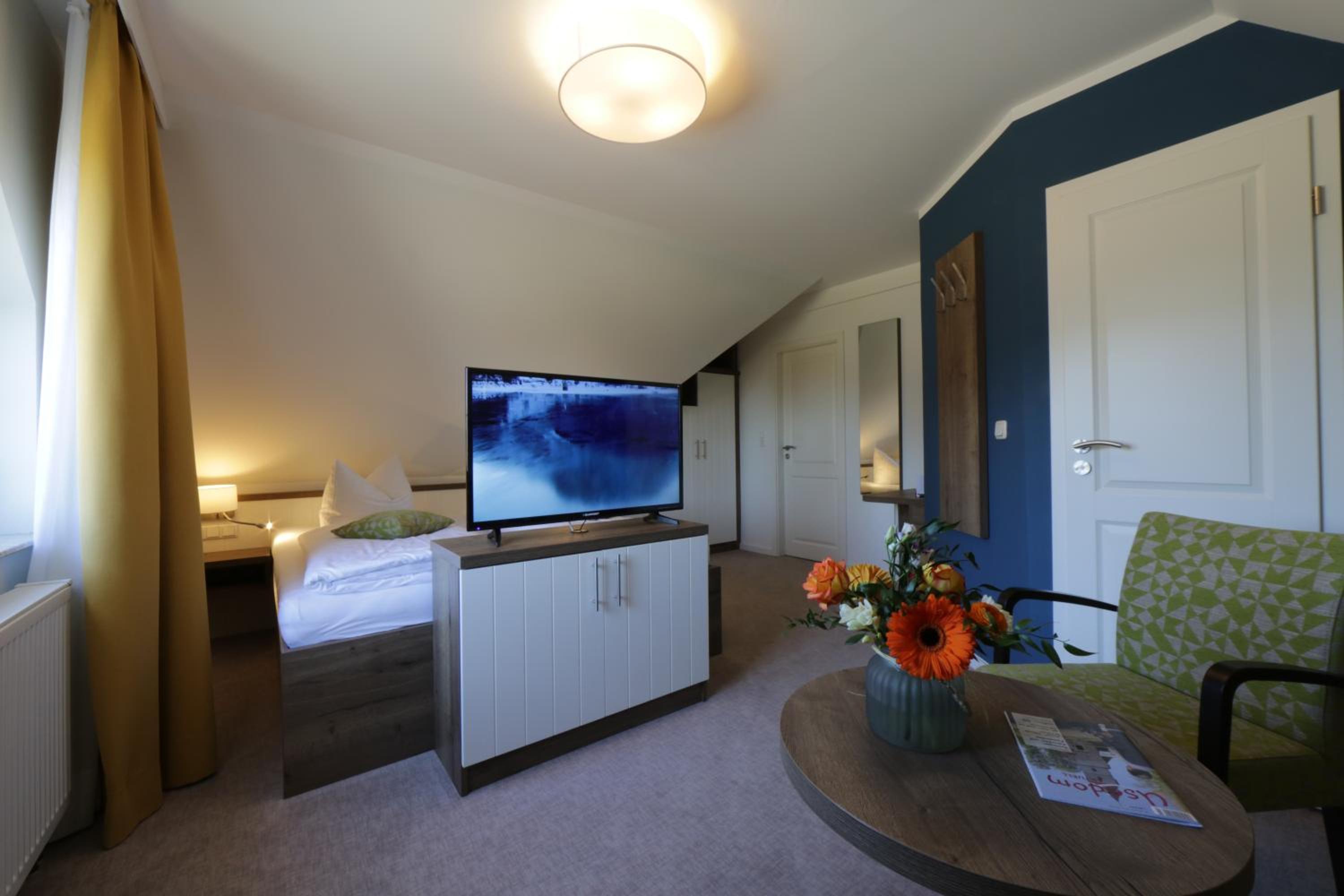 Das Zimmer war geräumig, modern sowie funktional eingerichtet und zudem sehr, sehr sauber. Das Bett war bequem und nachts war es wunderbar ruhig, sodass man auch bei geöffnetem Fenster gut schlafen konnte. Die ruhige Lage der Unterkunft abseits des Trubels hat mir gut gefallen, die Umgebung war auch ideal, um mit dem Hund eine Runde spazieren zu gehen. Wenn man doch mehr Trubel möchte, ist man mit dem Auto schnell in Ahlbeck, etc.