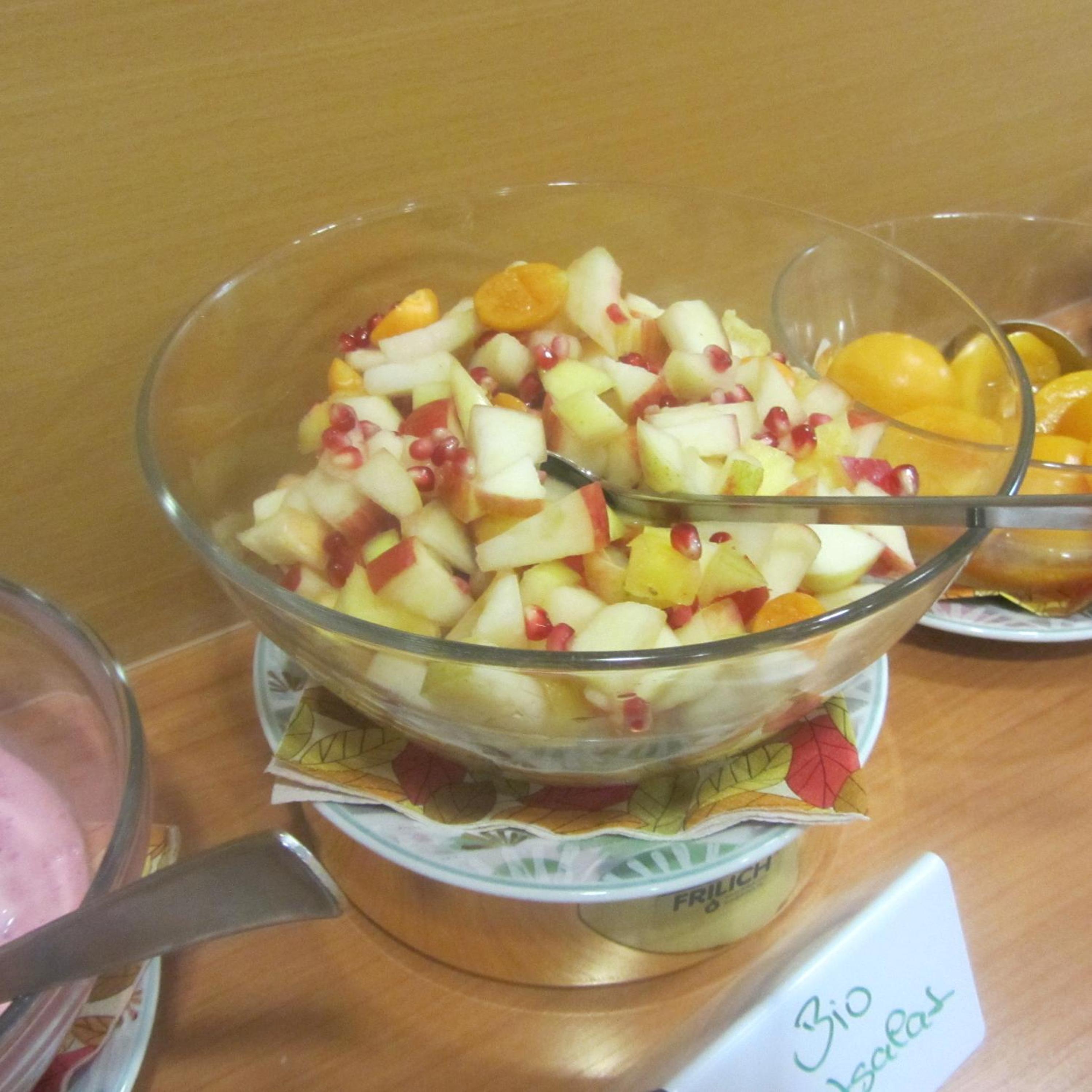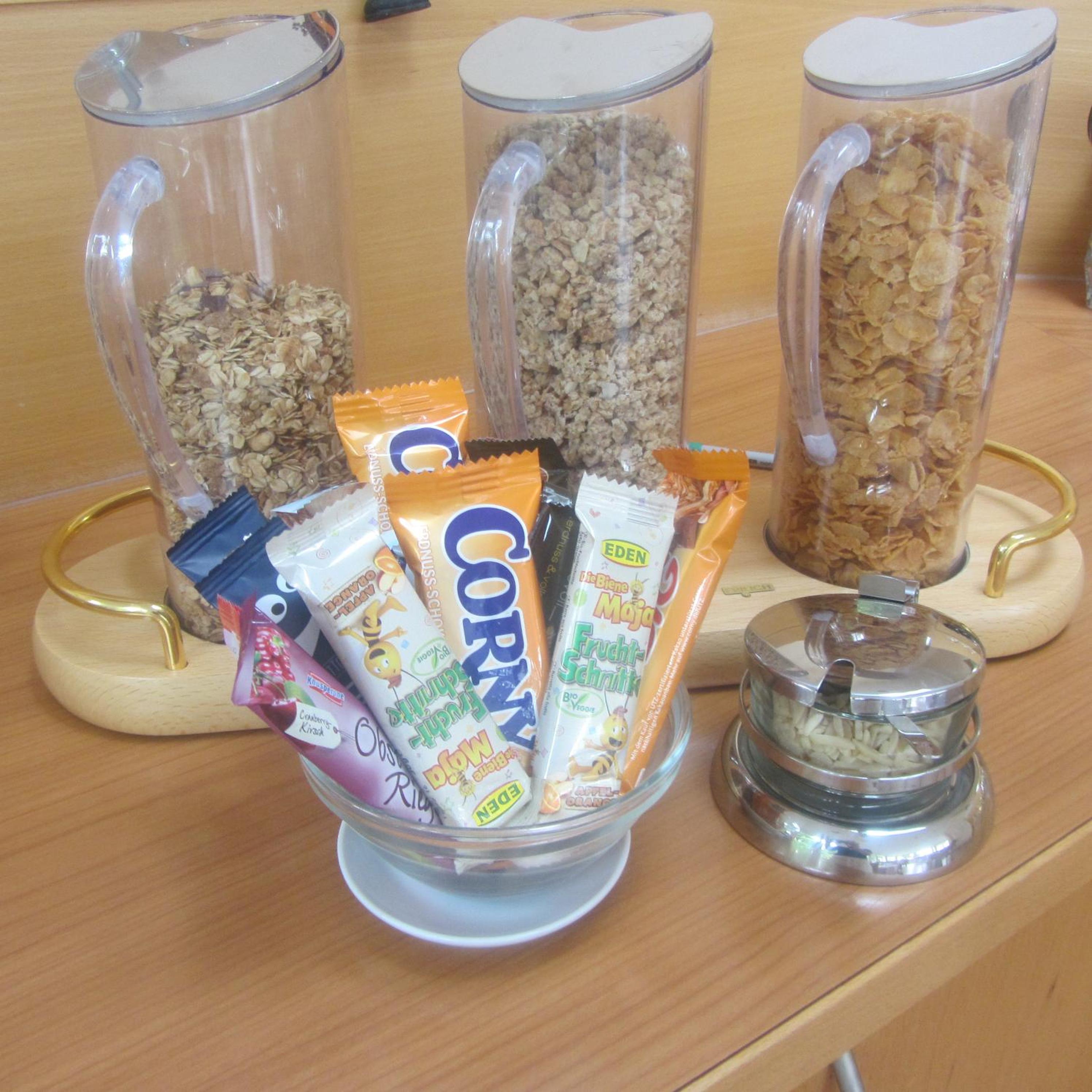 Der Service war bestens! Zum Frühstück bekommt man auch Kaffeespezialitäten sowie Spiegel-oder Rührei nach Wahl an den Tisch gebracht und ein zusätzlicher Gast (hier:mein Sohn), der in Eching wohnt, durfte kostenfrei mit frühstücken.