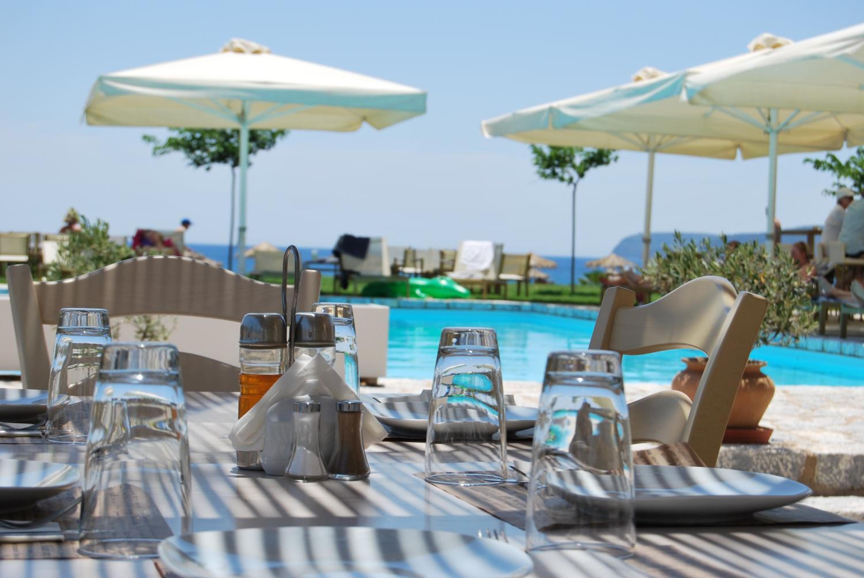 Einzige Anmerkung..wenn das Wetter mal ausnahmsweise etwas kälter ist oder bei starkem Wind und Regen..wenig Sitzplätze zum Essen in vollständig geschlossenen Räumen...schon Überdachung und Windschutz vorhanden, aber eine Seite bleibt offen Das haben wir aber häufig so in Griechenland gesehen...wohl selten Bedarf, da ja meistens das Wetter mitspielt Im Sommer eher kein Thema.