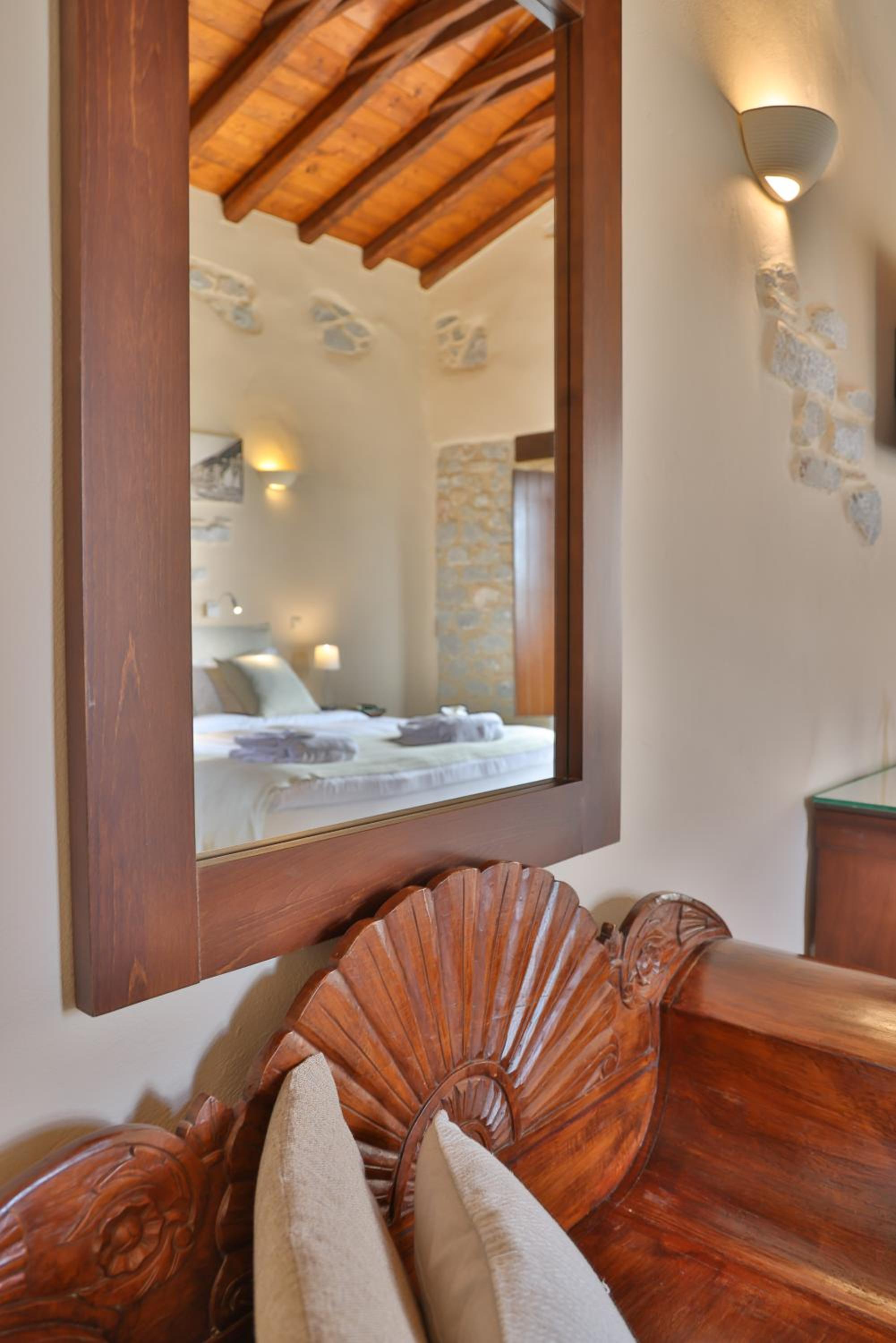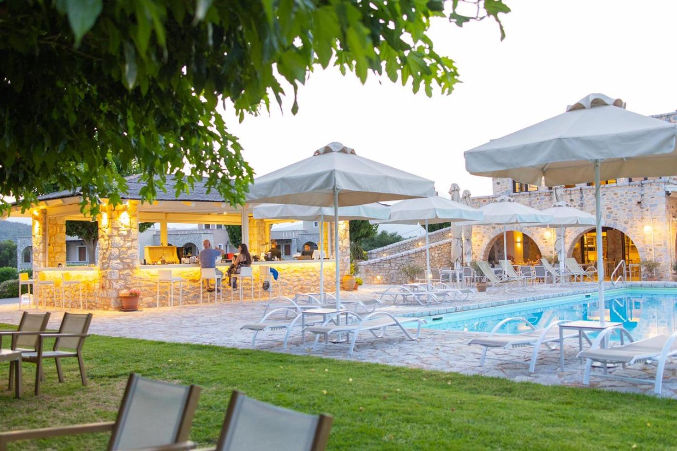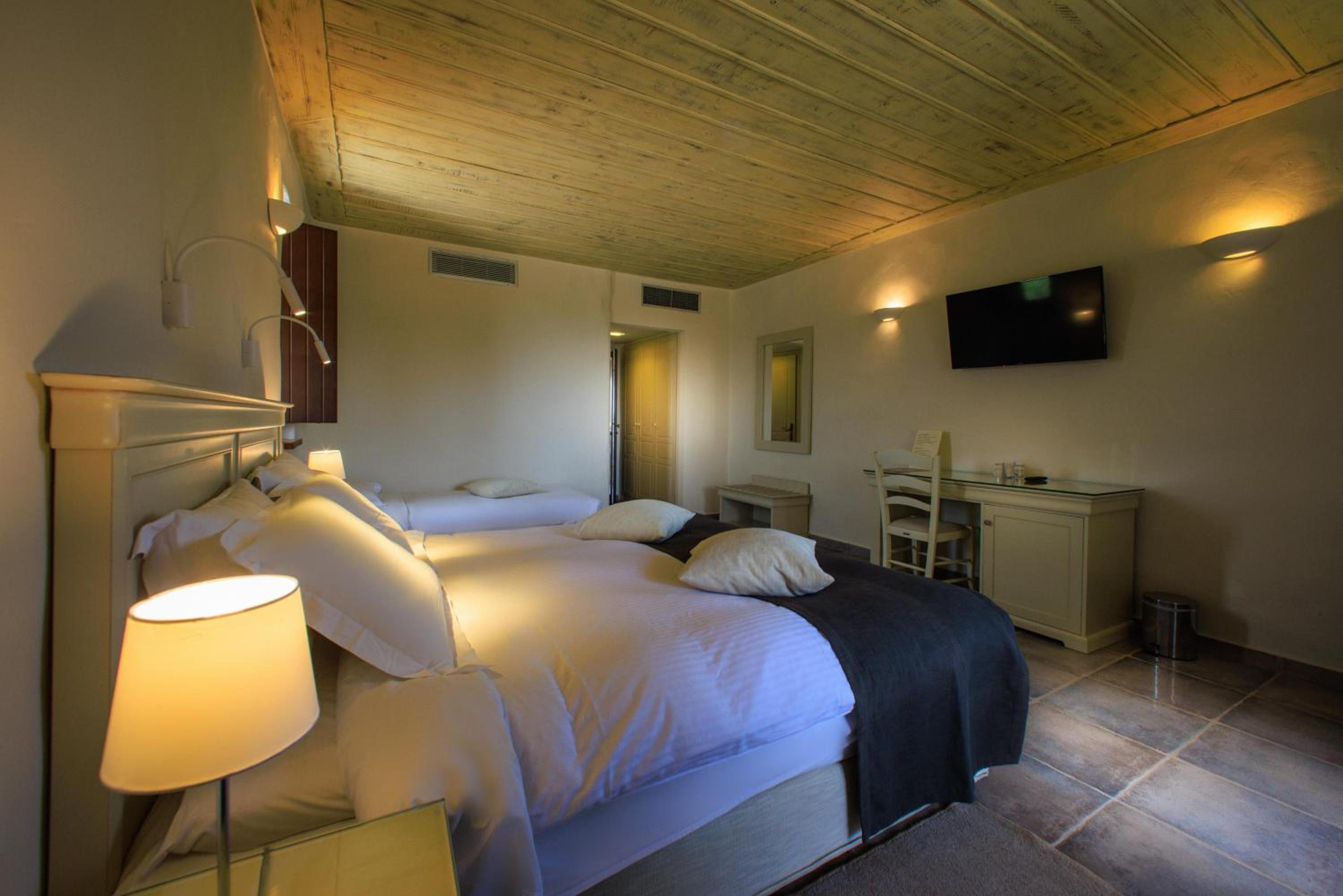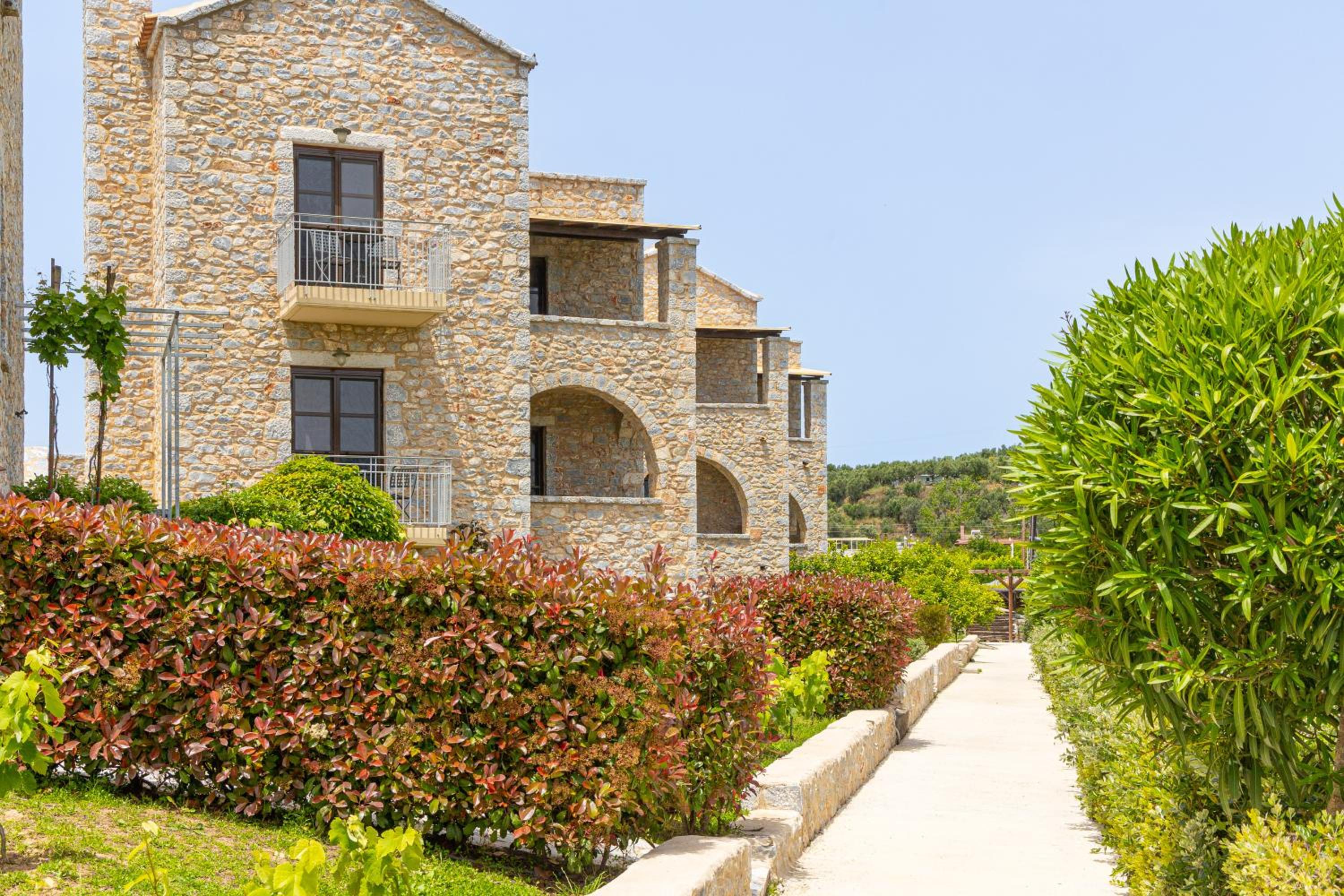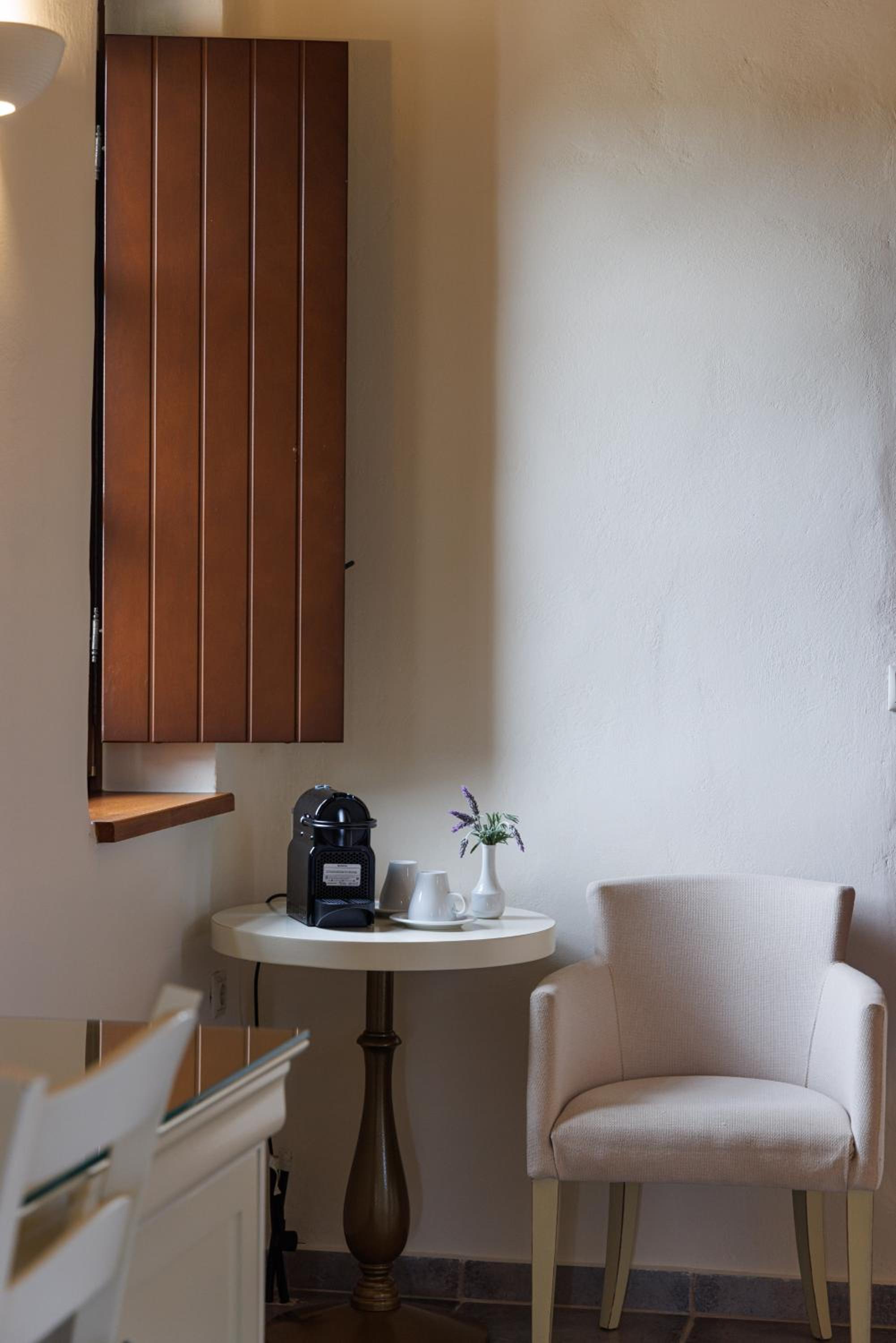 Experience the charm of Mani's architectural style in the traditionally decorated rooms featuring wood and stone elements. Enjoy sunset views across the Laconian Gulf from your furnished balcony.