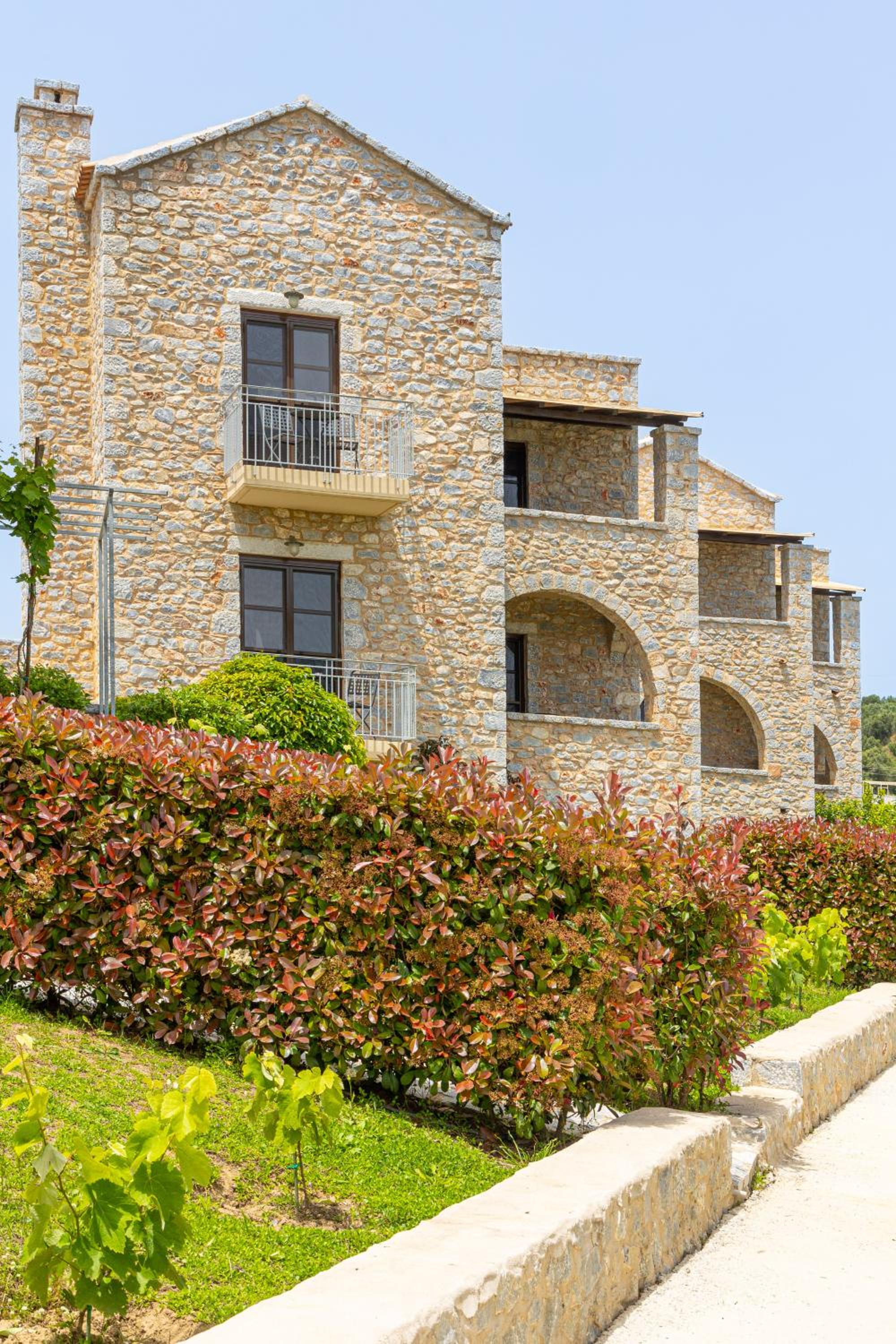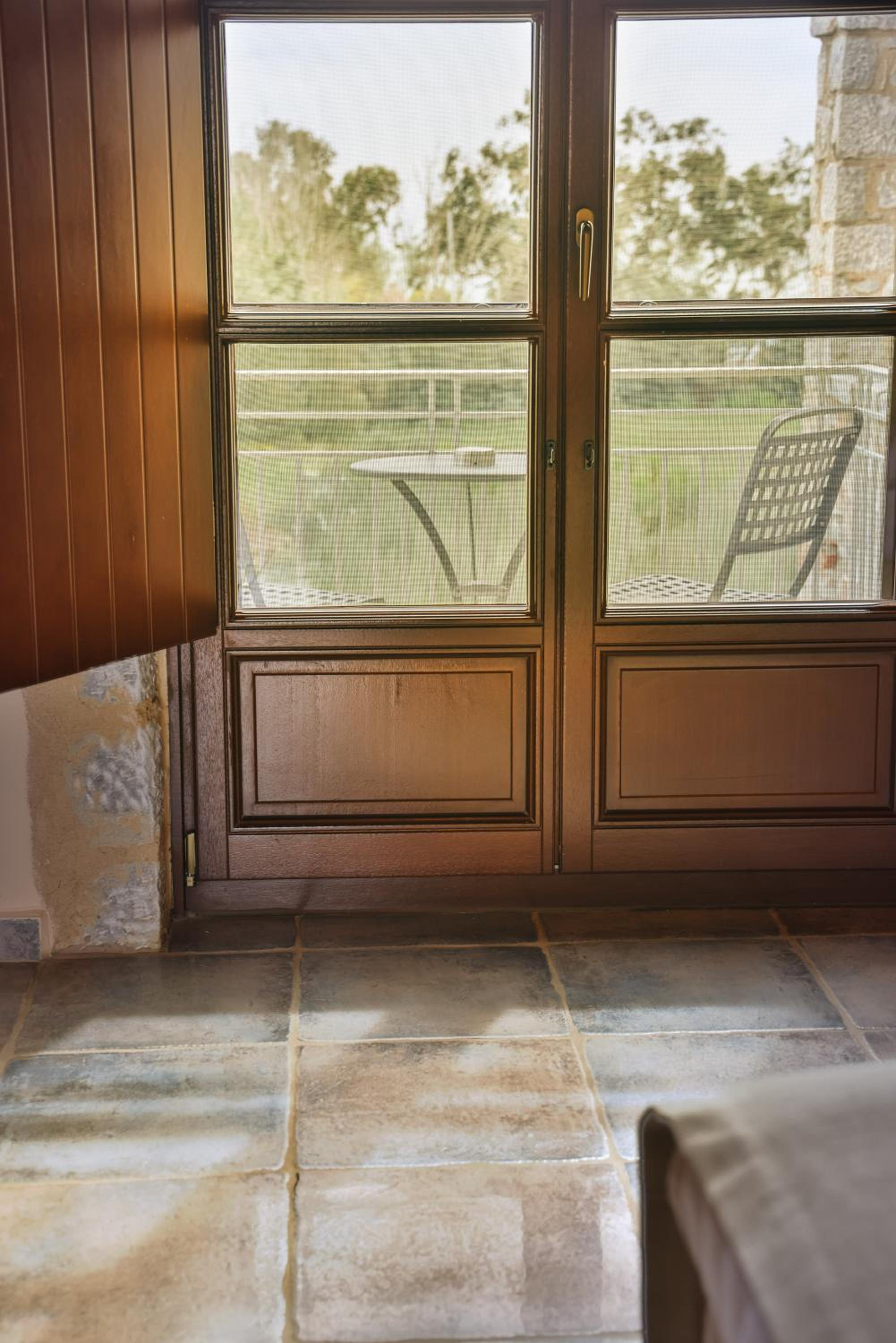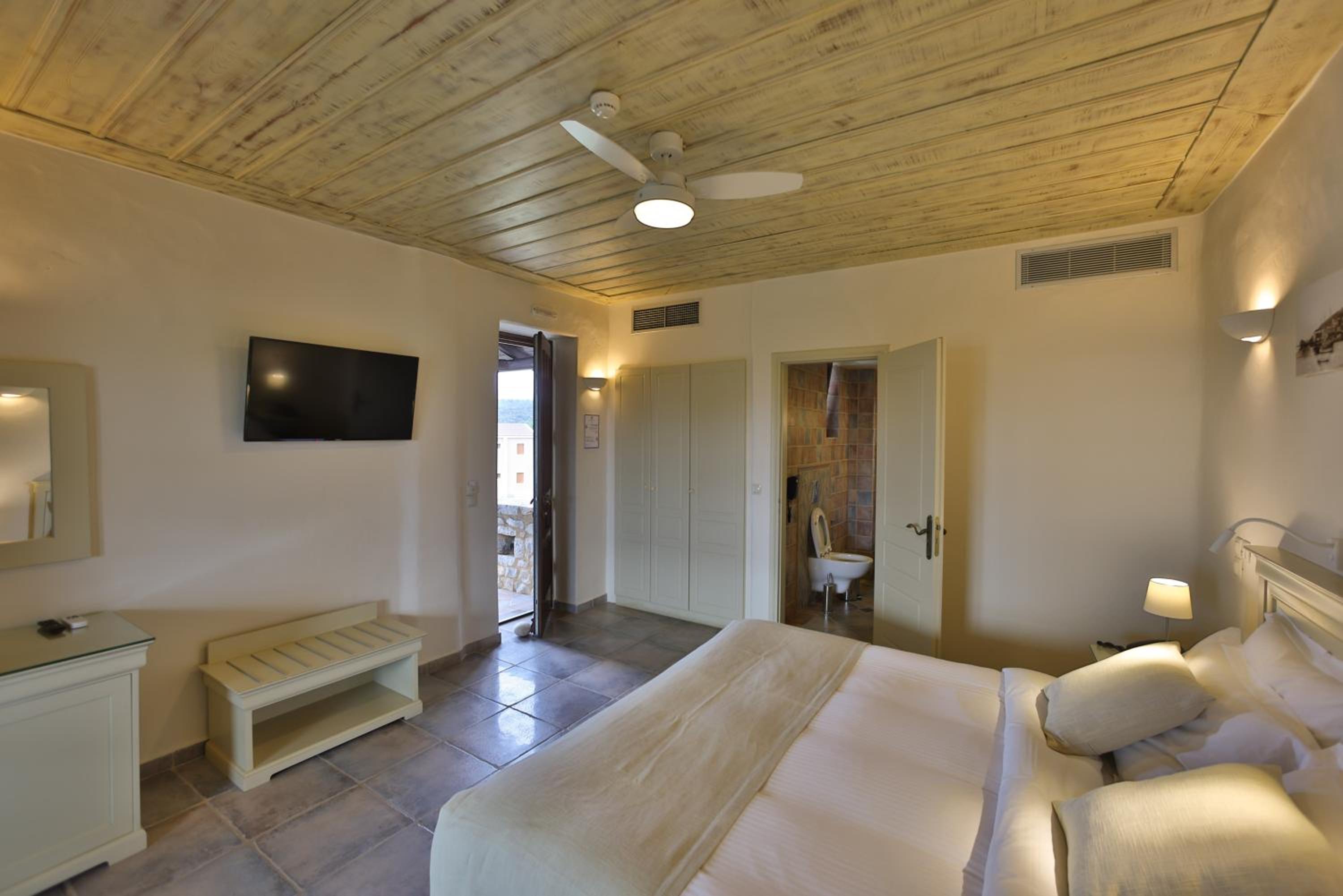 The stone houses are gorgeous. My room was charming, luxuriously large (with a mezzanine), nicely decorated and high quality facilities. The balcony faces to the sea, overviewing a large garden (although it's the neighbors), with two lamps. All windows and the balcony doors have mosquito screens. The shower head was a bit broken, but they fixed it after I asked.