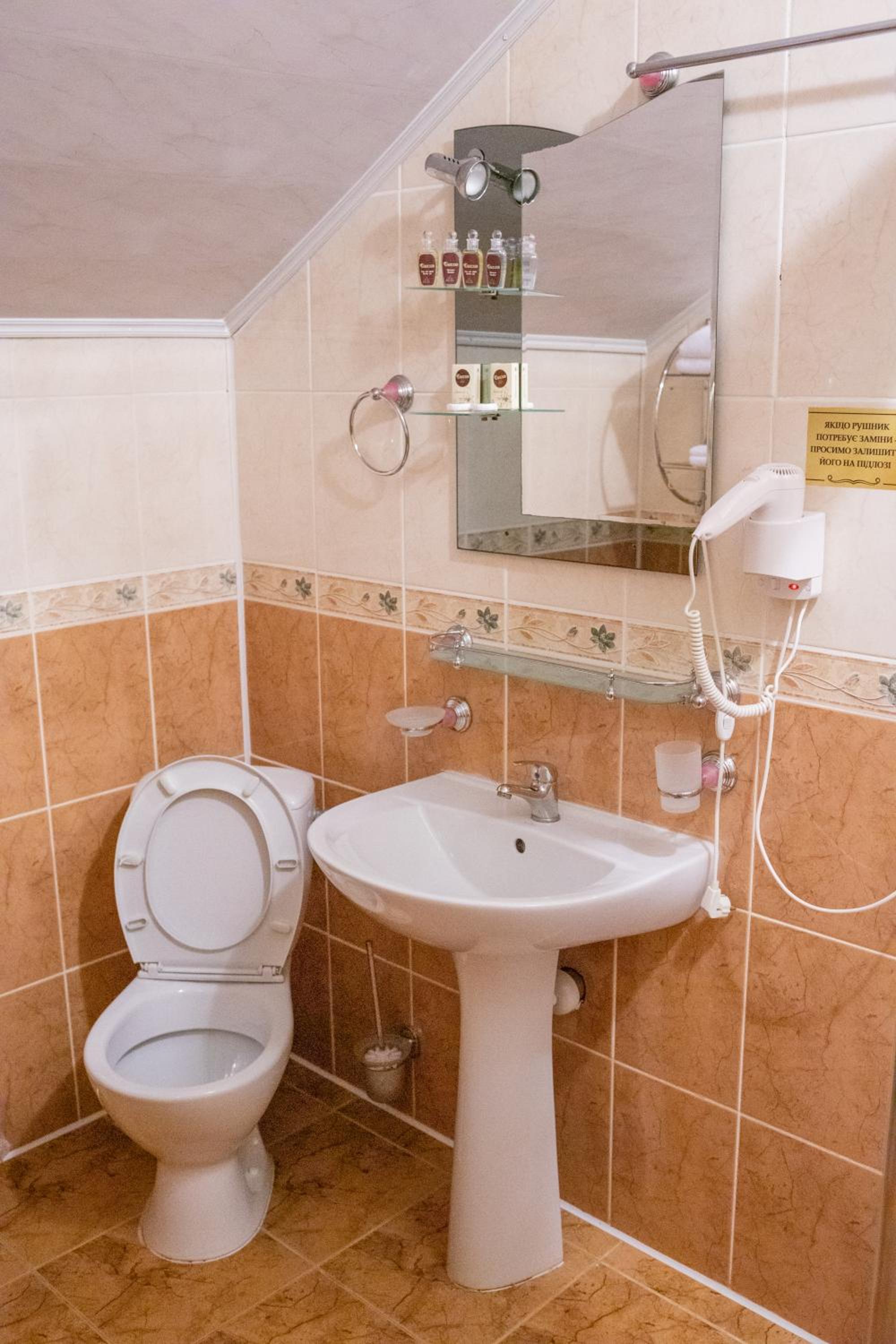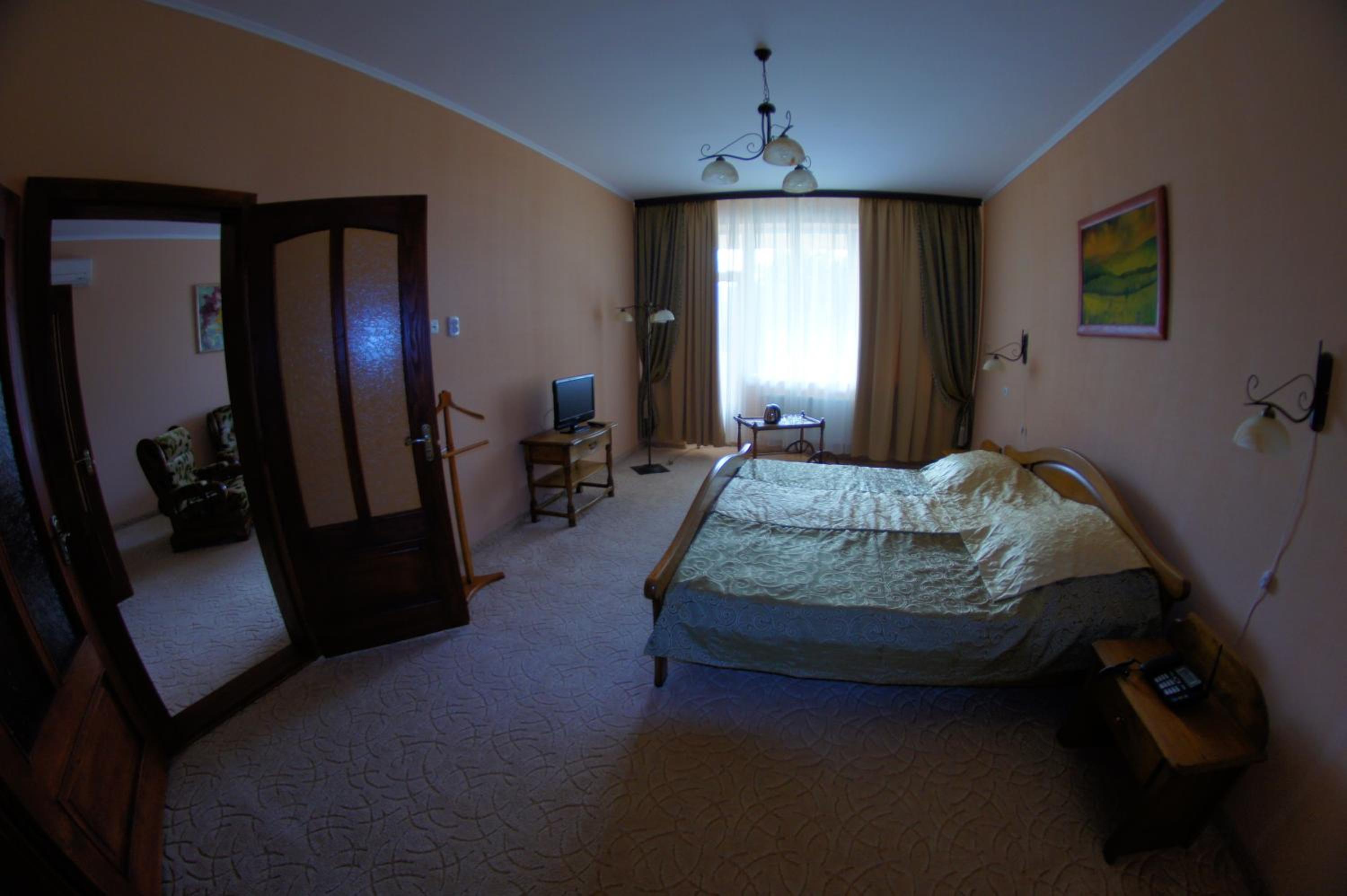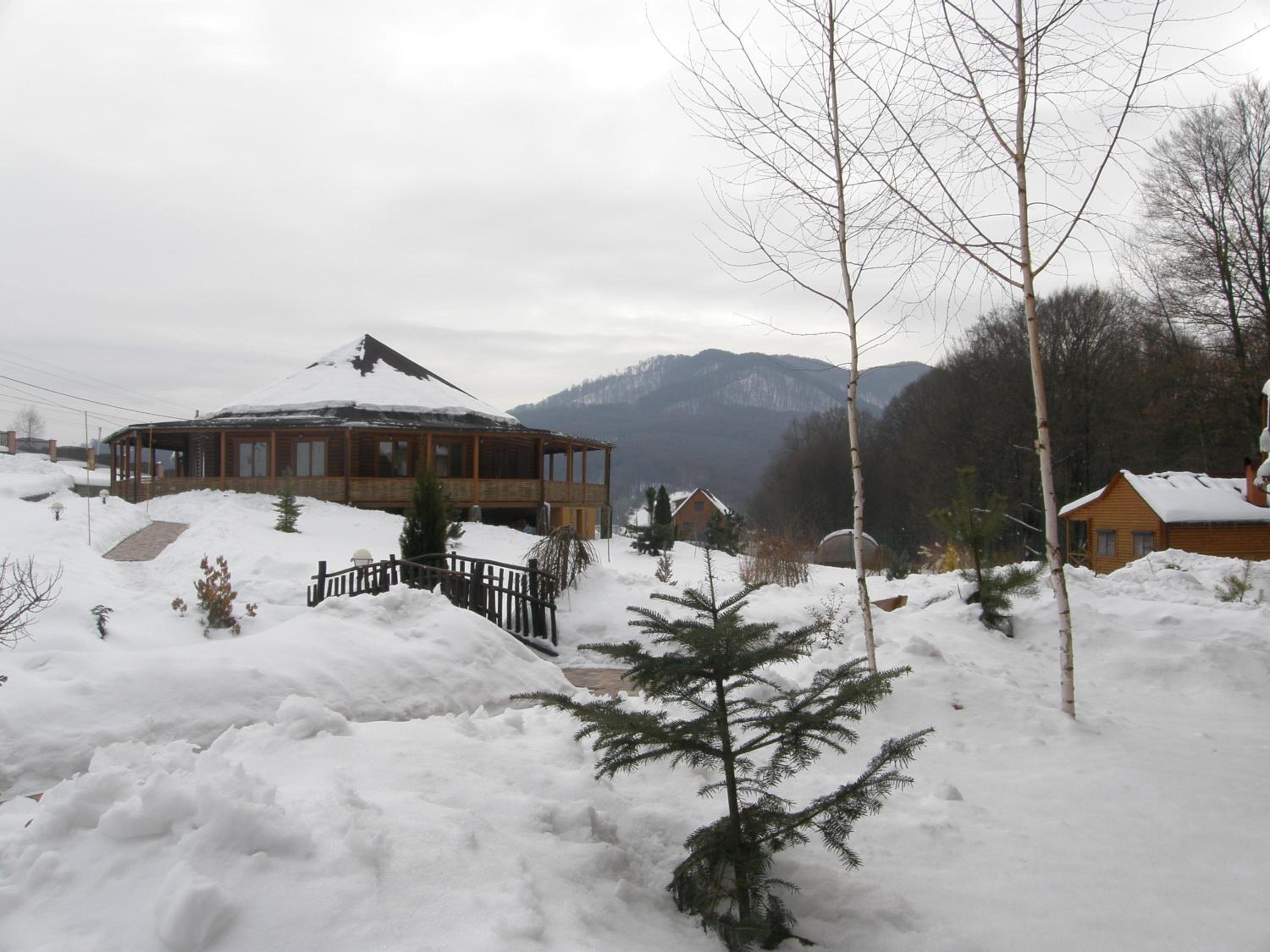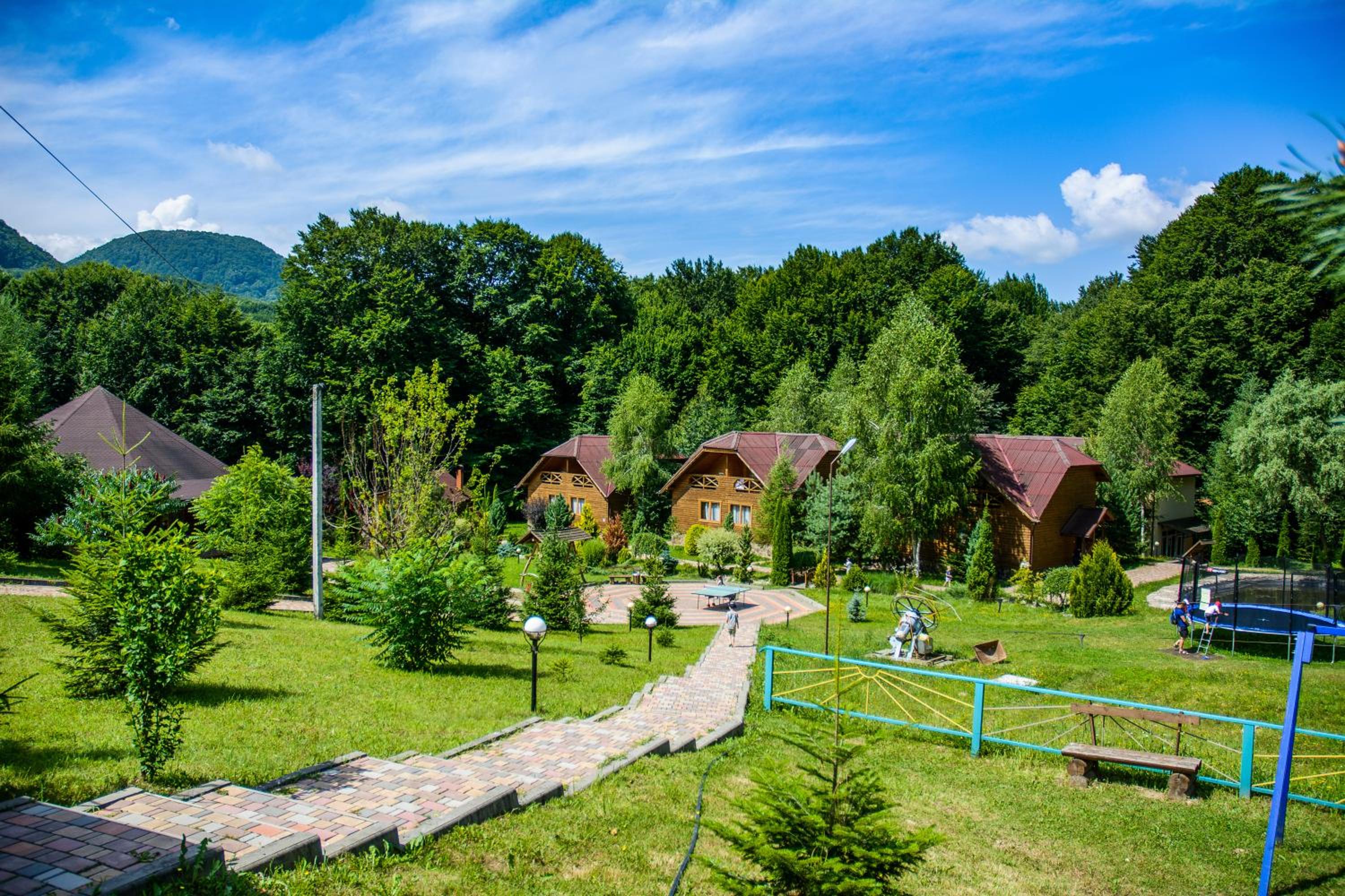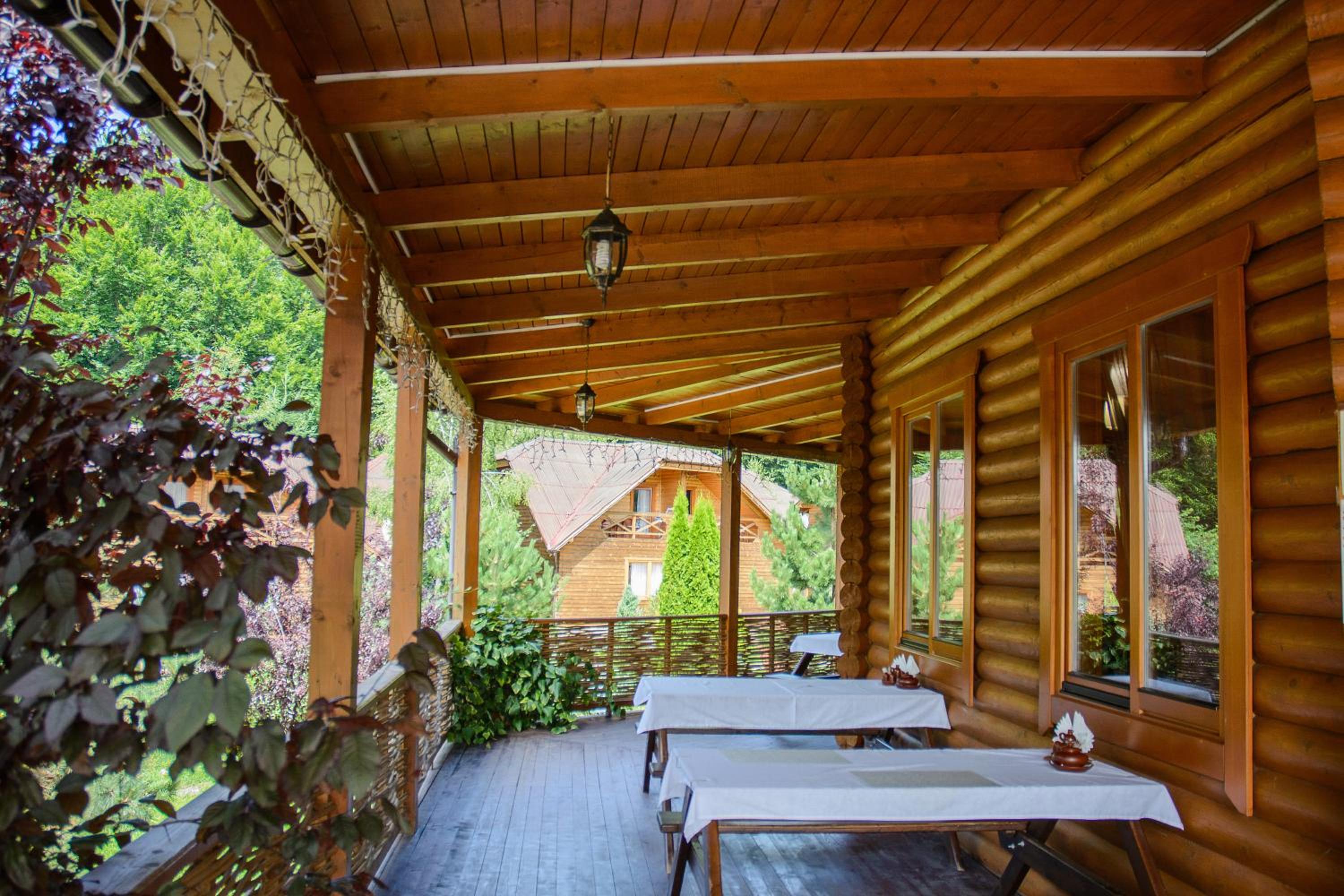 Indulge in a variety of Ukrainian, European, and Carpathian dishes at the on-site restaurant, or unwind in the garden with a children's playground. The shared lounge is perfect for unwinding after a day of exploring.