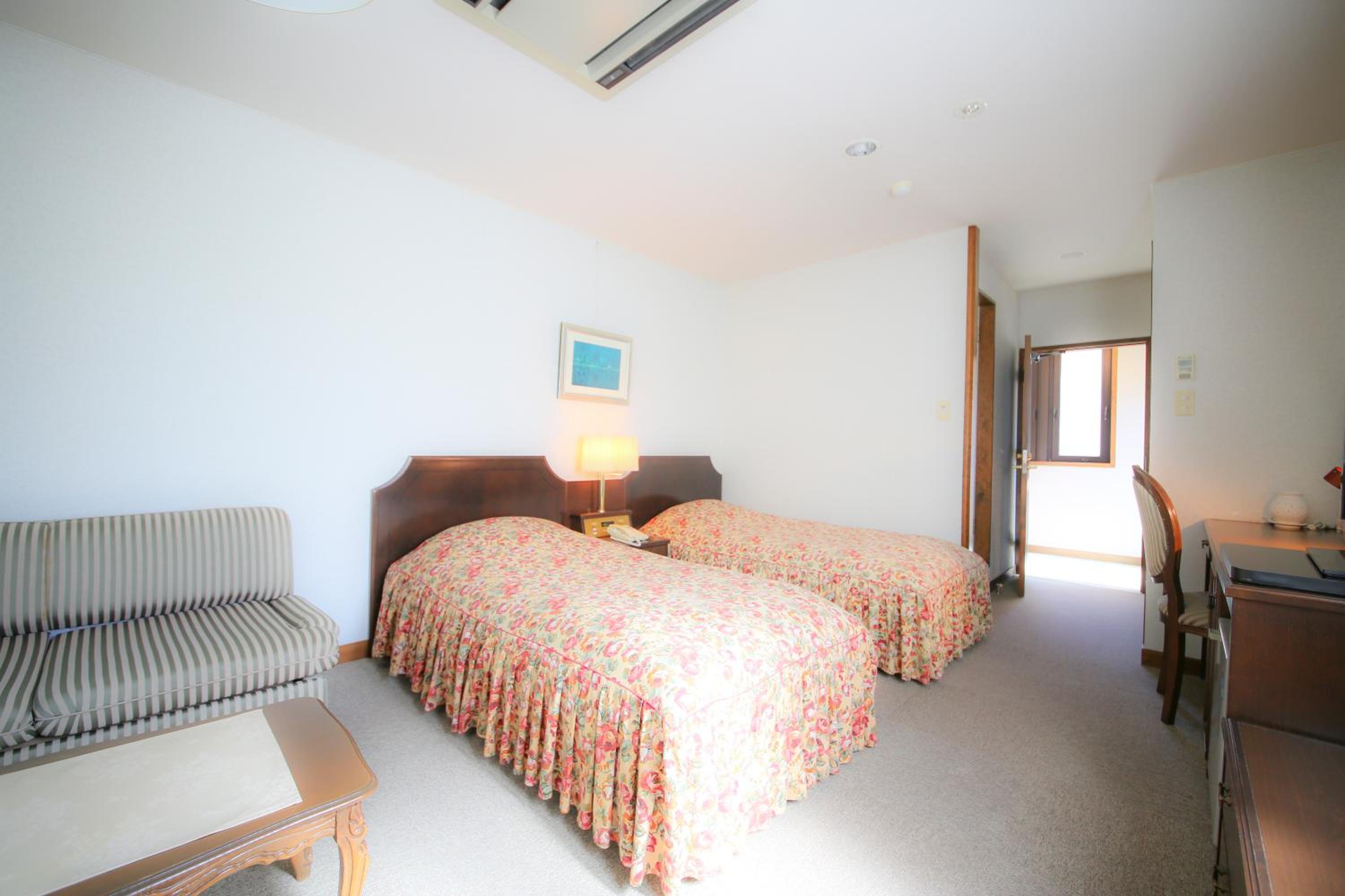 Hotel Soyokaze offers elegantly designed guest rooms with modern amenities such as air conditioning, heating, and flat-screen TVs. The en suite bathrooms are stocked with complimentary toiletries, ensuring a comfortable stay for all guests.