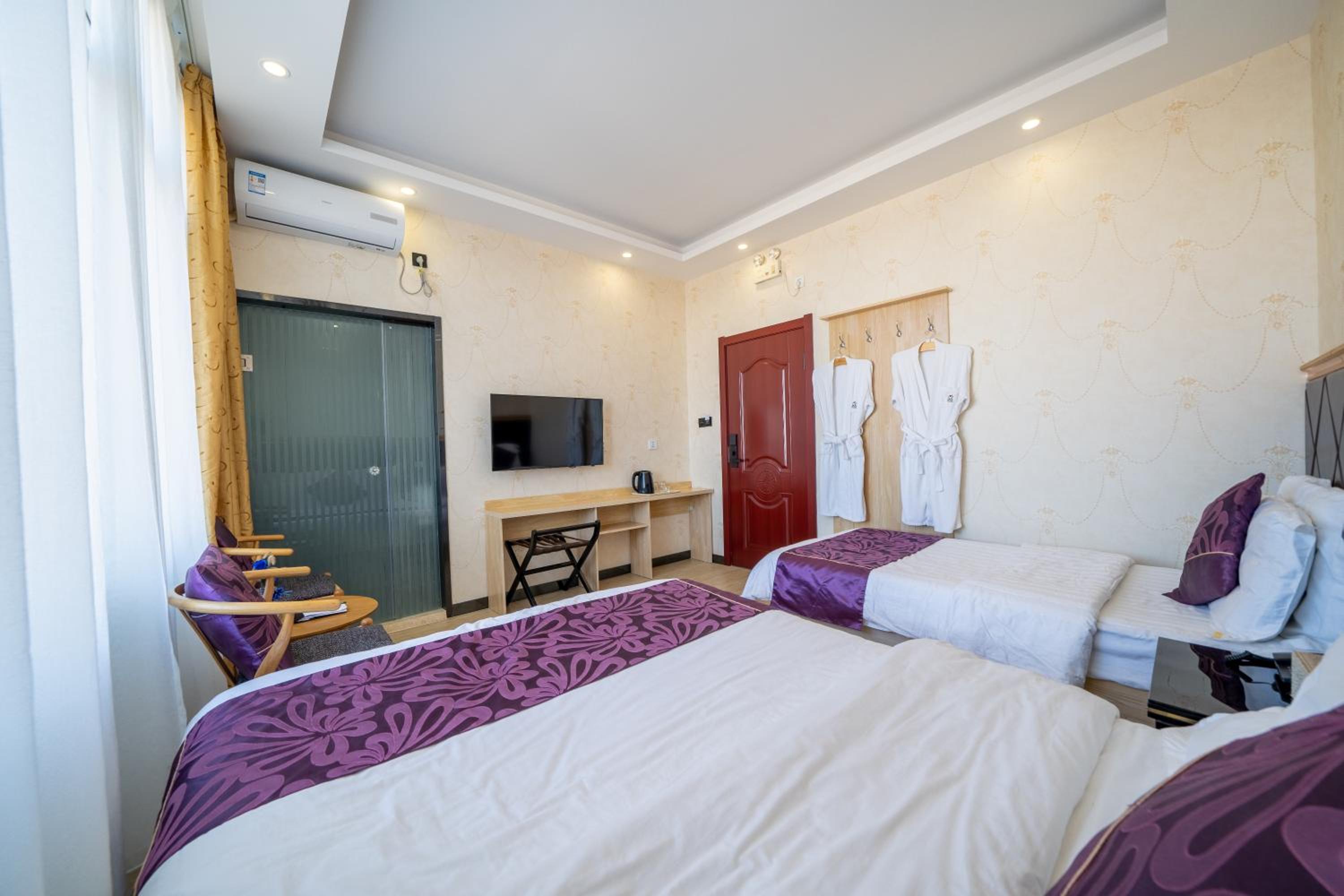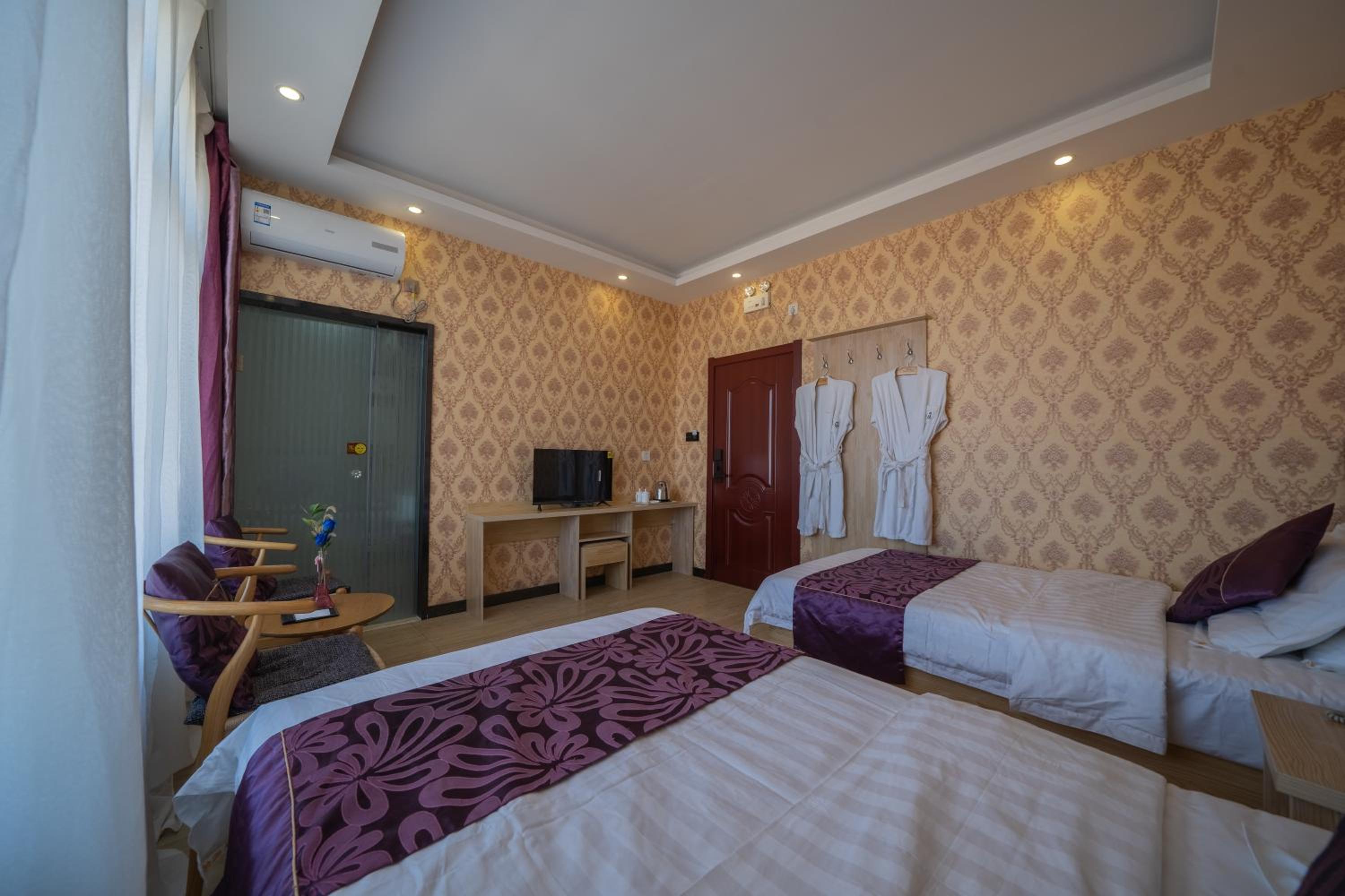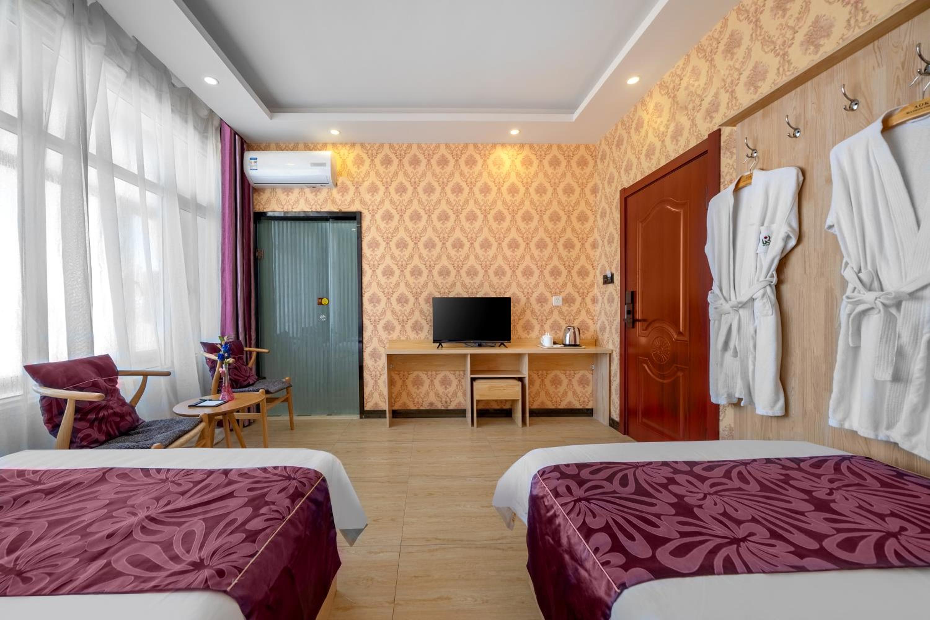 호텔은 공항에서 차로 20~25분 정도 떨어진 시골 마을에 있고, 시내 중심가는 아니에요. 인프라가 발달하지 않은 외곽 지역인데, 이 마을에는 비슷한 미니 호텔들이 수십 개 모여 있어요. 특별할 건 없지만, 중국 시골 지역 특유의 분위기를 느끼기에는 충분히 현지스럽습니다.