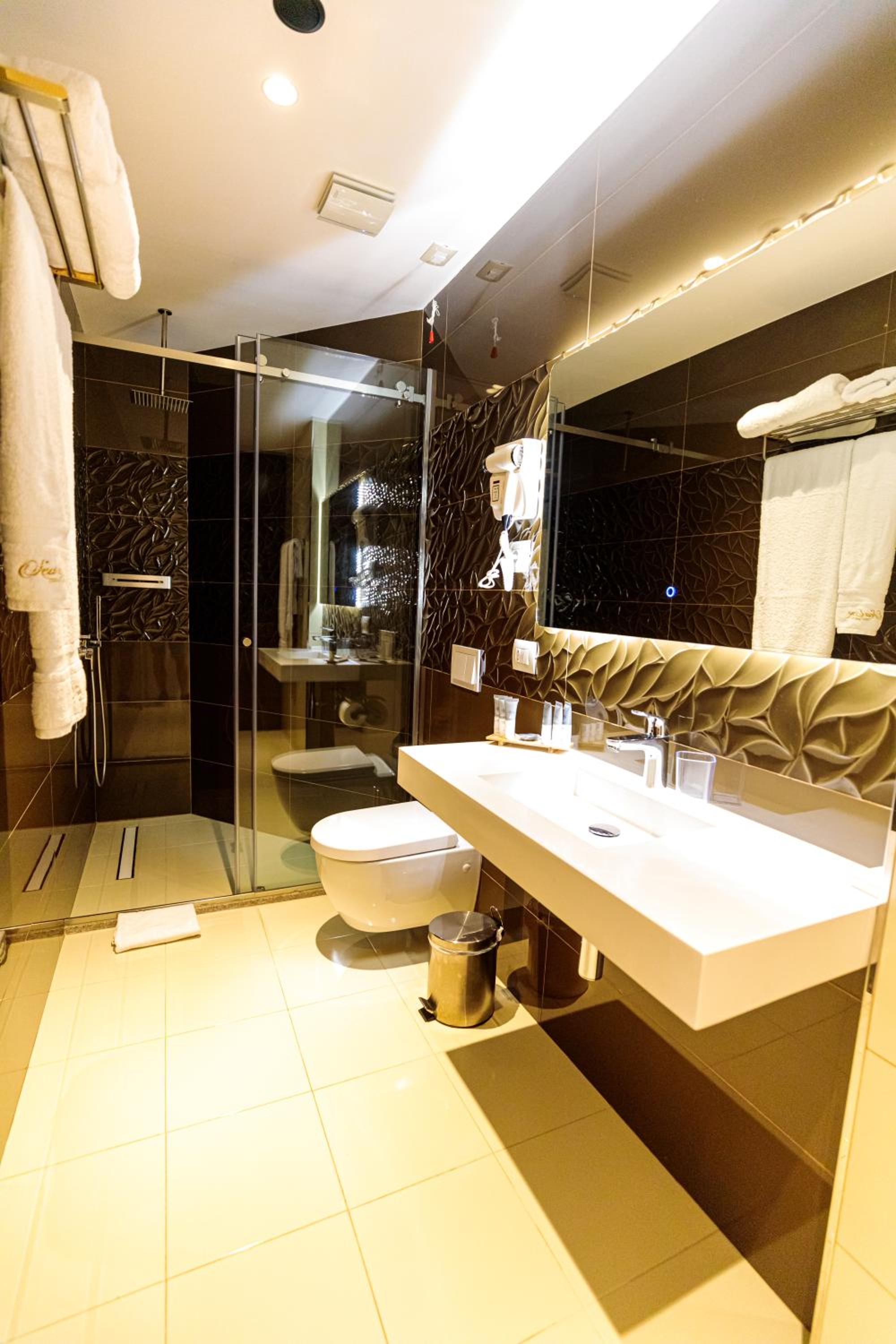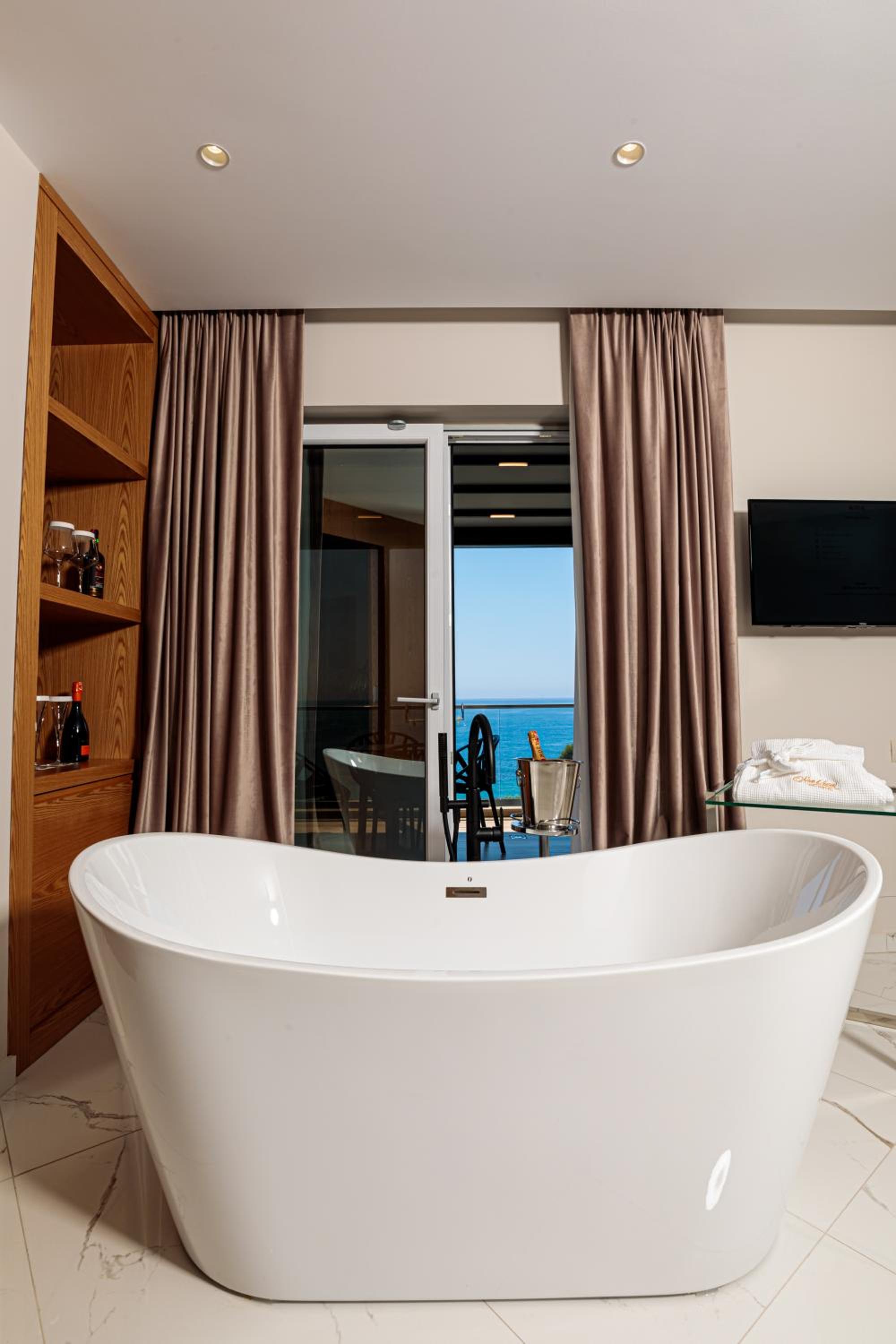Guests can enjoy the convenience of room service, a 24-hour front desk, and secure luggage storage. Each room is thoughtfully equipped with a desk, safety deposit box, and a flat-screen TV. Select rooms feature balconies overlooking the sea, providing a perfect spot to unwind.