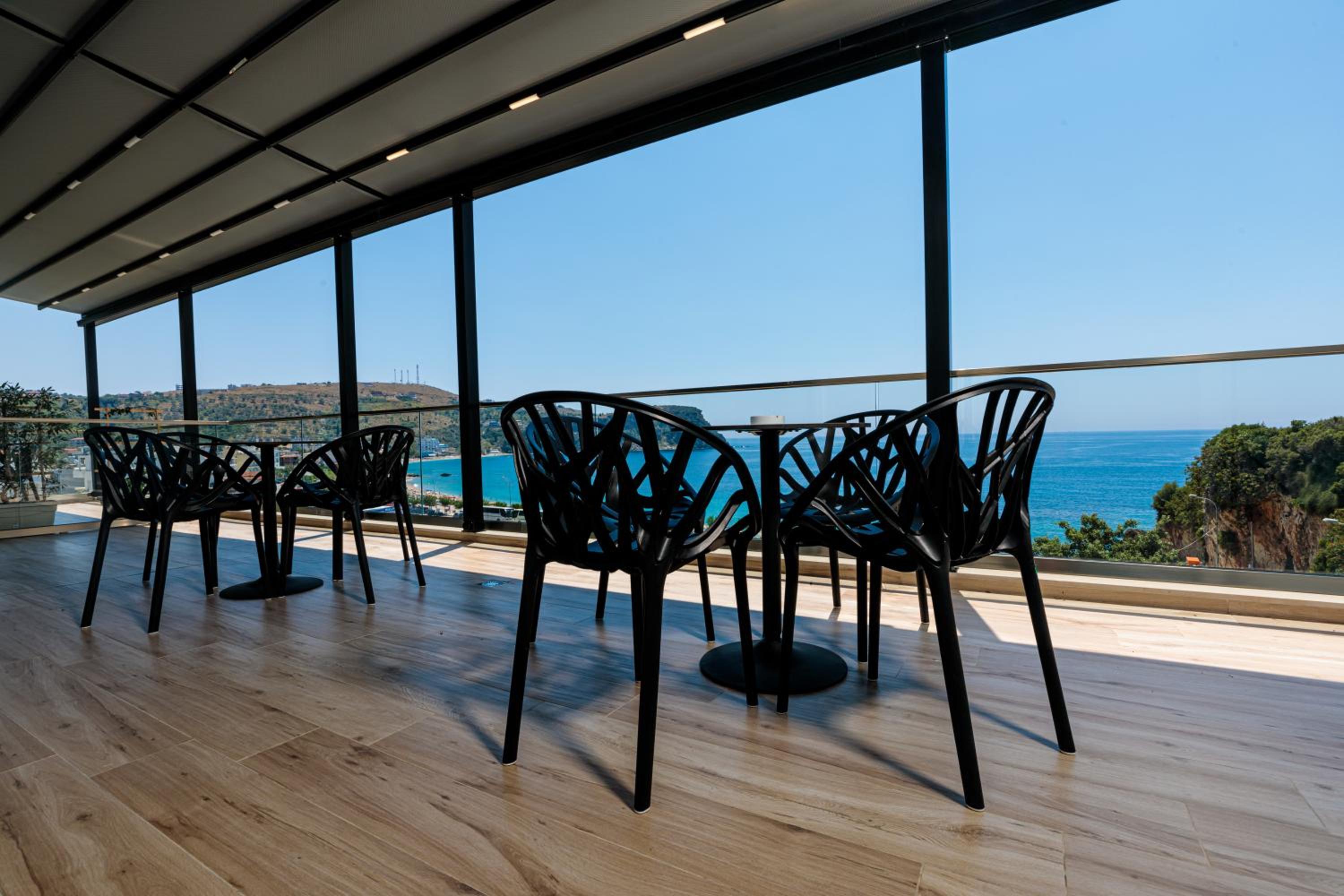 Geweldig hotel, met afstand de mooiste van onze 6 locaties in Albanië. Luxe kamer met balkon, heerlijk zwembad, direct aan het strand met eigen strandbedden, zeer uitgebreid ontbijt inclusief zoet en uitermate vriendelijk personeel die klaarstaat. Je eigen drankje meenemen vanaf de bar is niet de bedoeling, ze brengen het graag naar je bedje aan het zwembad. Wanneer dit hotel nog beschikbaarheid heeft: niet twijfelen! Himare is ook top, met een leuke en gezellige boulevard.