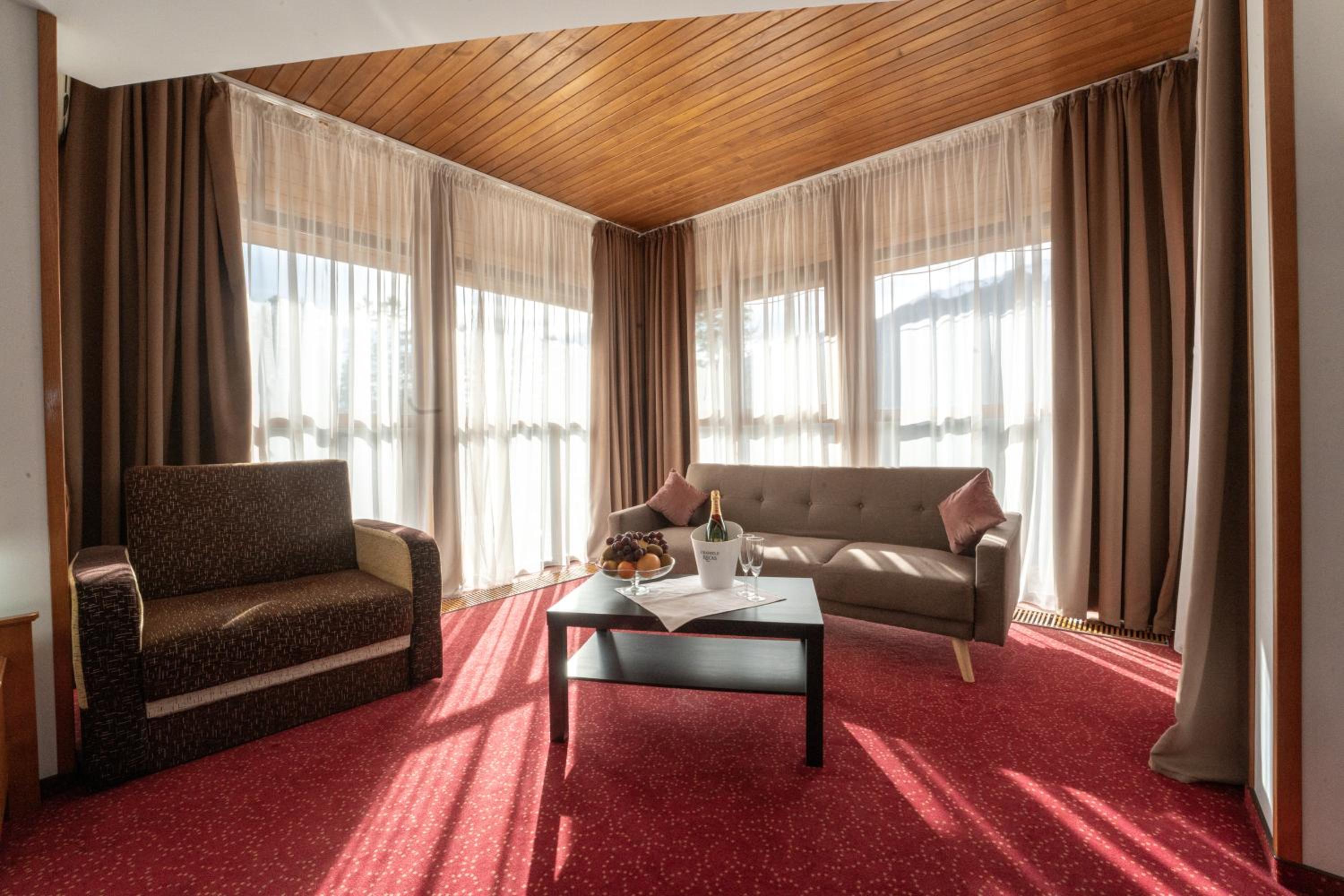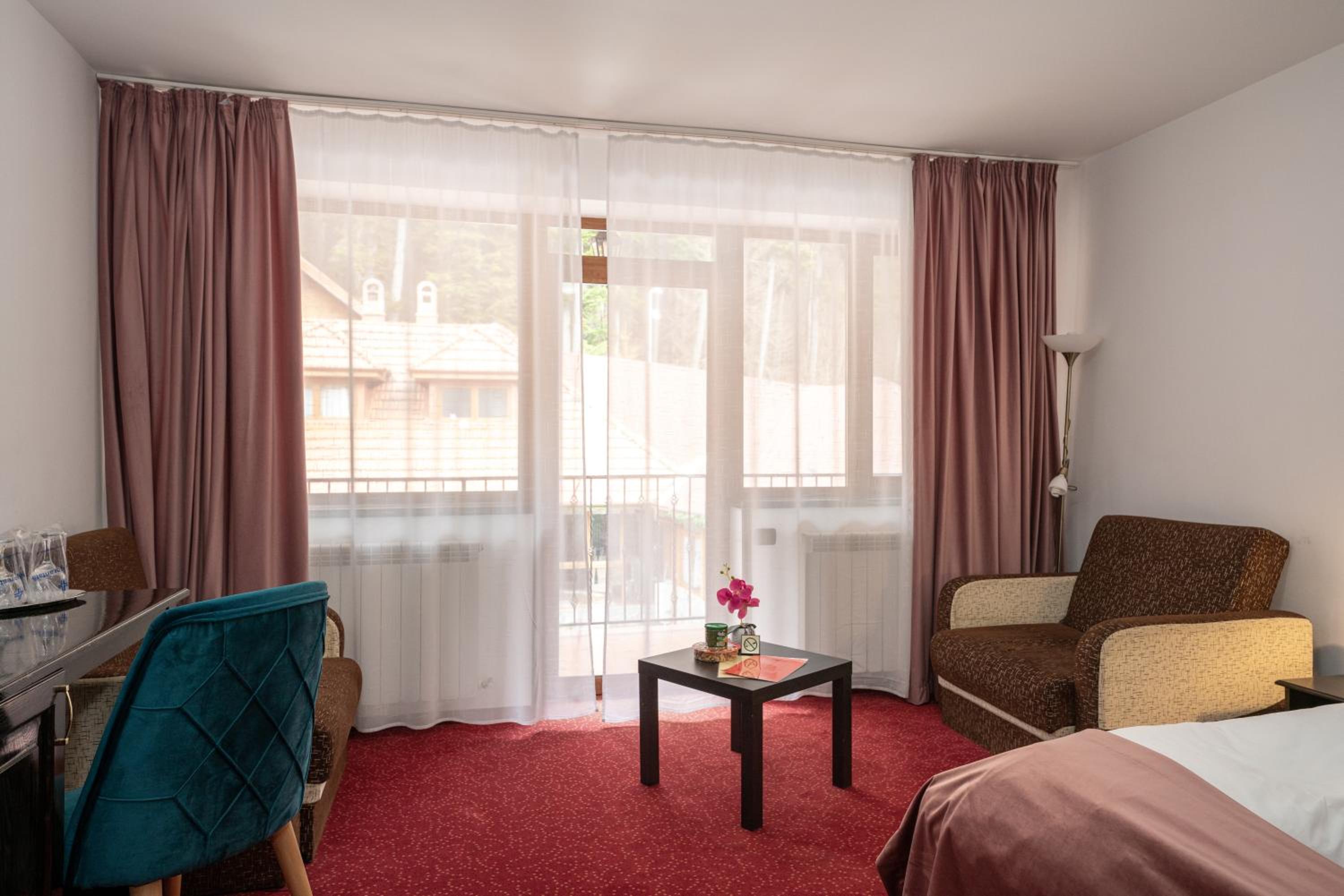 Hotel Cumpatu in Sinaia offers stunning views of the Bucegi Mountains or the surrounding forests. Conveniently located just 3 km away from popular attractions like the castles of Peles and Pelisor, the cable car, and the gondola, guests can easily explore the Dorului Valley, Carp Valley, and Sun Valley Ski Slopes.
