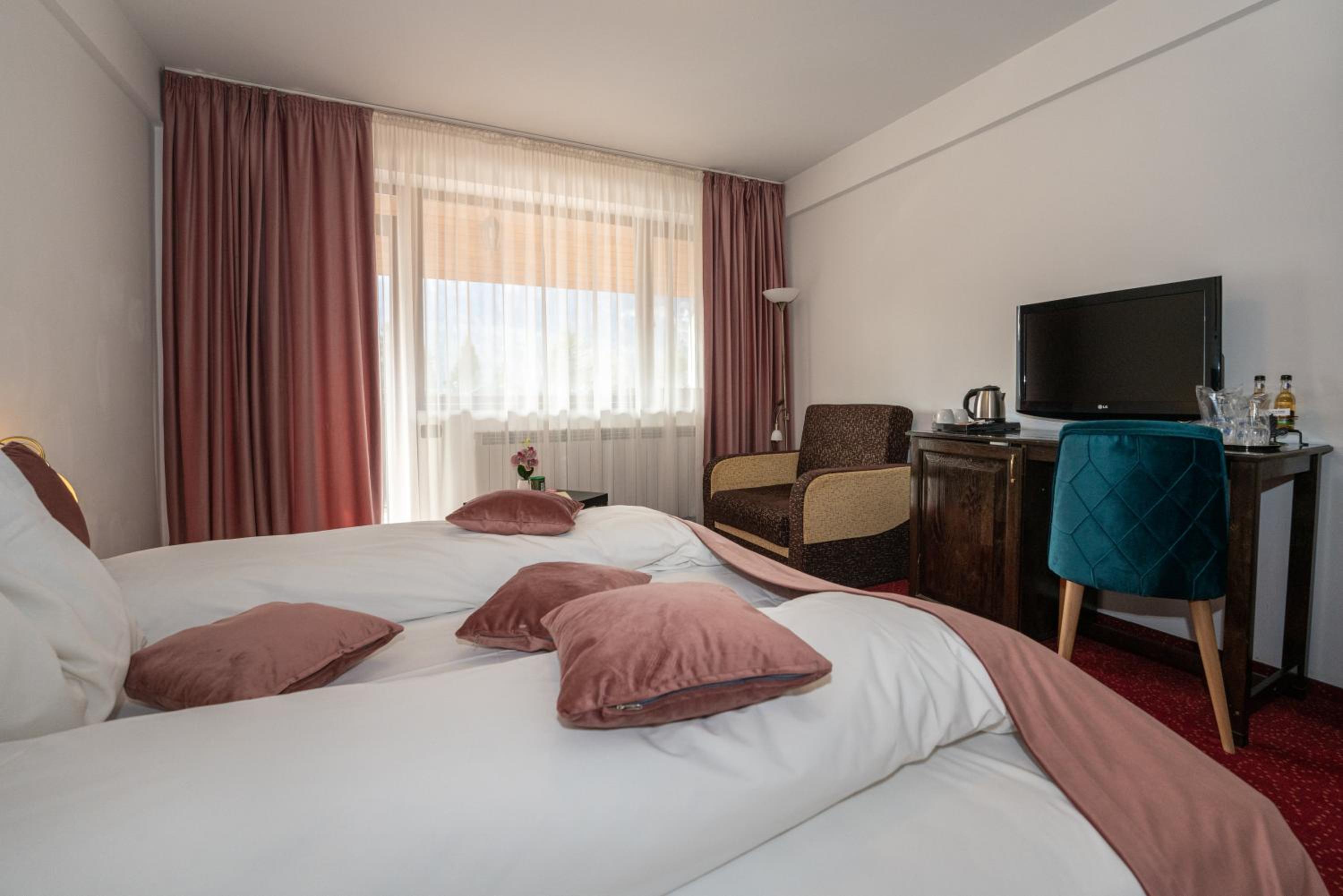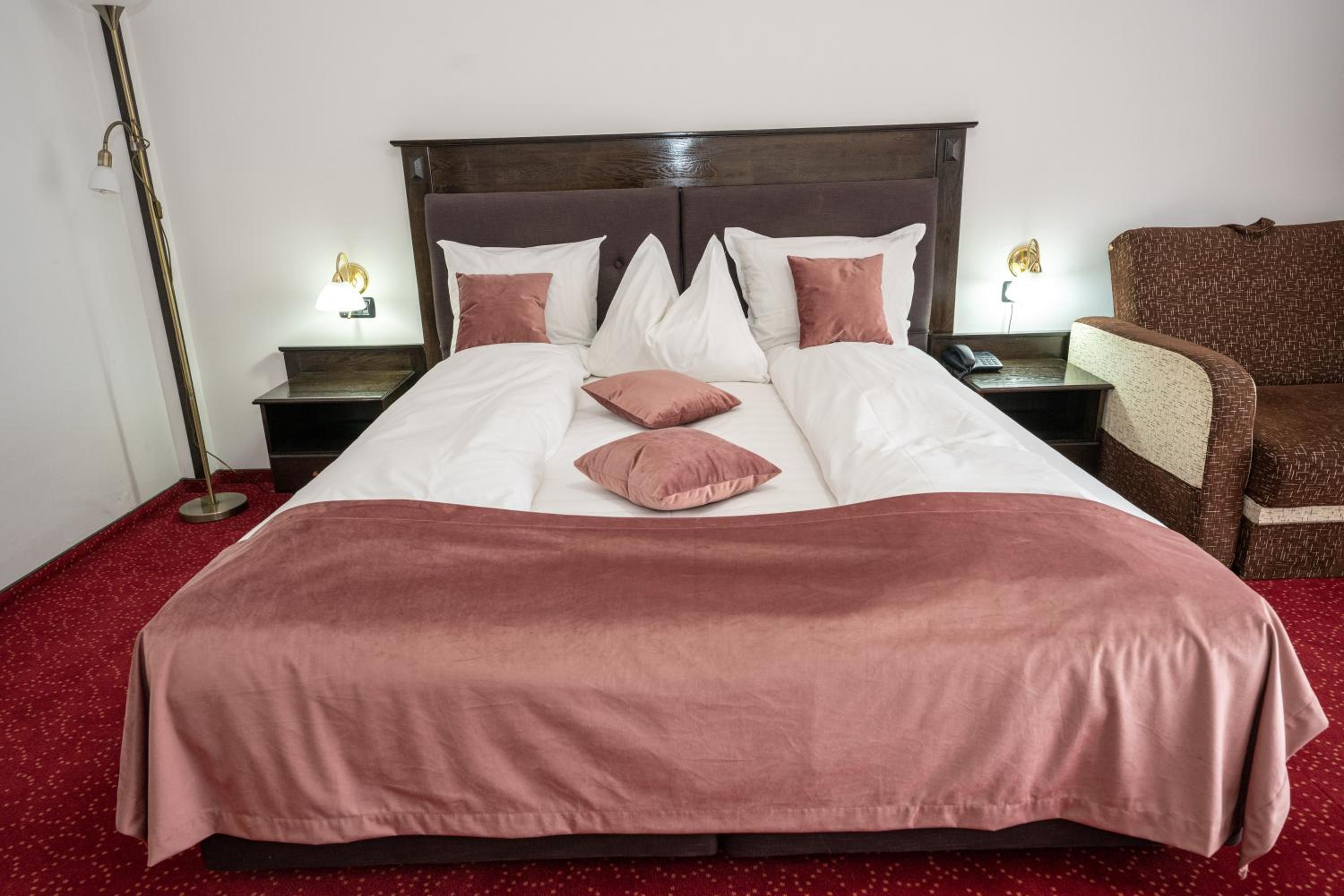 Each room at Hotel Cumpatu features modern amenities including a flat-screen cable TV, minibar, and safe. Guests can relax in the luxurious private bathrooms equipped with bathrobes, slippers, and complimentary toiletries. The on-site restaurant serves a variety of Romanian and international dishes, while a buffet breakfast is offered every morning.