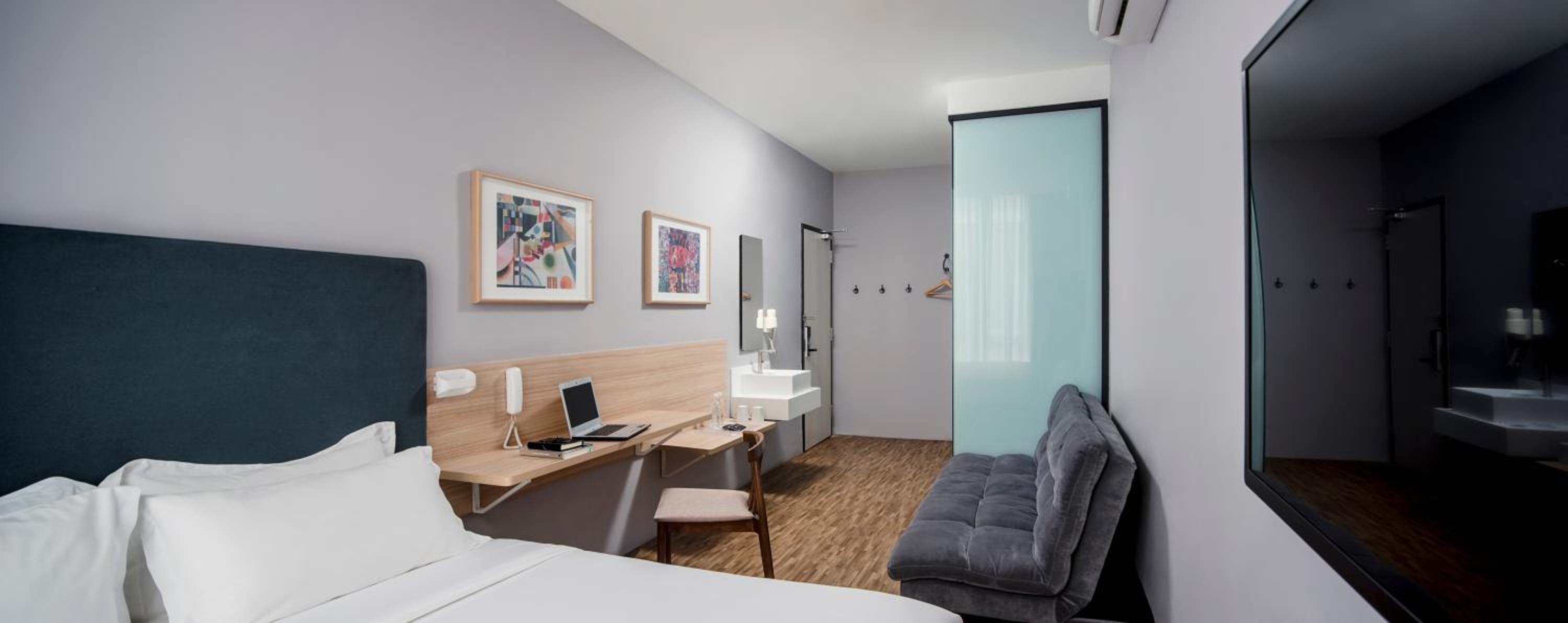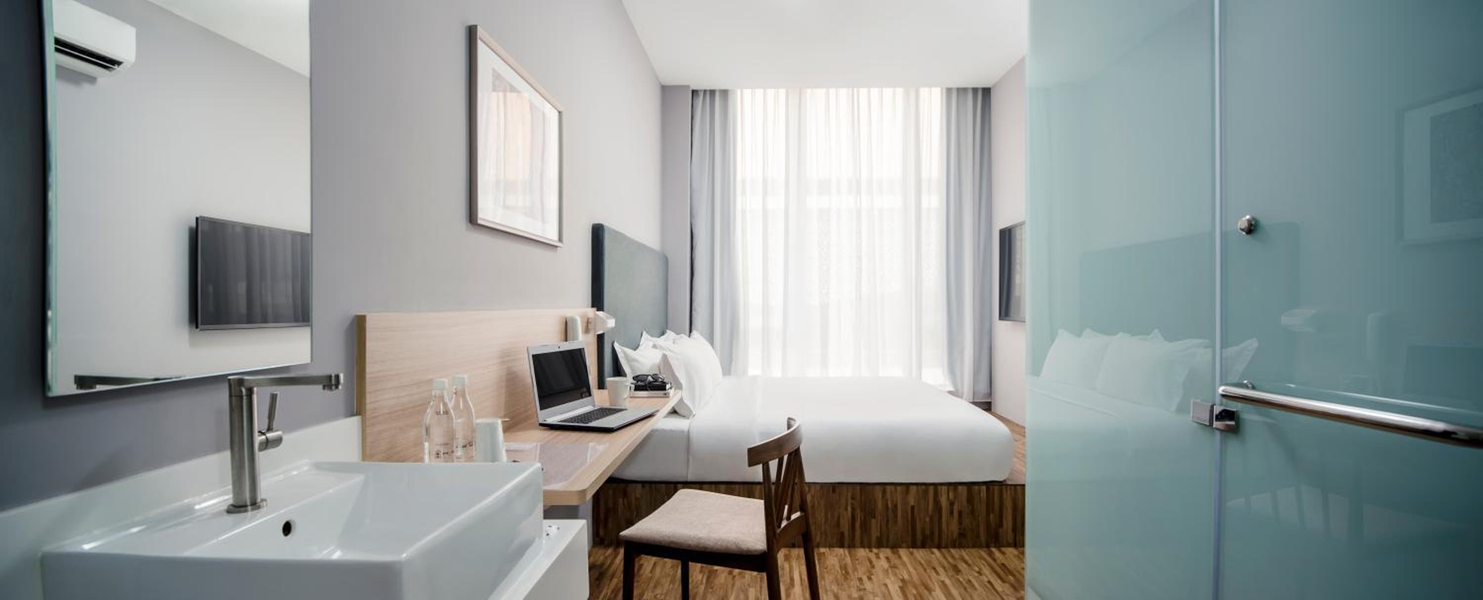 Hako Hotel offers micro-accommodations with air-conditioned rooms and flat-screen TVs for a comfortable stay.