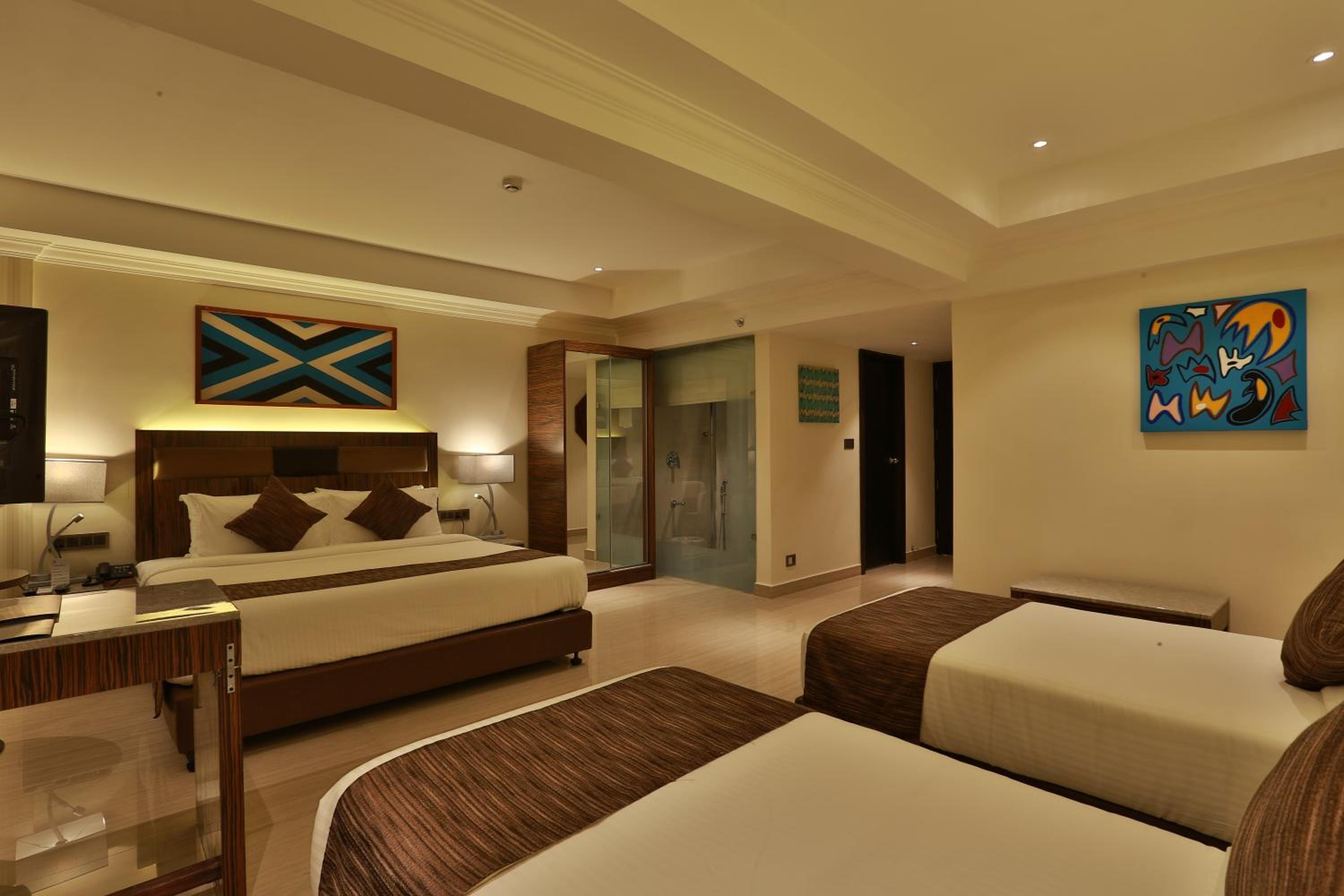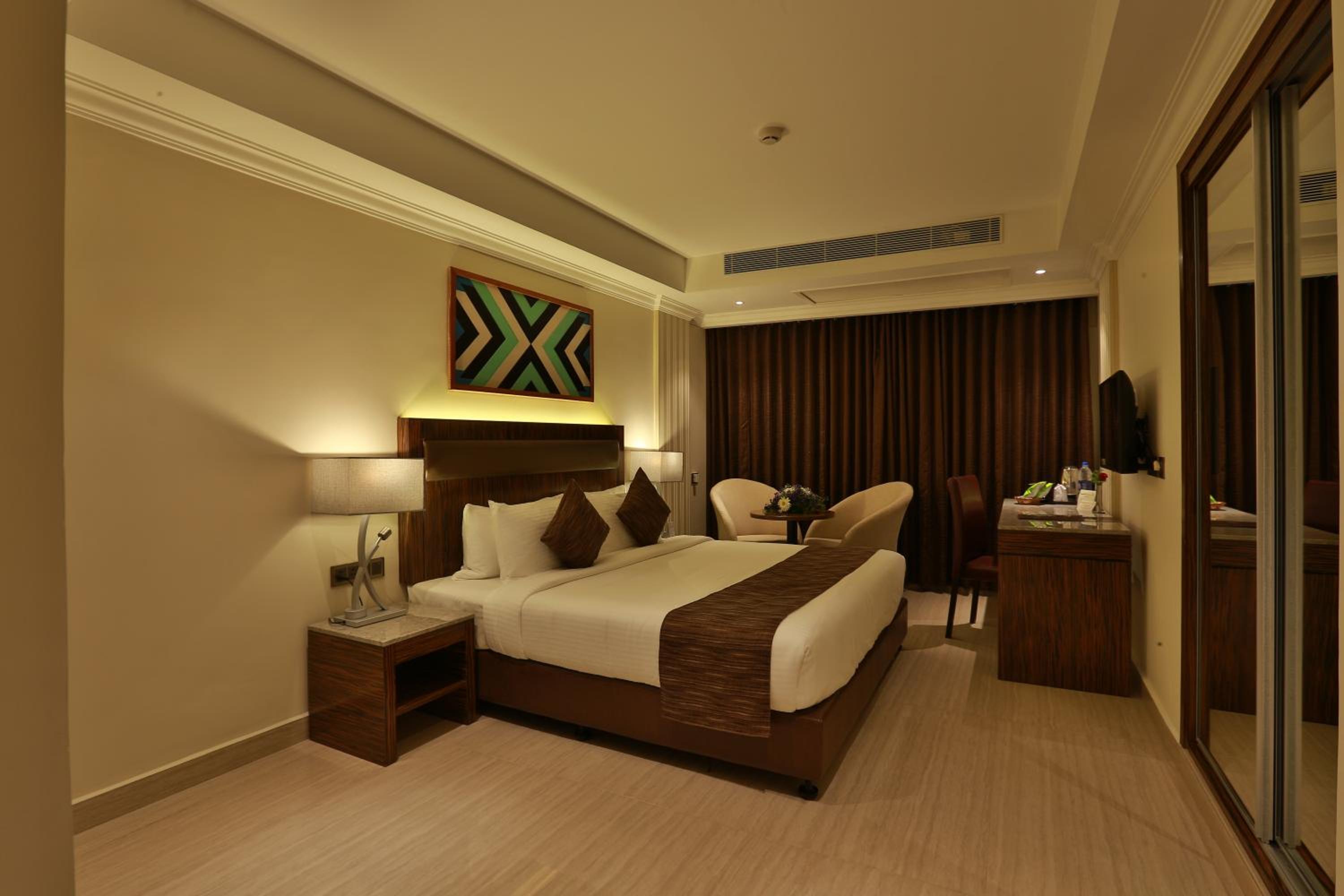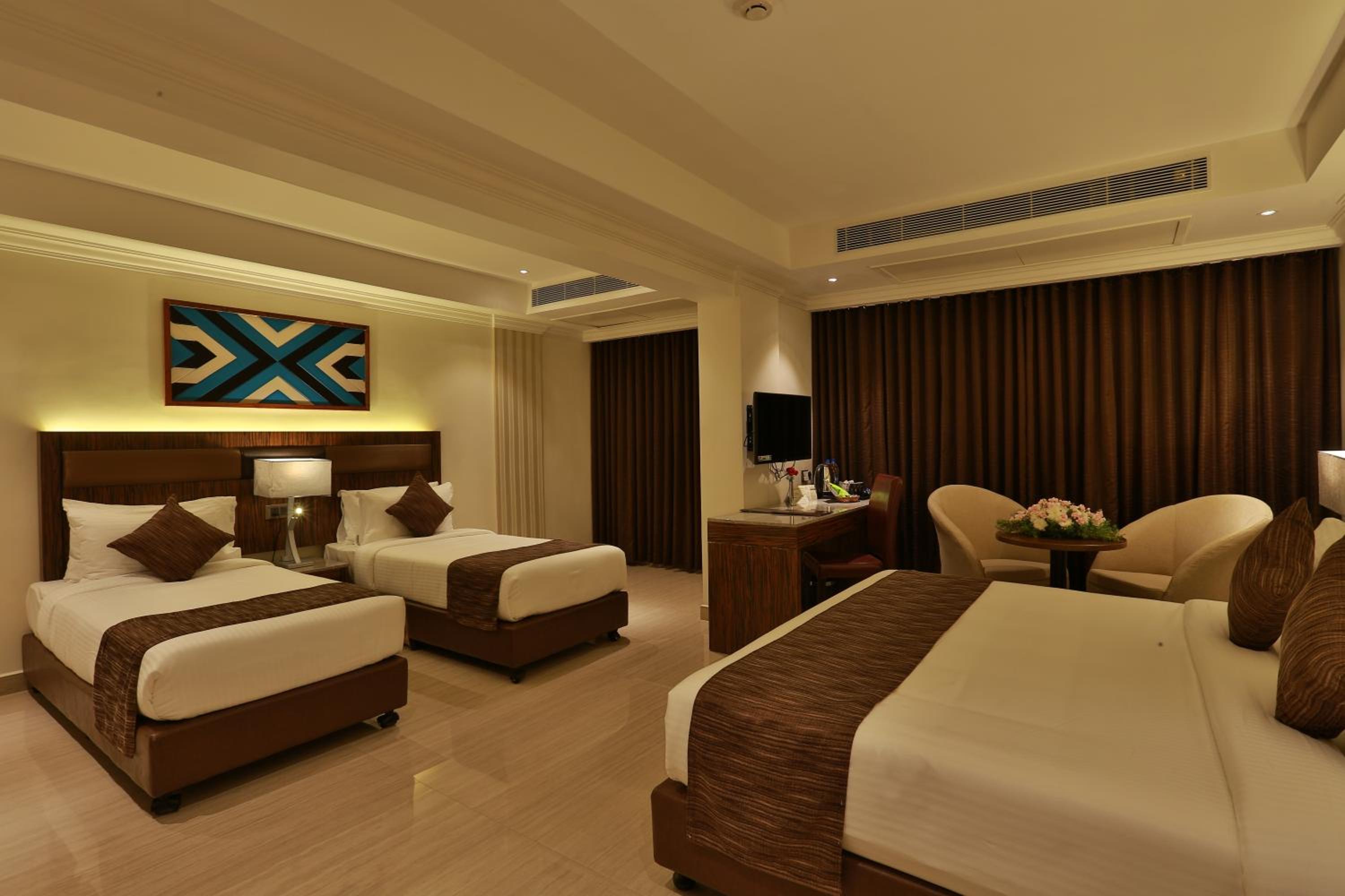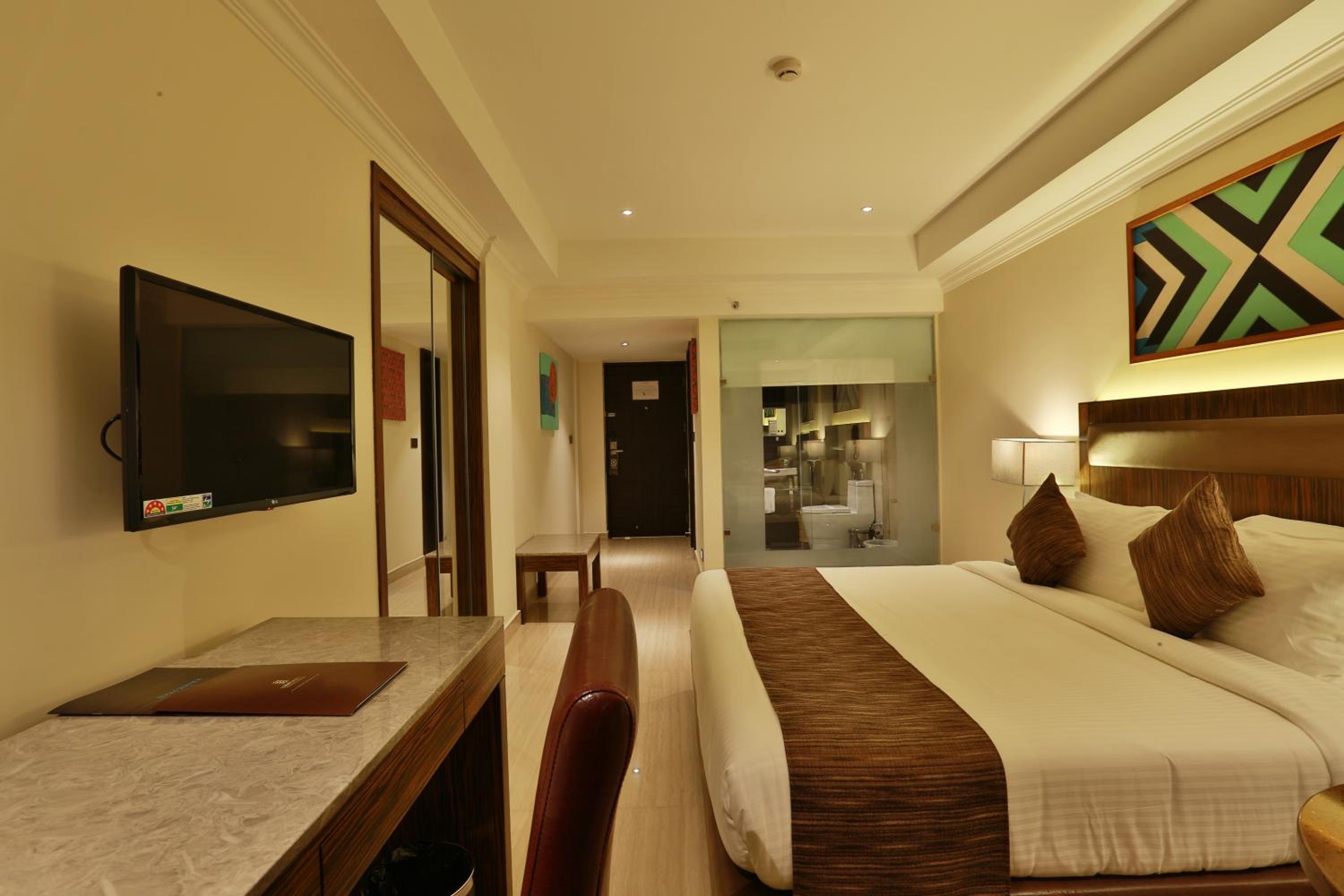 Hotel Luminara in Cochin offers air-conditioned rooms with modern amenities like a coffee machine, minibar, and flat-screen TV. Some rooms even boast stunning city views, ensuring a comfortable and memorable stay.