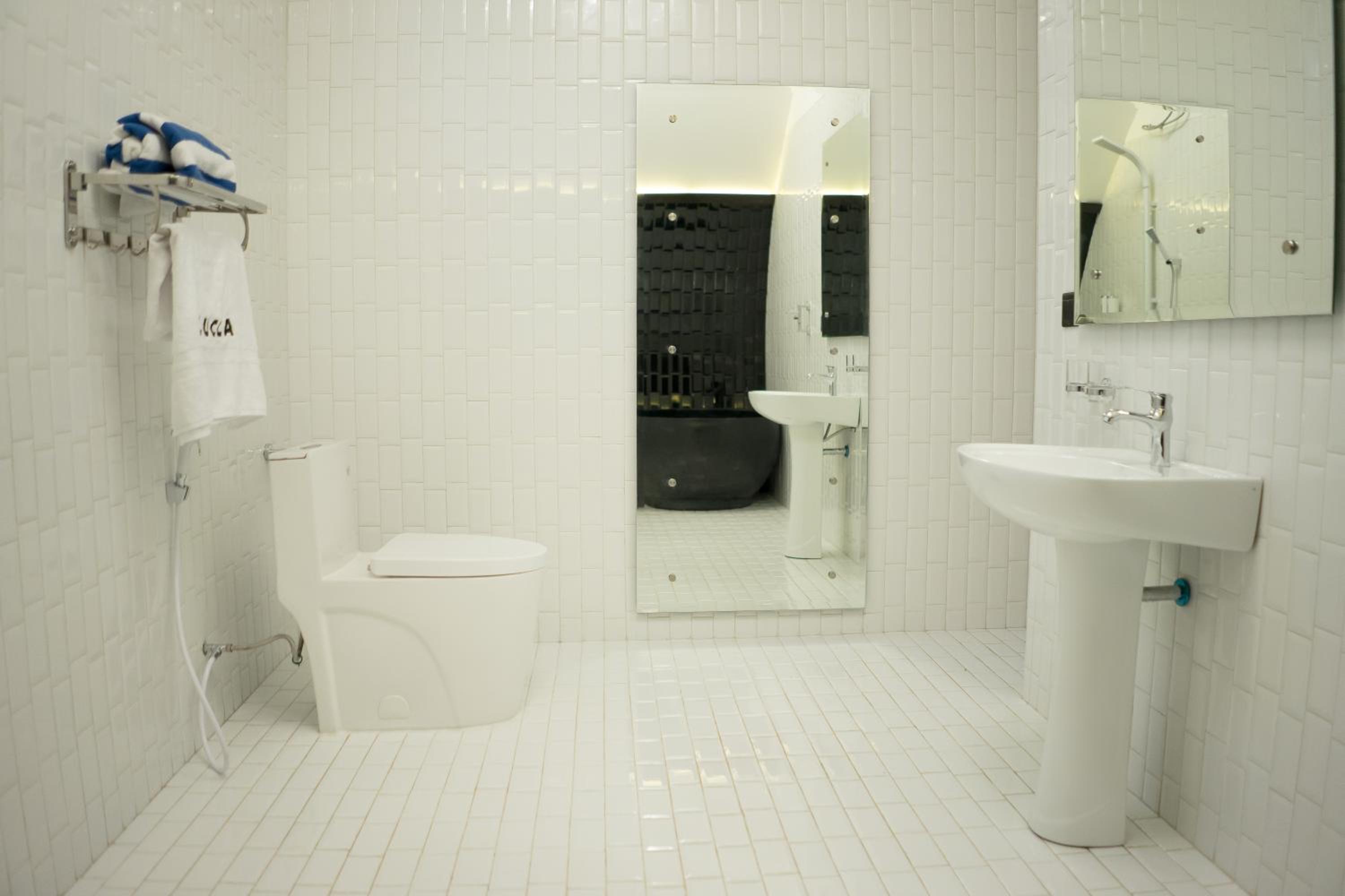 Very clean and comfortable rooms though bathrooms smelled a bit funny. Lovely kitchen pool and terrace overlooking the bay. Very nice and convenient spot to grab ferry to Kurimanjawa. 10 min away.