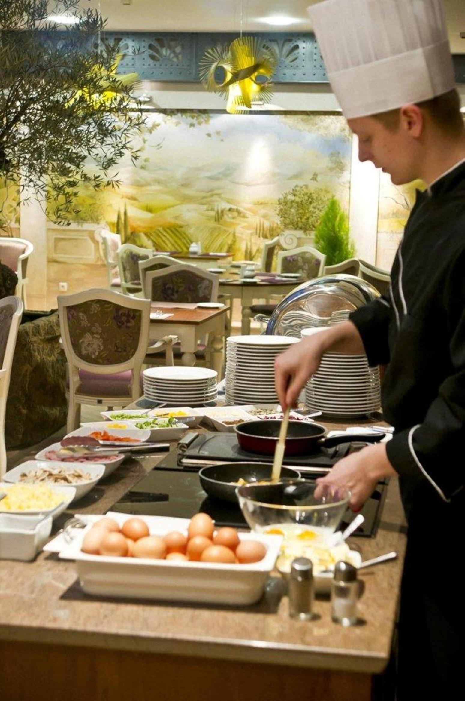 Śniadanie różnorodne i smaczne, w tym możliwość zamówienia dania u kucharza.