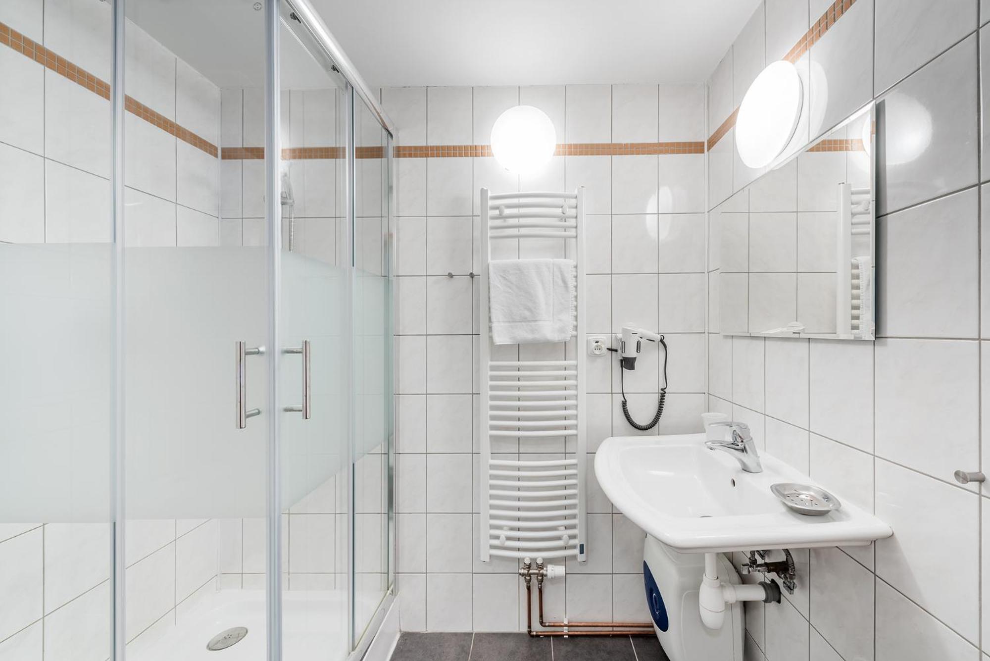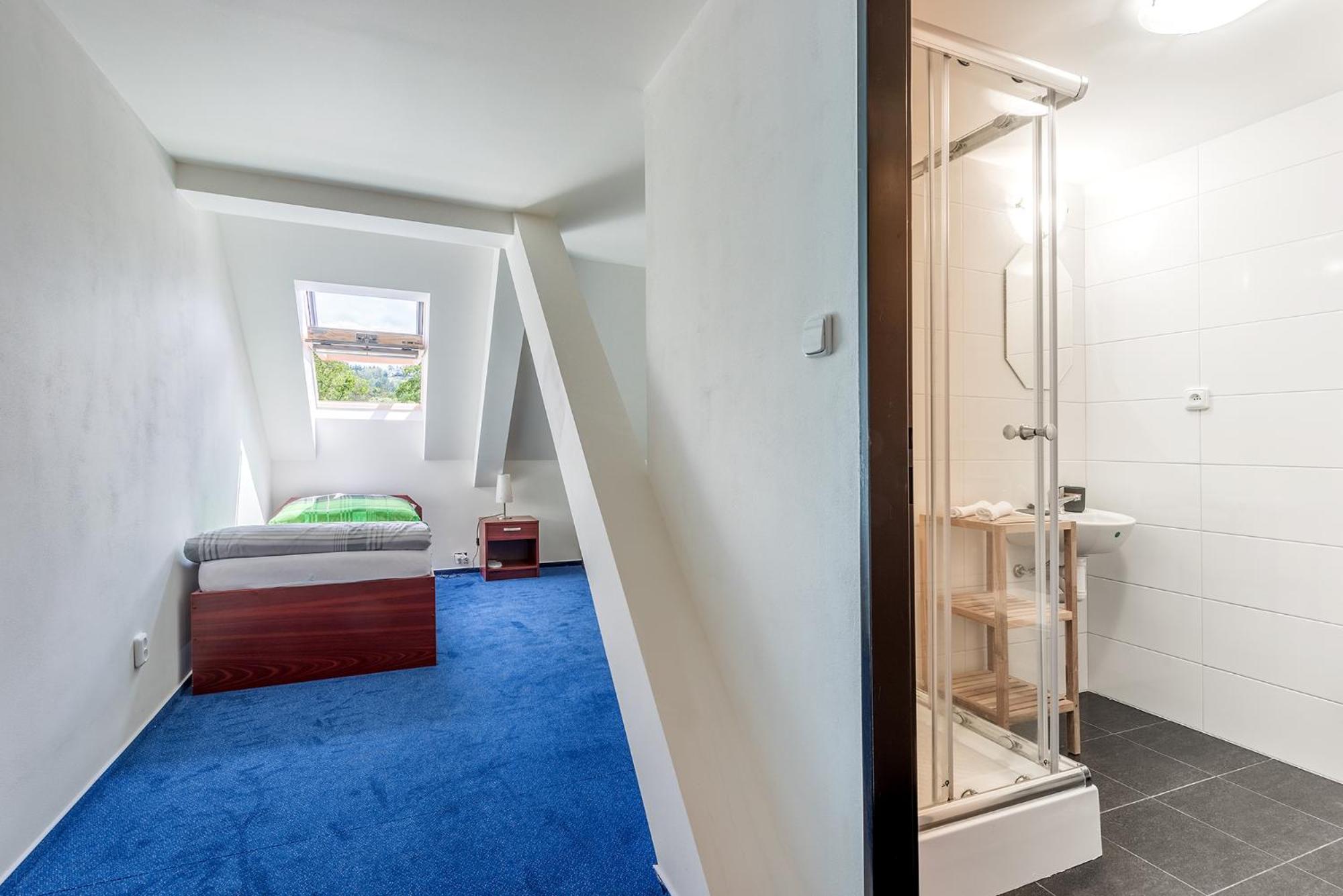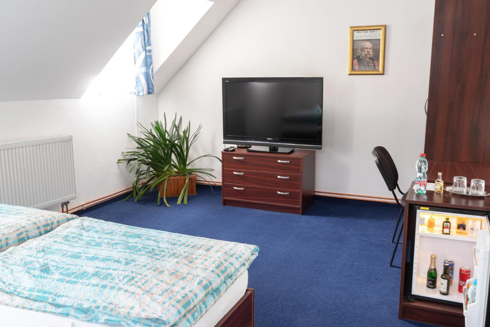 Spacious, clean room with a big bathroom and bathtub. Delicious scrambled eggs for a good breakfast. The hotel has a nice location by the river close to the castle and with a brewery pub Šalanda next door.