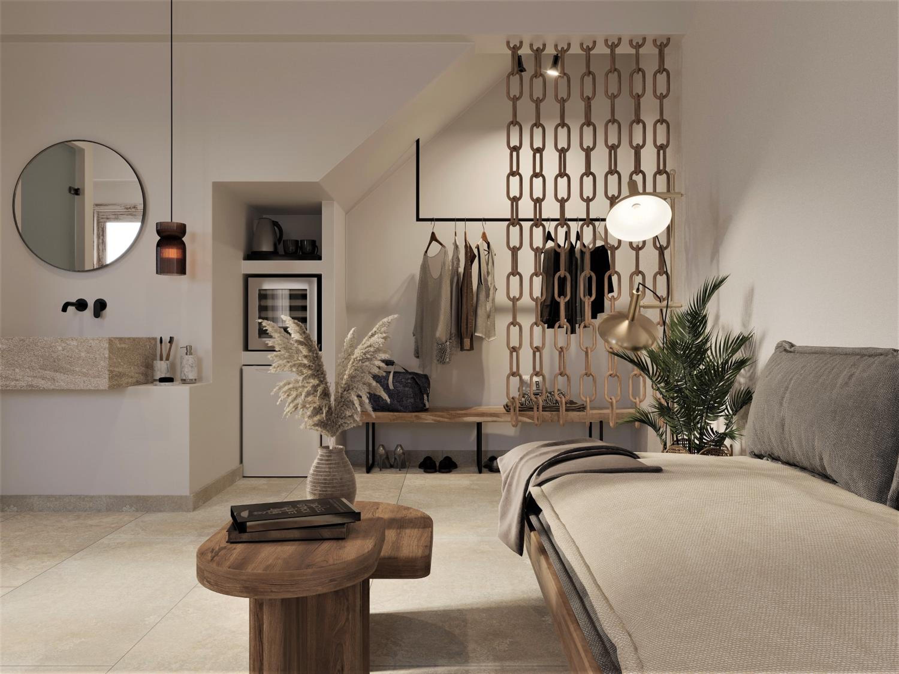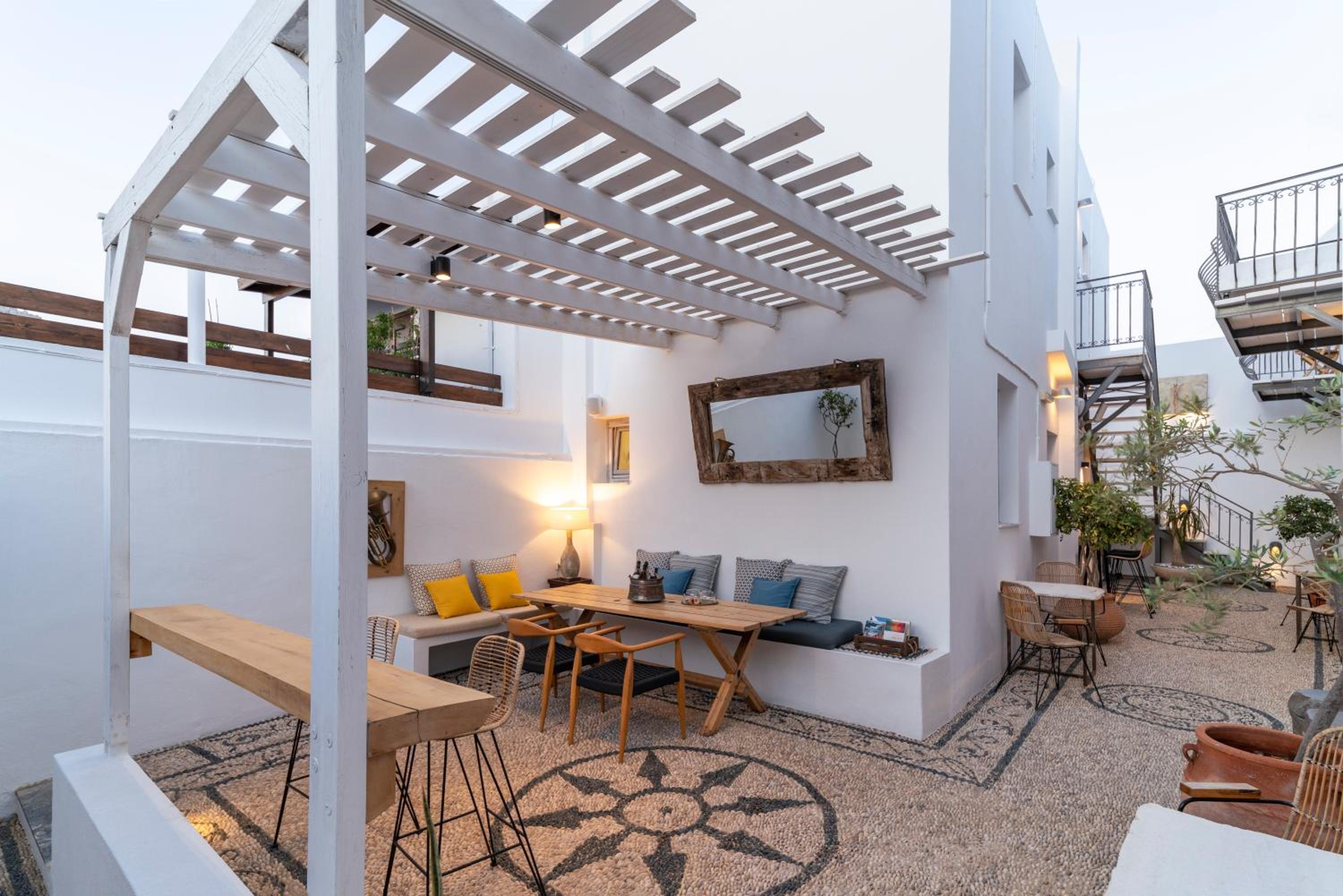 Enjoy a tranquil stay in Lindos, just a short walk from the beach at F Charm all Suites - Adults Only. Indulge in a daily breakfast spread of homemade breads and pastries, and unwind with cold beers and aperitivo in the picturesque courtyard every afternoon.