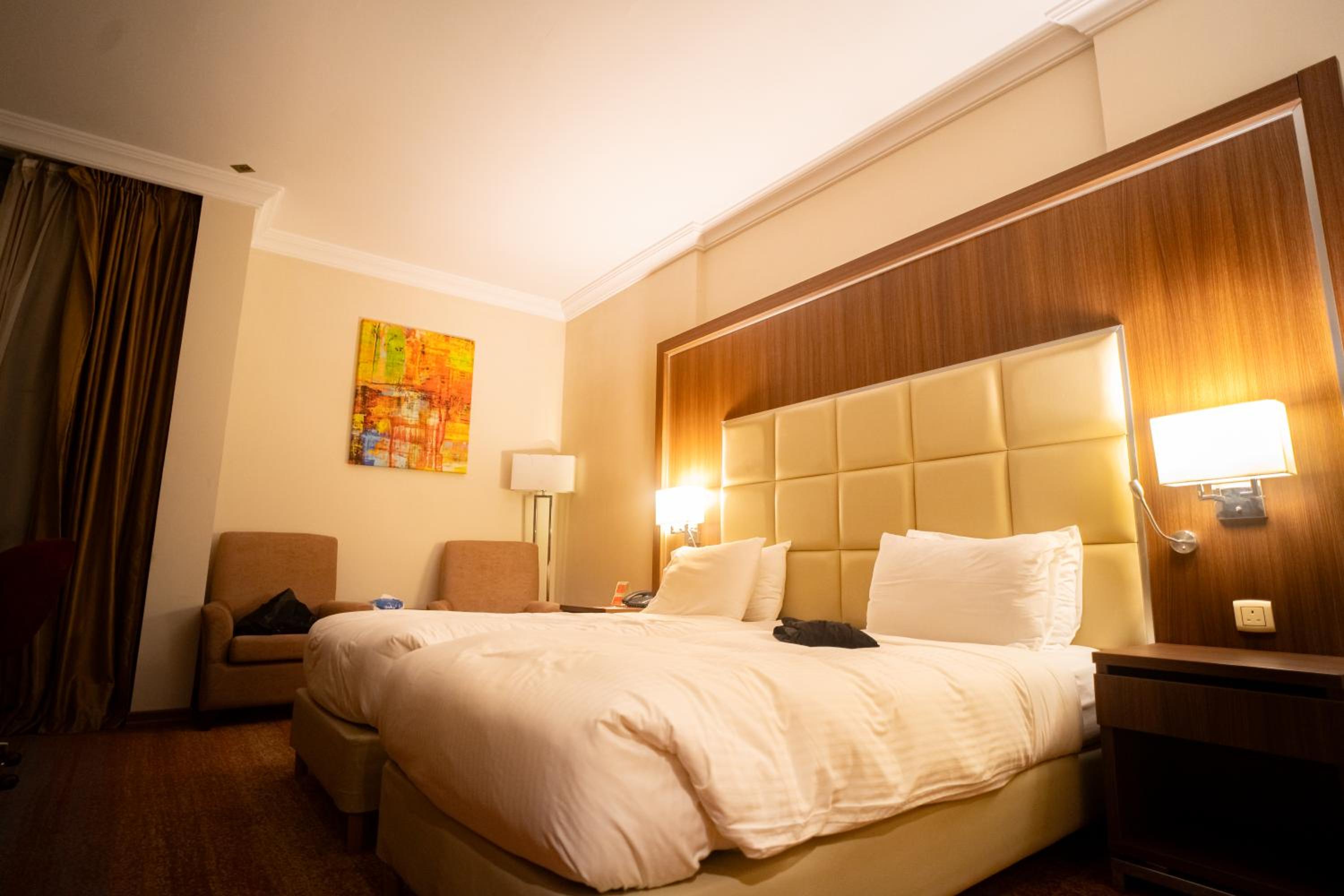 Indulge in elegantly decorated rooms adorned with rich fabrics and ornate furnishings at Emaar Grand Hotel. Enjoy modern amenities including satellite TV channels, air conditioning, and more for a comfortable stay.