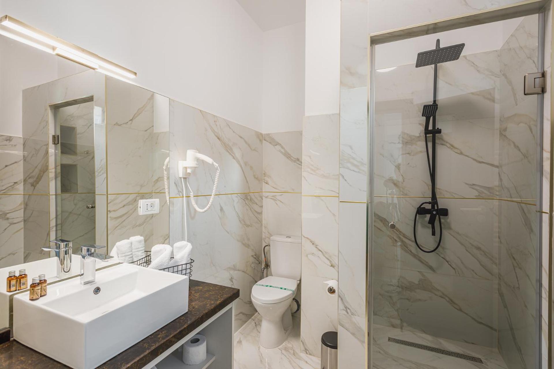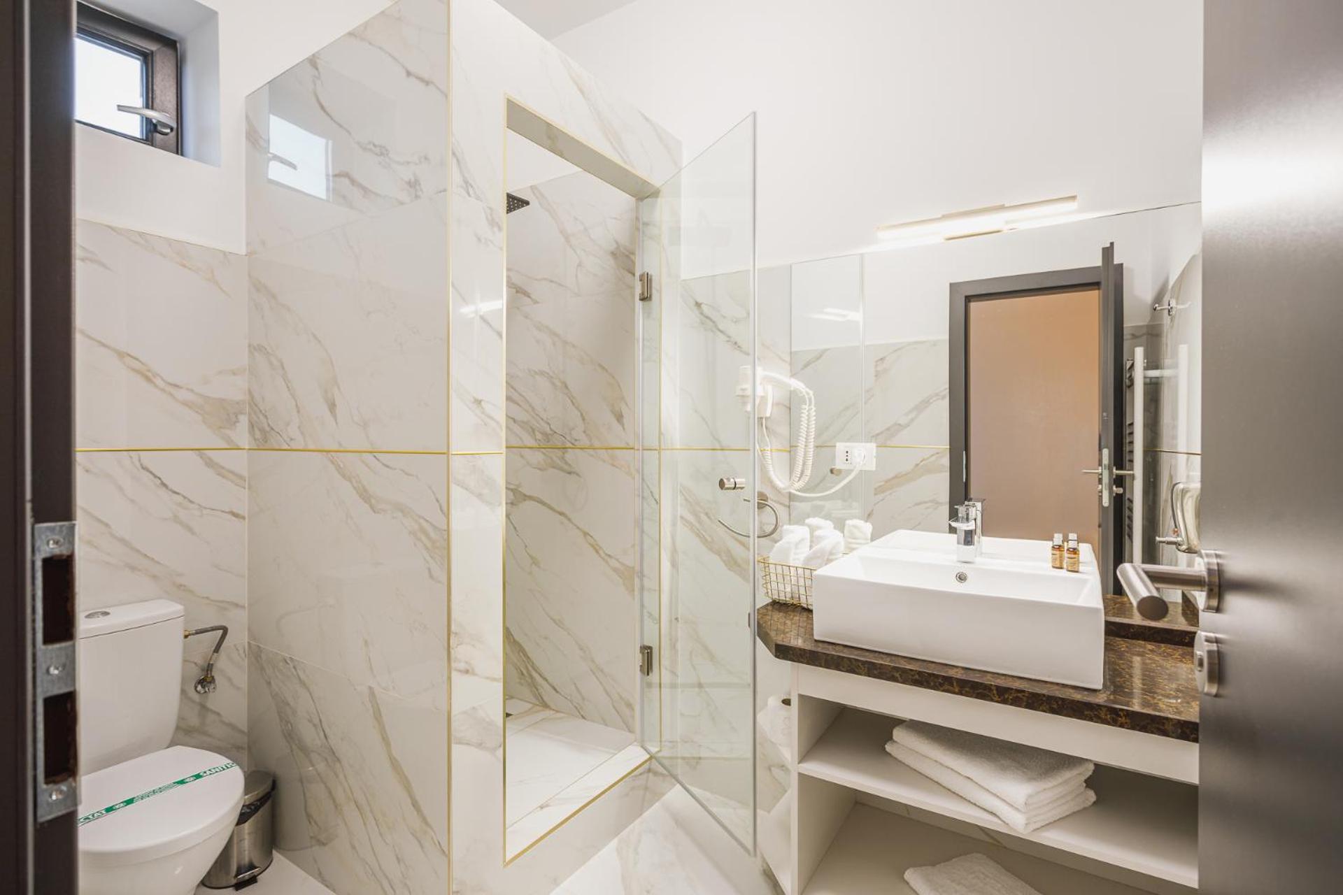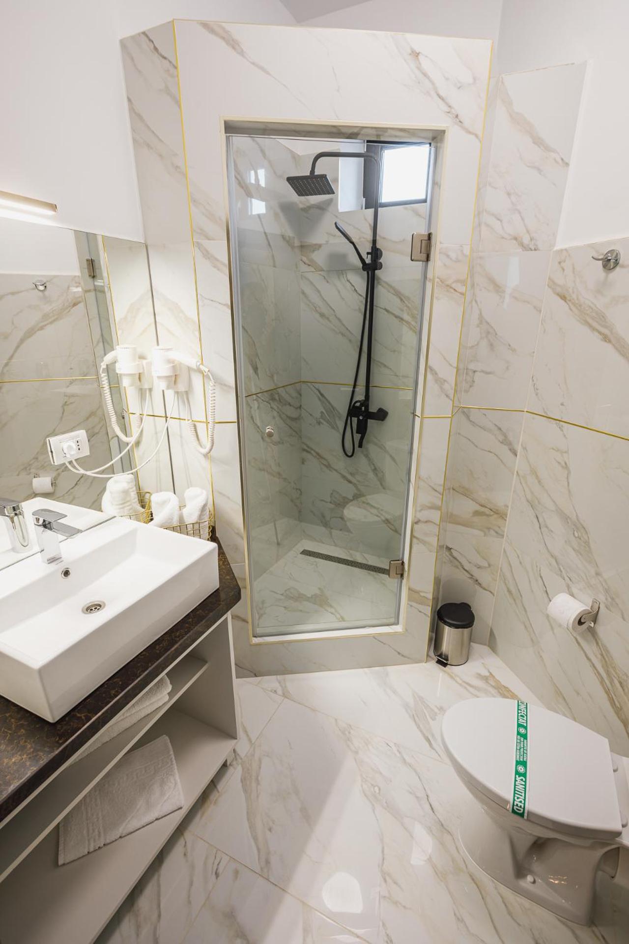 Each room at Motel Andra is equipped with a desk, TV, safety deposit box, and cozy bed linens. Some rooms feature balconies with city views, providing the perfect spot to unwind after a long day of travel.