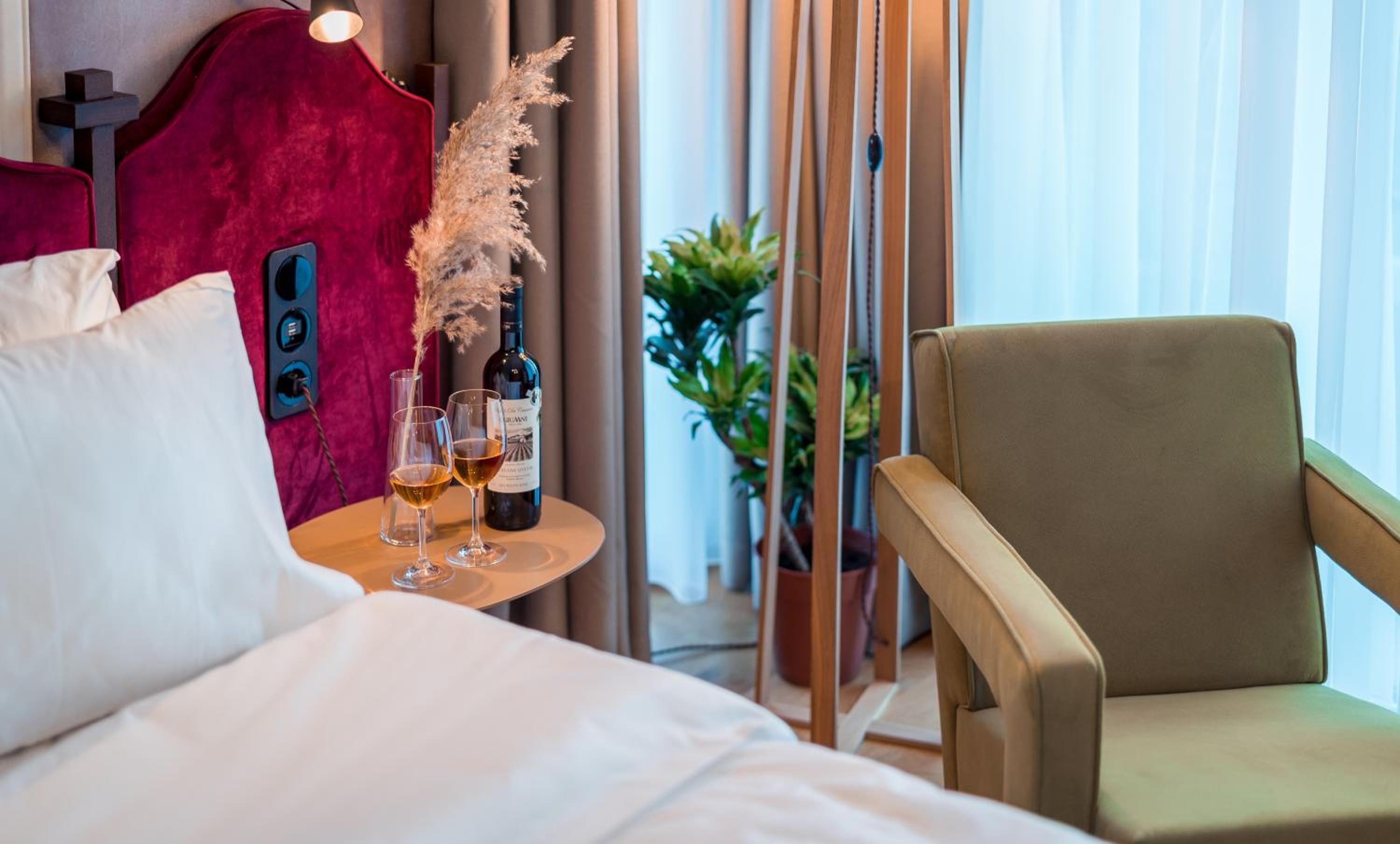 (1) Lovely balcony with beautiful views; (2) very friendly and professional reception and management staff; (3) excellent value for money wines; (4) VERY comfortable bed; (5) a good base to explore local wineries and historic sites