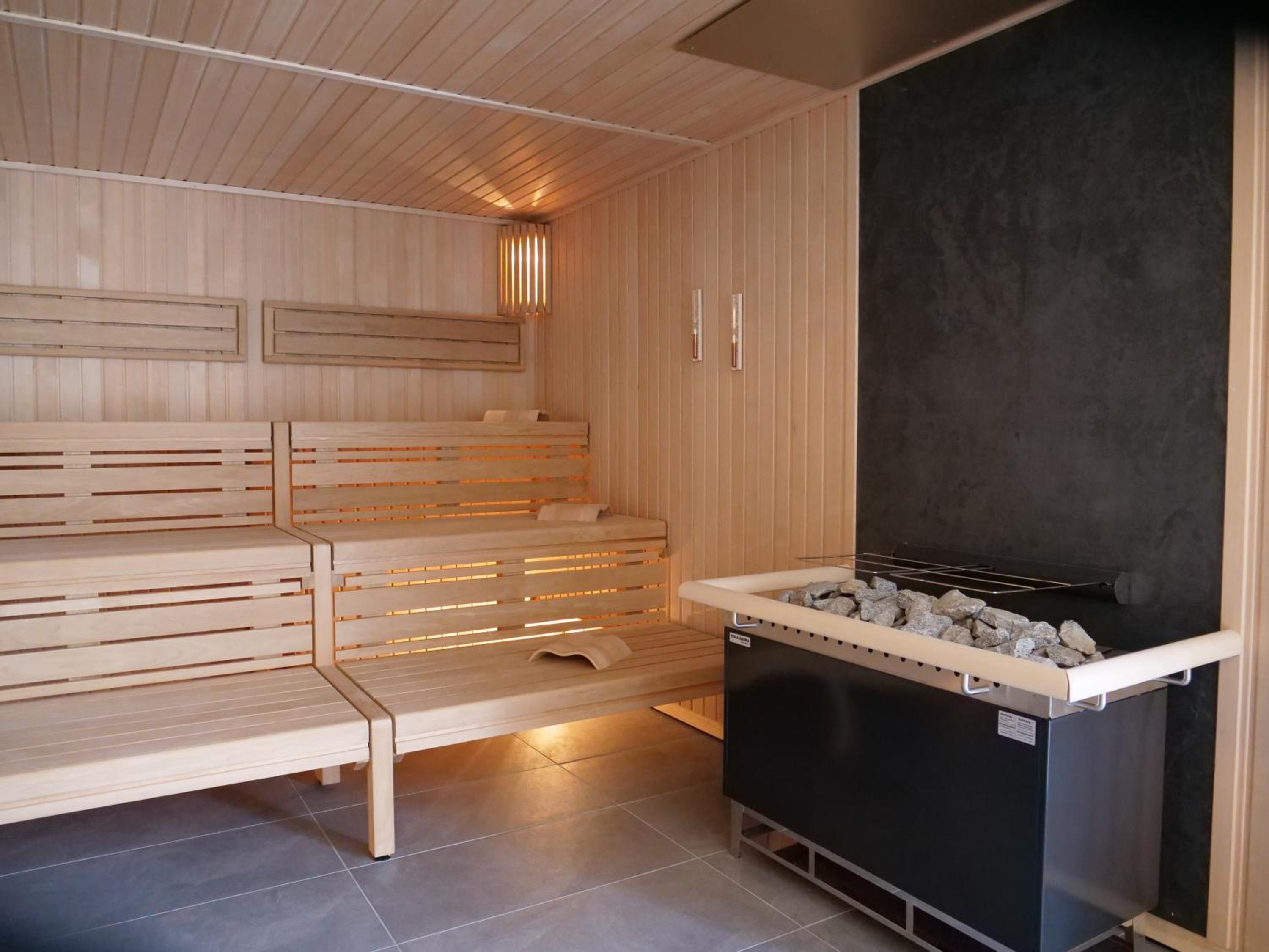 Das Hotel gehört zu einem Fitness-Center mit Sauna-Landschaft, das man mitbenutzen kann.