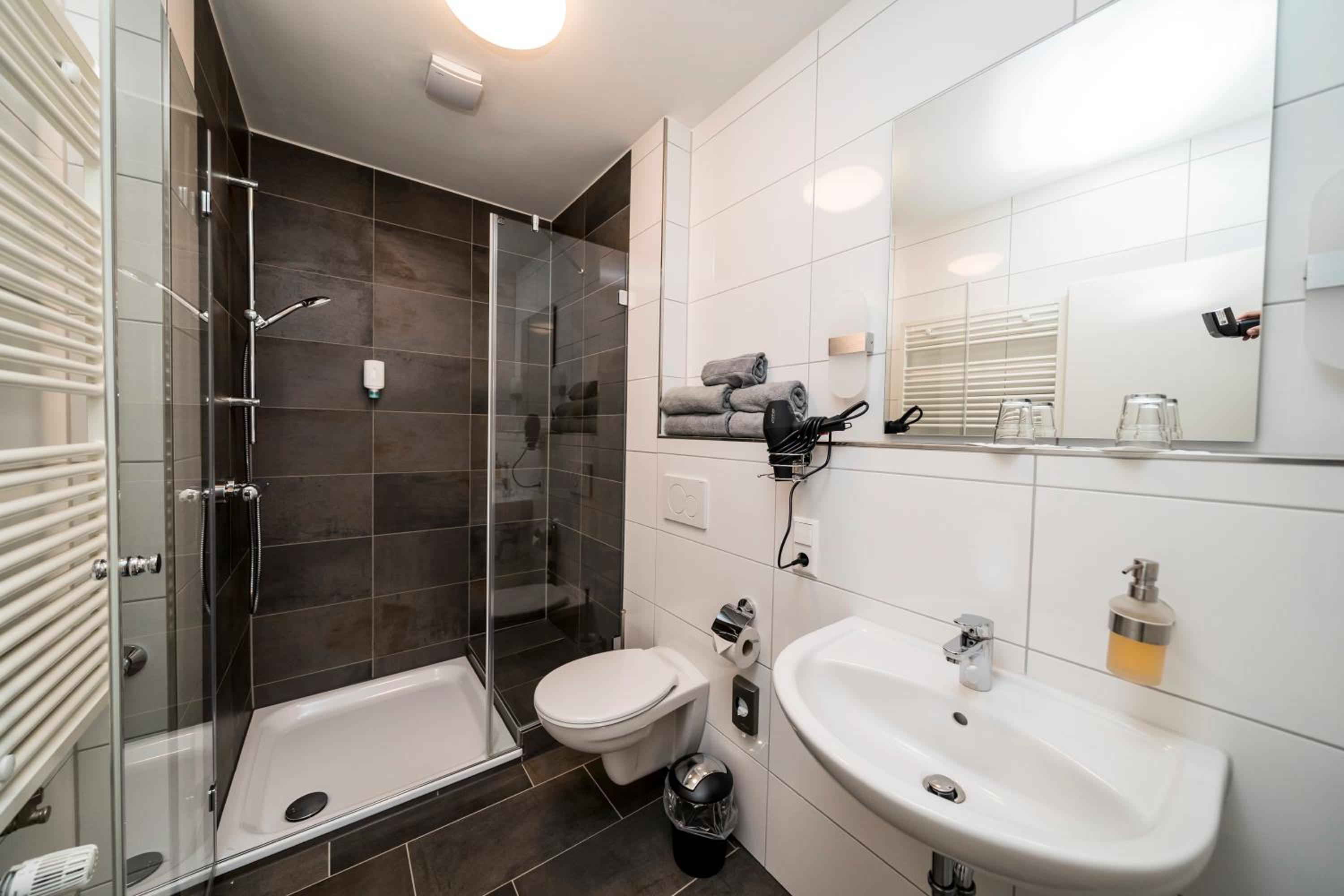 Wahnsinns Unterkunft! Tolles Gästehaus. Alles sauber, Personal super nett. Highlight war die Badewanne mit Badesalz! Die Möglichkeit Fitnessstudio und Sauna im Sport Parc zu nutzen war ebenfalls spitze. Habe nach einer langen Rad Reise drei Sauna Gänge gemacht und gebadet. War selten so entspannt und habe geschlafen wie ein Baby ! Frühstück mit frischem Rührei und Smoothie , Müsli, Brötchen ! Perfekt. Personal mehr als freundlich und hilfsbereit. Ich werde es weiter empfehlen ! Fahrrad Garage mit Steckdosen !
